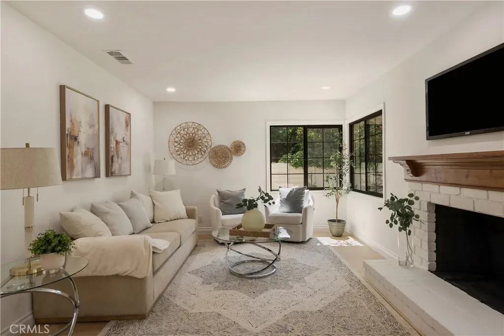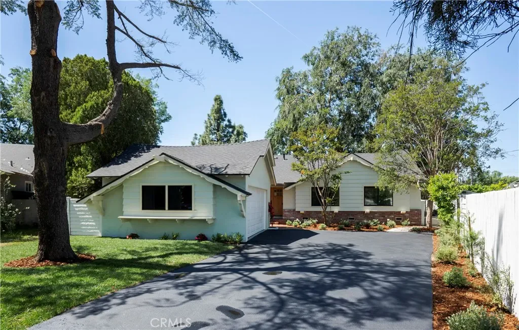 Welcome to a fully reimagined Woodland Hills retreat, where every detail has been thoughtfully curated. From the moment you arrive, the fresh exterior, new roof, and custom landscaping set the tone. Clean, intentional, and effortlessly inviting. The custom black grid windows frame the home with a modern edge, while the long, smooth driveway leads you into a space that immediately feels like your own. Step through the double-swing alder doors and into the open and luminous space. Wide plank LVP flooring, inspired by the French Riviera, flows seamlessly throughout, grounding the home in both style and comfort. The kitchen is the heart; finished in soft seabreeze tones, complete with a farmhouse sink, custom cabinetry, and brand-new stainless steel appliances. It’s the kind of space where mornings feel calm and evenings naturally gather. Every room tells a story of craftsmanship. Designer lighting, refined finishes, and intentional touches throughout. Bathrooms feel like private escapes, featuring a rainfall shower wrapped in custom tile and a second space adorned with warm white oak cabinetry and artisan clay textures. Select bedrooms open through double swing doors, creating a quiet connection between indoor comfort and outdoor living. And then, the backyard. Expansive, private, and framed by mature trees that filter golden California light, it’s a space that invites you to slow down. Whether it’s hosting under the covered patio, enjoying the open lawn, or simply sitting in the stillness, this is where life happens. All of this, perfectly located at the end of a quiet cul-de-sac, where the noise of the world fades and privacy takes its place, you’ll find this home doesn’t just feel like another listing it feels more like a beginning. Just a short walk from The Village; offering dining, shopping, entertainment, and everyday convenience within reach, yet far enough to preserve the peace of home. This isn’t just renovated house. It’s a renewed home, with purpose, with style, and with the quiet promise that you’ve finally found the one.