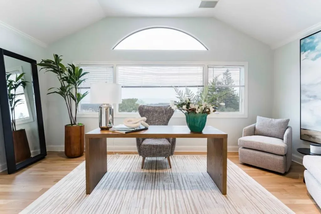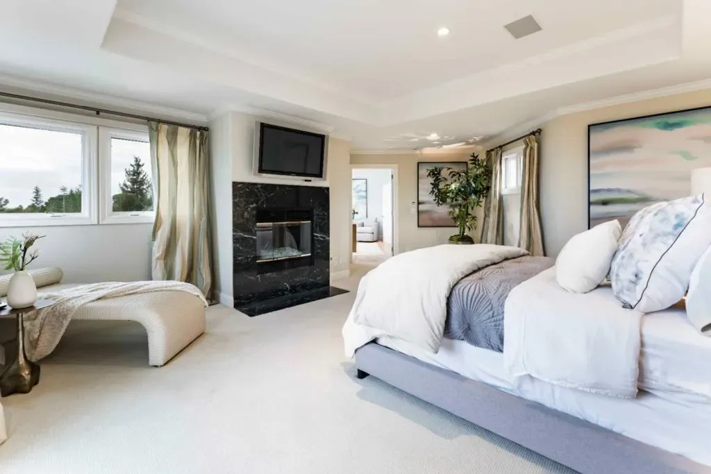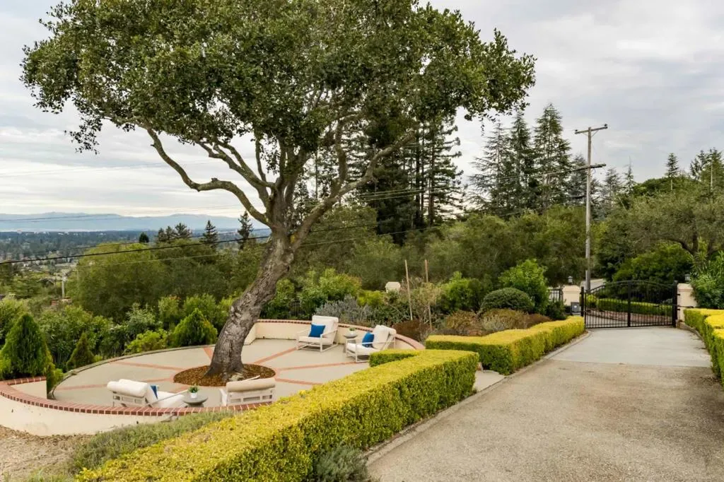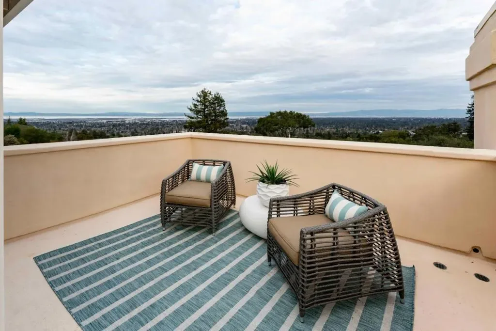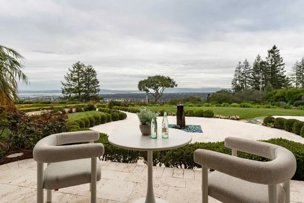 Sweeping, unobstructed San Francisco Bay views define this contemporary estate set on more than an acre in Woodside Hills, with dramatic scenery enjoyed from nearly every room. Walls of glass, soaring ceilings, and refined finishes including marble, granite, and travertine floors create a striking yet warm aesthetic throughout approximately 4,800 square feet across two levels. The expansive kitchen and family room anchor the main level, complemented by gracious formal living and dining spaces that provide multiple areas for entertaining. The upper level offers additional gathering space including a media room, along with four bedroom suites highlighted by a luxurious primary retreat with a spa-inspired bath. Outside, the grounds feature a pool and pergola-covered terrace, all oriented toward the views. Climate control ensures year-round comfort, while a gated setting offers privacy close to parks, nature preserves, and convenient commute options.