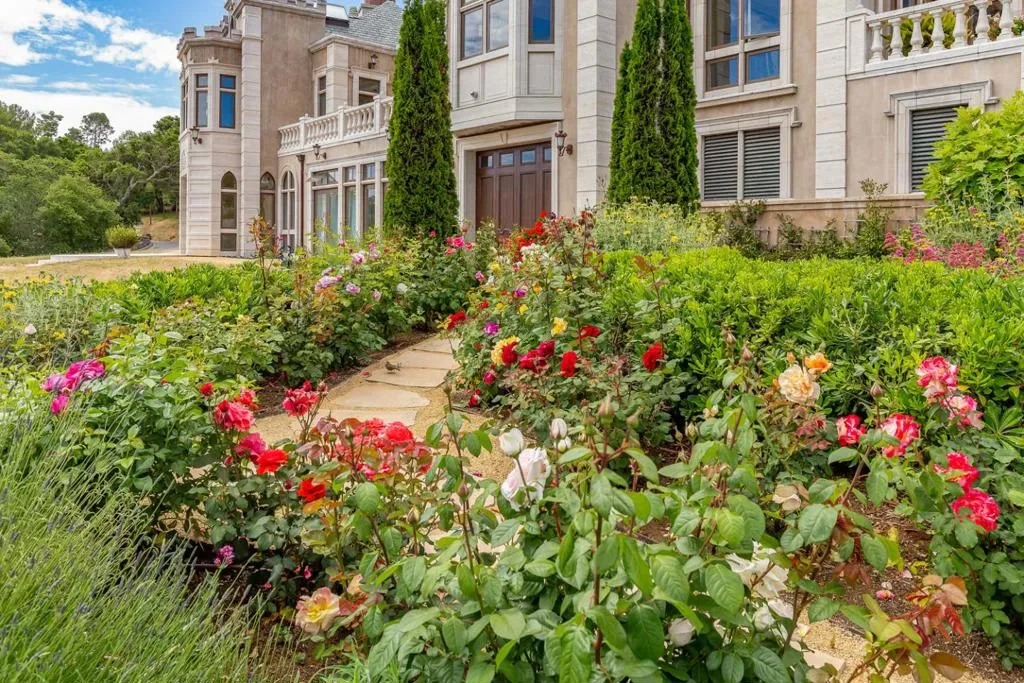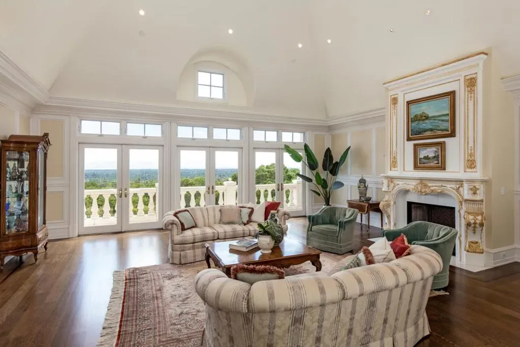 Extraordinary residence on 5.32 acres with opulence and European inspiration at every turn. Impeccably crafted by renowned builder Markay Johnson in 2014 on a private gated lane with gated driveway and sweeping views of San Francisco Bay. Lavish beauty throughout the home with hand-selected marble from Milan, elaborate millwork, Doric columns, intricate carvings, and gilded details. All-marble staircase with hand-forged railings leads to the upper level with formal living room, formal dining room, tremendous kitchen, family room, office, plus grand primary suite with 2 full baths. 3 luxurious bedroom suites plus large office and conference center make up the ground level. Breathtaking views from every room on both levels. Elevator in the main residence. 1-bedroom pool house and studio guest house, each with bath and full kitchen. Sparkling pool and spa plus fireplace terrace for idyllic entertaining in complete privacy.