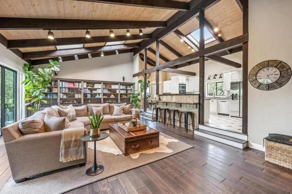 Nestled in the prestigious Woodside Hills, 61 Oak Haven Way is a private estate offering a rare blend of serenity, architectural volume, and thoughtful modern upgrades. Surrounded by majestic oaks on a beautifully landscaped 1.175-acre lot, the home is approached via a long paver driveway that offers privacy and presence. Fully remodeled in 2000 and tastefully updated since, the house includes wide-plank hardwood floors, updated fixtures, and a custom outdoor BBQ and entertaining area, ideal for indoor-outdoor California living. Inside, vaulted ceilings, skylights, and walls of glass fill the home with natural light. Three fireplaces and extensive built-ins add comfort and function. The expansive primary suite offers a fireplace, walk-in closet, private office nook, and a spa-like bath with a sunken jetted tub and cascading waterfall feature. The lower level includes a second en suite bedroom, two additional bedrooms and bathrooms, and ample storage. A three-car garage and generous circular driveway provide plenty of parking. Private and serene, yet only minutes to Sand Hill Road, Stanford, and downtown Woodside, Menlo Park, and Palo Alto this unique home blends nature, space, and easy access in one of Silicon Valley’s most desirable enclaves.