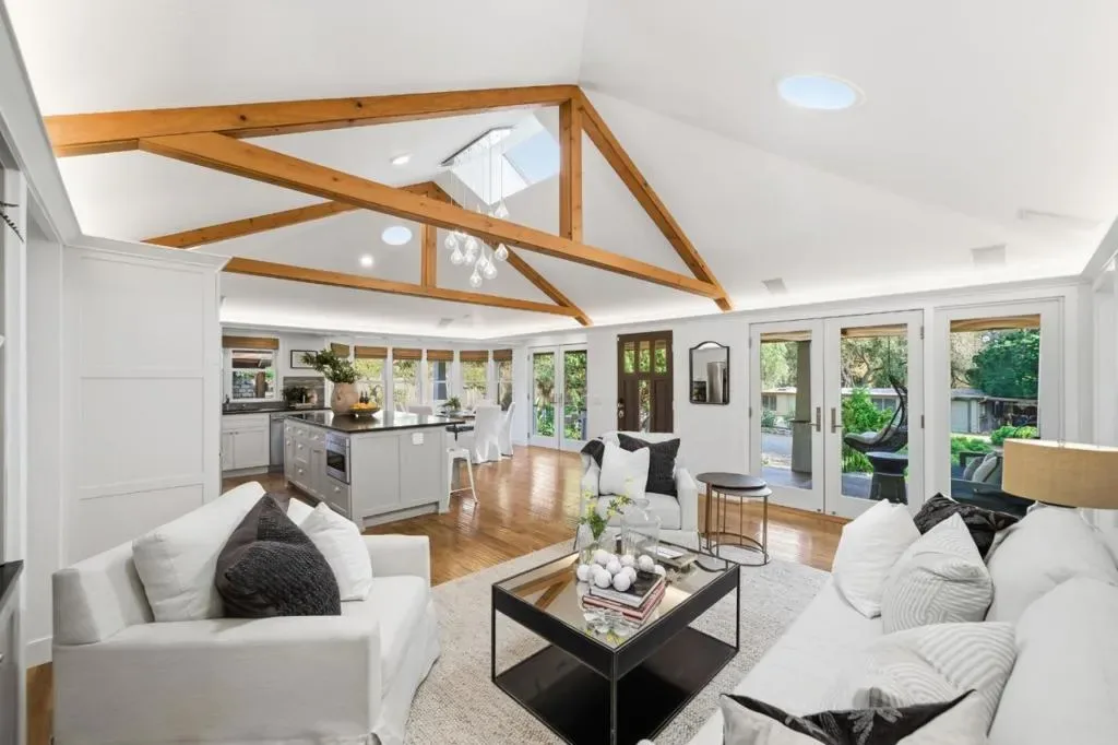 Hidden gem on nearly half an acre behind a private gated entry with professionally landscaped grounds, mature orchard trees, & year-round blooms. The exceptional single-level 3 bedroom, 3 bath 1,842 sqft main residence was completely renovated in 2017 & features an open, light-filled floor plan with skylights & French Oak floors throughout. The entry opens to a spacious living room with custom built-ins & designer lighting, flowing seamlessly into the chef’s kitchen with a large center island, Thermador appliances, & dining area. Multiple glass doors open to a stunning 400+/-sq ft lanai, creating effortless indoor/outdoor living. The primary suite retreat with spa-like bath featuring Italian porcelain tile, mosaic marble floors, chandelier, & custom closet. Outdoor living spaces include multiple seating areas, an outdoor kitchen, & gas fire pit, ideal for entertaining year-round. A detached garage offers approx. 687 sqft of flexible space for guest suite or home office, plus an additional 600+/- sqft basement. Additional features include a private well & potential to add an ADU or expand further. Ideally located moments from Village shops & restaurants, hiking & biking trails, Edgewood Park, Stanford University, major tech campuses, & Interstate 280. Excellent Woodside schools.