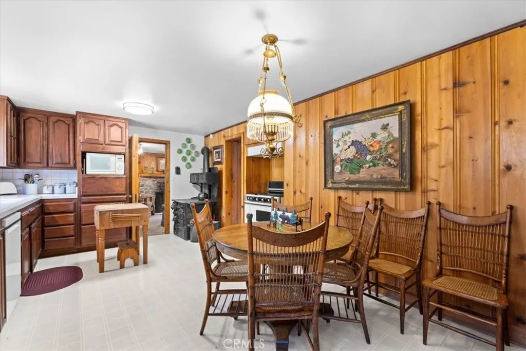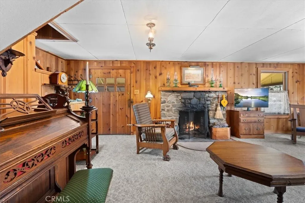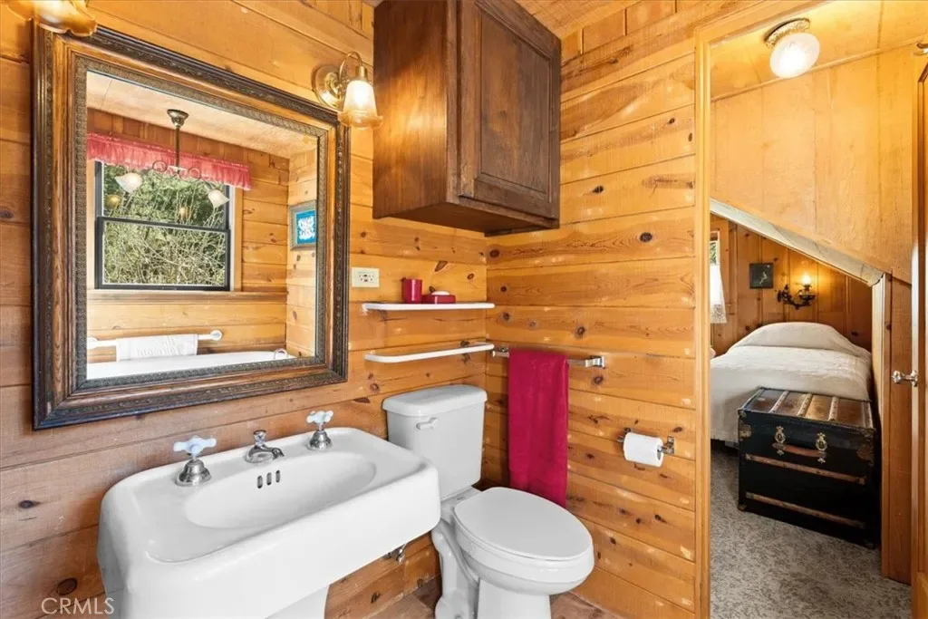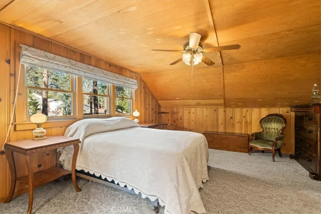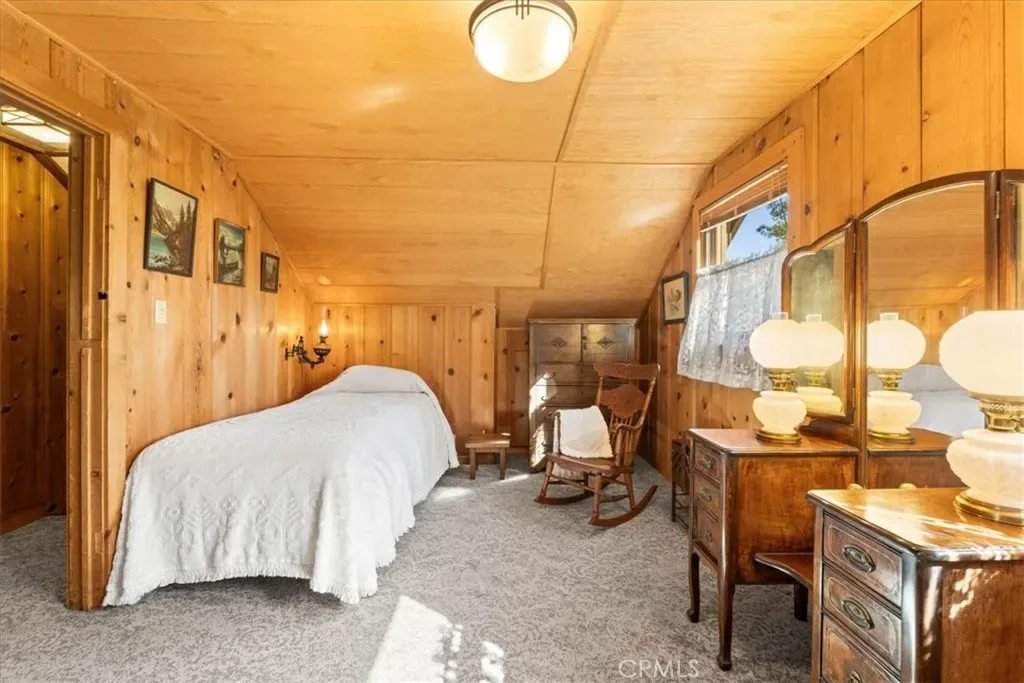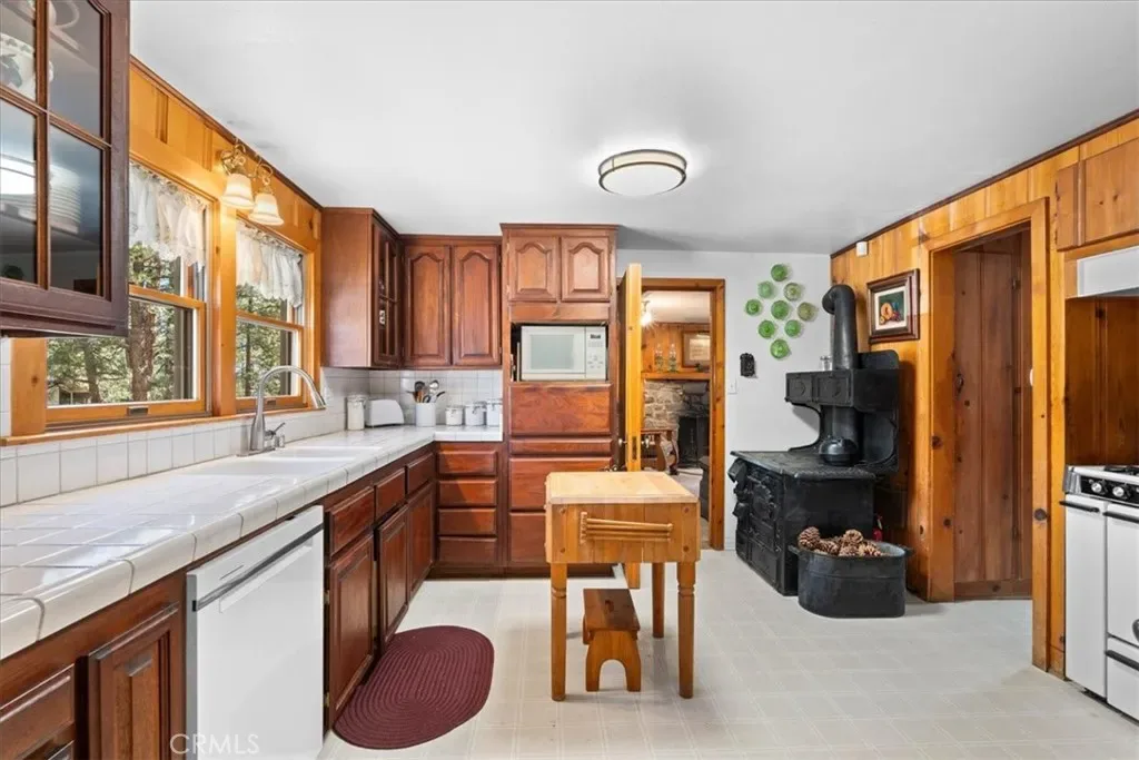 is sure to please. Originally constructed in 1932 by master craftsmen, the house is on an elevated corner lot perfectly situated to offer easy walking options to the lake and quaint village, views of the mountains, and a park like setting that offers peace and tranquility. Inside, the large custom front door provides a grand entry to a large living room with a native rock fireplace. Knotty pine tongue and groove material adorns the walls in authentic mountain style. The large country kitchen is fully equipped with dishwasher, gas range, and ample counter space for holiday meals or just the weekend round of flapjacks. The kitchen also includes a functional antique cast iron cook stove. The indoor laundry is conveniently located around the corner, along with main floor bedroom and remodeled bathroom, bringing form and function together seamlessly. The newly-remodeled bathroom features a glass enclosed shower and hand made Moroccan Zellige tile. All interior doors have been button built and offer excellent craftsmanship. Upstairs, the wide staircase and landing lead to two more bedrooms, each with plenty of room and offering tree top views of the natural Jeffrey and Ponderosa pines. Upstairs is also where you will find the second bathroom, with the highlight being the majestic claw foot soaking tub and new vinyl plank flooring. Other modern updates in the house include dual pane windows, forced air central heat, and alarm system. Outside, the sturdy covered front porch with native log support beams is your zen zone and a perfect opportunity to relax and watch the birds and squirrels, all while enjoying the four seasons. The side patio area offers fenced garden beds and access to the many fruit trees, lilacs and other plants that adorn the garden. The landscaping is watered with a full system of automatic sprinklers. Down in the garage is a soft water system and forced air furnace. This once in a lifetime opportunity will not last long, so come take a look before it is locked up by another family for another 100 years!!