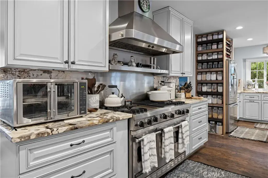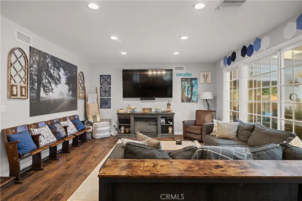 The grounds are nothing short of magical. Mature fruit trees, a beautifully maintained personal garden, and multiple quaint outdoor spaces create peaceful areas to relax, unwind and cozy up to watch a movie. A resort-style pool serves as the centerpiece of the backyard, while the sprawling, usable lot easily accommodates your RV, boats, weddings, parties, and celebrations, offering a private estate-like setting rarely found in Yorba Linda.