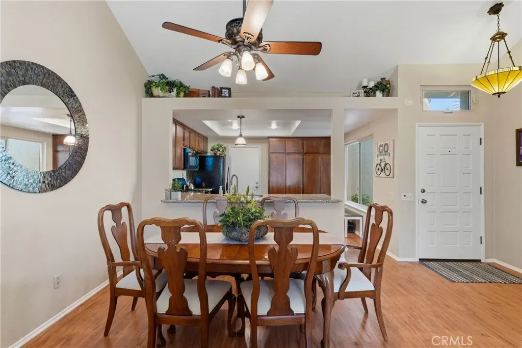 This stunning single-story home features 2 spacious bedrooms and 2 full bathrooms along with an attached two-car garage with direct access to the home. The home offers a massively open floor plan with soaring vaulted ceilings and abundant natural light, creating a bright and airy living space that feels both welcoming and spacious. The bedrooms are generously sized, and the layout flows beautifully for both everyday living and entertaining. The kitchen is updated with stainless steel appliances and granite counters and opens cup to the dining and family room. The r4ear yard space is fantastic and perfect for small gathers or enjoying a weekend BBQ!
