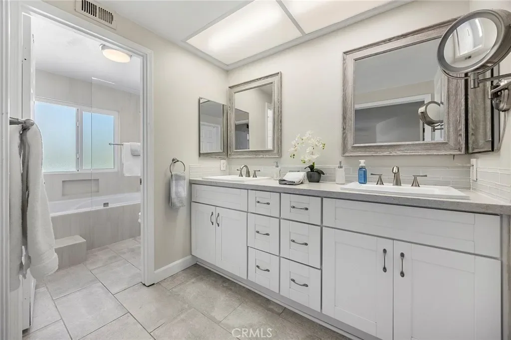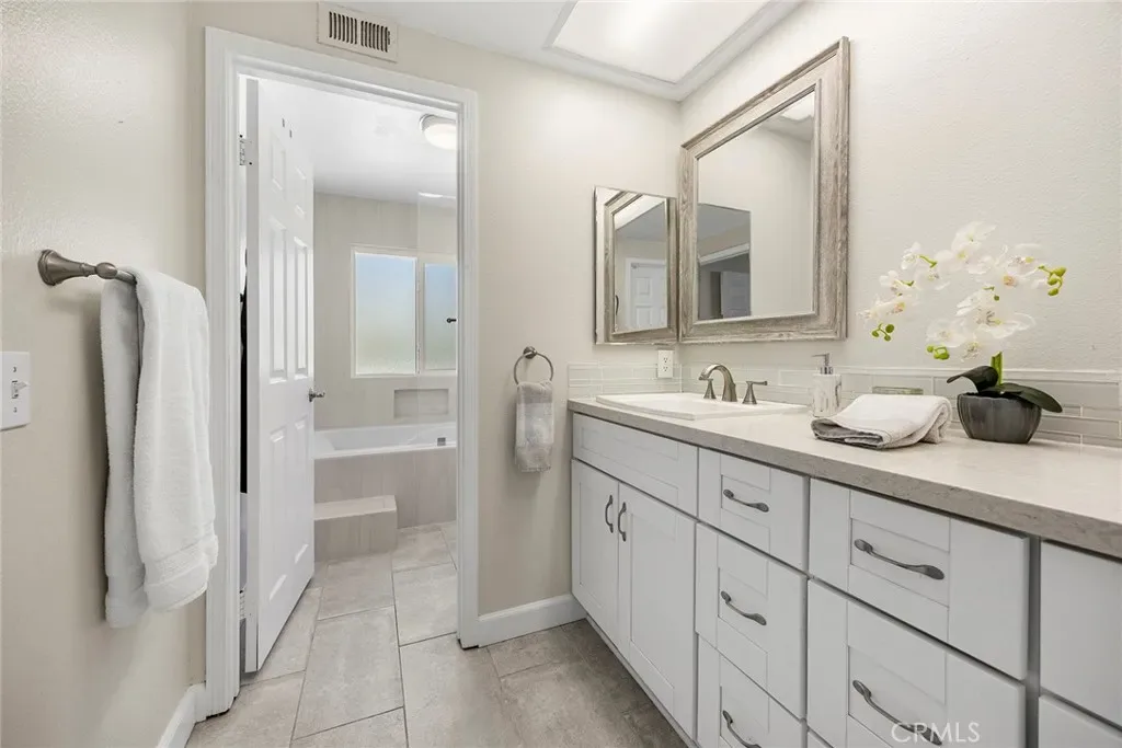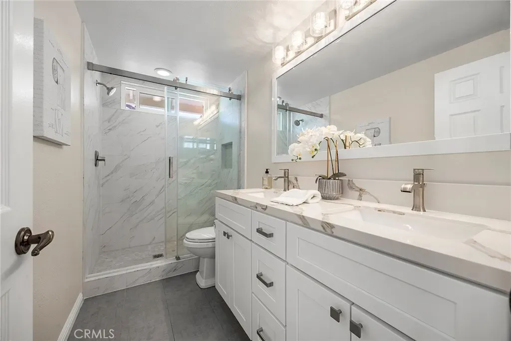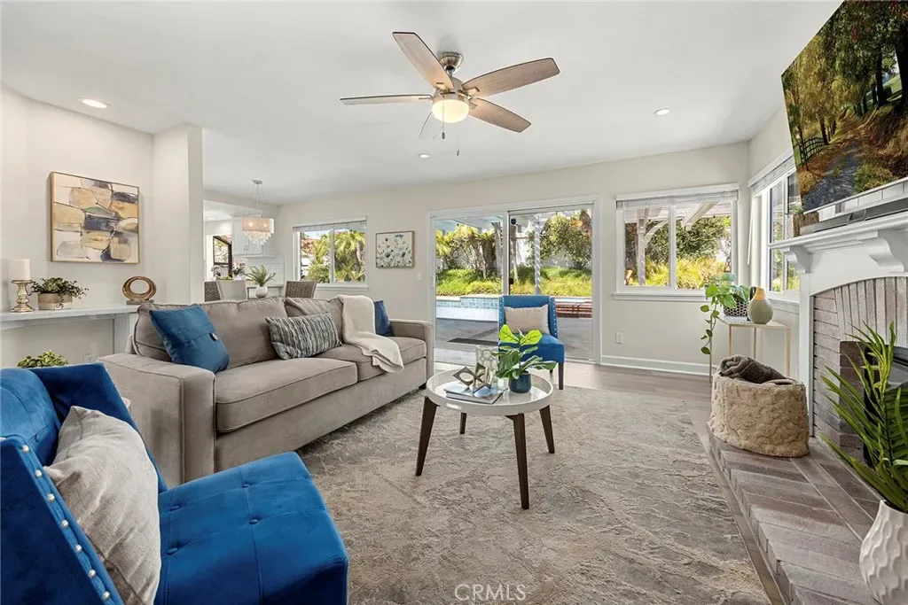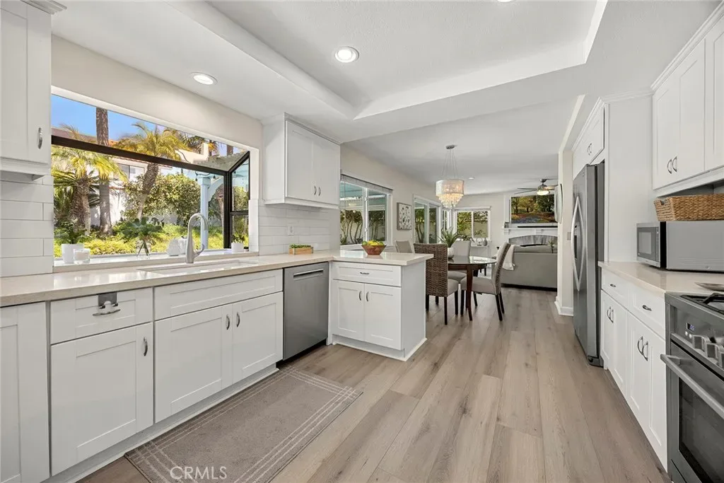 Situated on a desirable corner lot within the prestigious East Lake Village community of Yorba Linda, this beautifully remodeled pool home offers the perfect blend of comfort, style, and functionality. Featuring four bedrooms—including a spacious primary suite—and a convenient downstairs bedroom with full bath, the layout is ideal for both everyday living and hosting guests. Step inside to an inviting, light-filled interior that feels like a brand-new home. The expansive living room showcases a large front window, creating a bright and welcoming atmosphere. The remodeled kitchen is a true centerpiece, overlooking the backyard oasis and outfitted with a 5-burner Cosmo range and Bosch dishwasher—perfect for any culinary enthusiast. Adjacent to the kitchen, a generous breakfast nook and formal dining room provide versatile dining options, while the open-concept family room with a cozy fireplace enhances the home’s warmth and flow. Throughout the home, thoughtful upgrades include luxury vinyl flooring downstairs, a mix of vinyl and plush carpet upstairs, and updated tile in all bathrooms, each tastefully remodeled. An interior laundry room adds everyday convenience. Outdoors, the expansive backyard is designed for both relaxation and entertainment. Enjoy a recently re-plastered pool and spa with new coping, ample patio space, and a large grassy area—all set on an approximately 9,000 square foot lot. A three-car garage completes the property. Residents of East Lake Village enjoy access to resort-style amenities including a clubhouse, gym, sports courts, and a scenic lake perfect for a walk around or a leisurely Duffy boat ride—all with a low HOA that enhances the exceptional lifestyle this community provides.