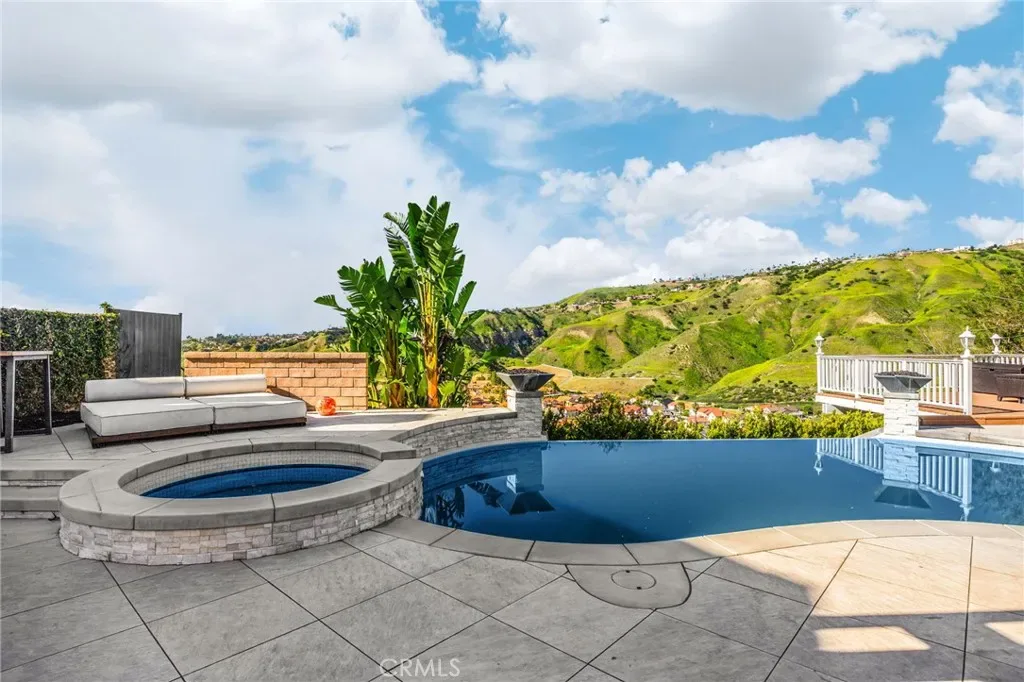 Step outside to a resort-style backyard featuring an infinity-edge pool and spa, covered patio, deck, and potential RV parking—all perfectly positioned to capture the incredible views.