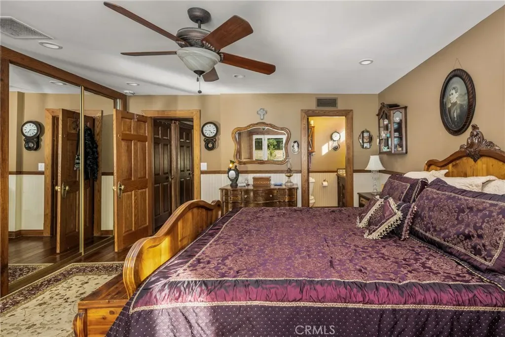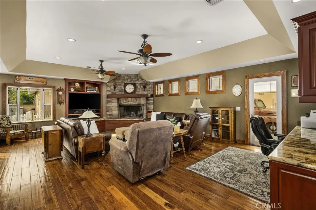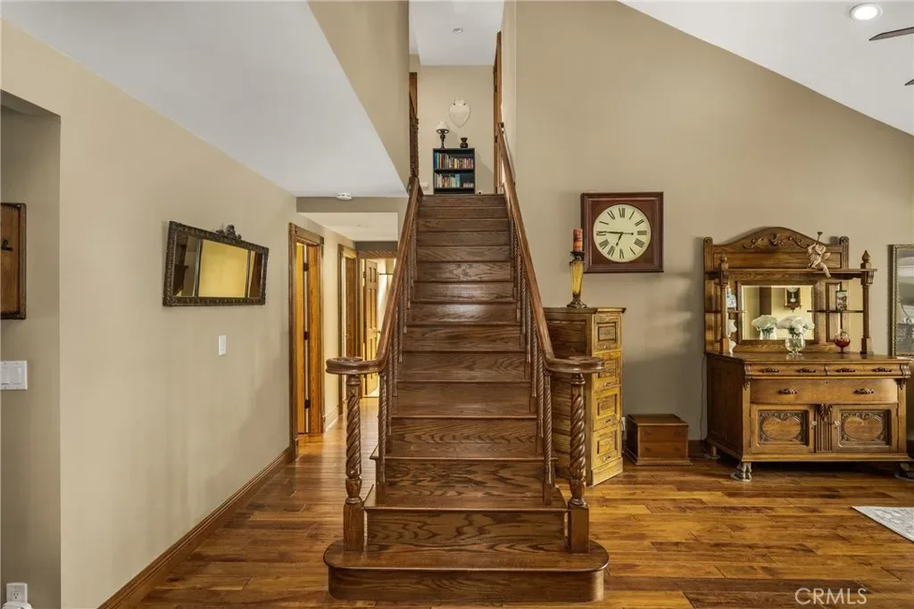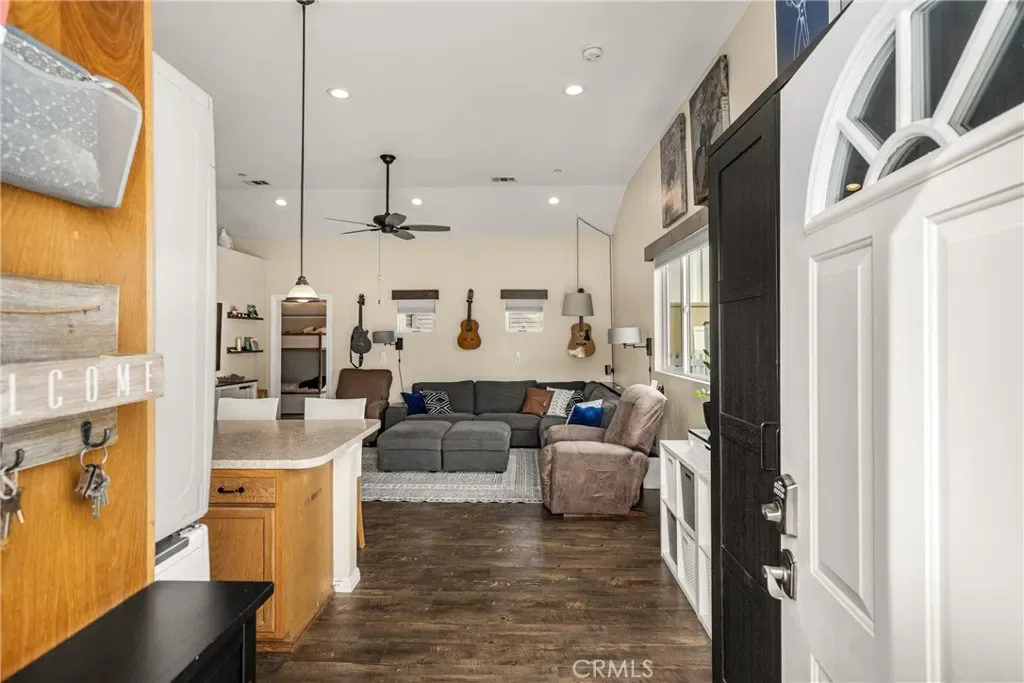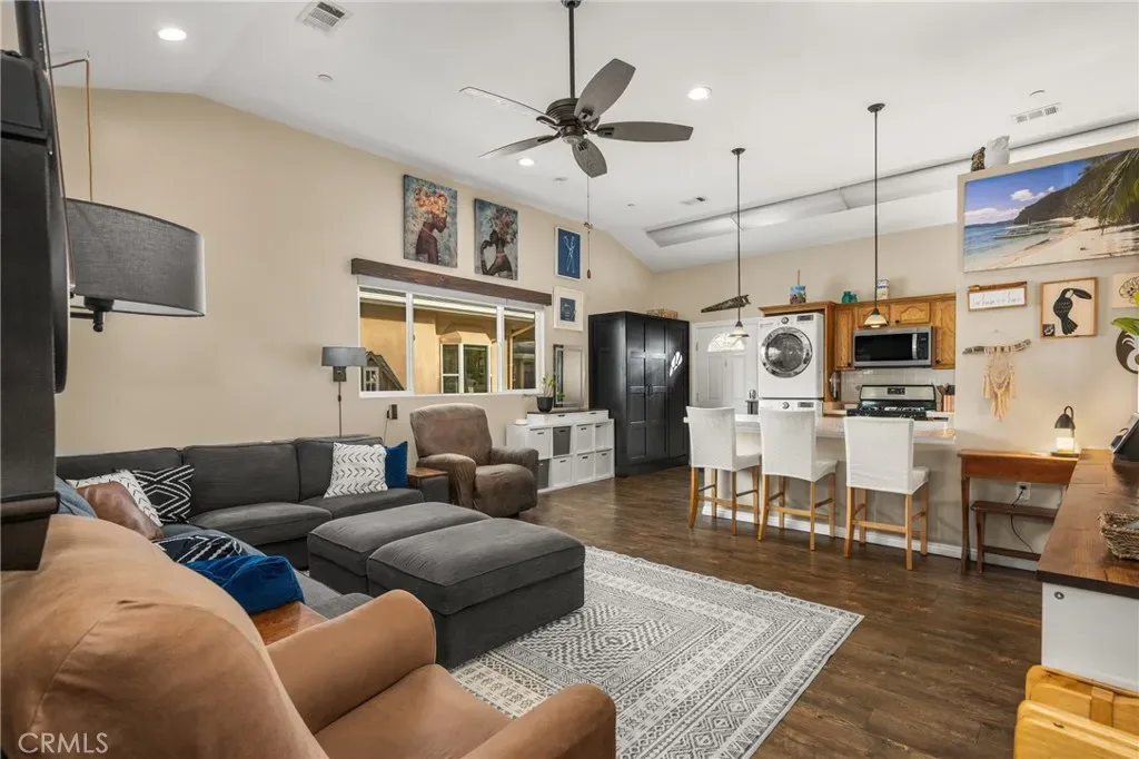 This 5 bed, 3 bath home with a 2 bed 1 bath ADU and RV parking on an oversized lot with solar panels is perfect for multigenerational living and is in one of Yorba Linda’s most desirable neighborhoods! Main lives like a single level with the primary suite, two bedrooms/one bath on the first floor and two beds/one bath upstairs. The detached ADU offers potential for income, and the RV driveway has electricity and dump station. For those warm Summer nights, the extended roof patio spans the front of the home and your lawn will always look mowed with the manicured artificial turf. The RV gate is 17 ft wide and the driveway is over 60ft long and 18ft wide from eves to wall along side the 3 car garage. Inside, views to the backyard, vaulted ceilings, and a warm wood floor greet you. The classic kitchen is beautifully appointed with top-of-the-line appliances including a Sub Zero refrigerator, Dacor 5 burner stove, Miele double ovens and warming drawer, Kitchenaide stainless dishwasher and fridge with panel doors matching the cherry cabinets with beading. A Farmhouse sink and solid maple pullout drawers including a spice rack, and two lazy Susans with many soft close drawers make this kitchen as functional as it is beautiful. The spacious island showcases Splendor granite, a separate sink and seating for three. The ample cabinetry also offers a coffee cabinet and Splendor backsplash diamond cut outs. An abundance of lighting tops it off. The large dining area can accommodate a 12 ft table and has fireplace. Everyone will come hang out in the huge room with the stone covered fireplace and hearth. The windows and the sliding glass door to the outdoor kitchen bring lots of light. Built in cabinets and desk span one whole wall. Step out to the patio where you’ll find an outdoor kitchen that was recently constructed with concrete counters, a Blaze BBQ, 2 burner stove, sink and garbage disposal. Green grass, avocado trees, and the ADU are surrounded by concrete and slump stone walls. The 920 foot ADU hosts 2 bedrooms and 1 bath with kitchen overlooking a very spacious gathering area, and outside is a gated artificial turf yard. Step back into the primary room doors in the main house to find a spacious room with a wall of closets, walk in shower in the primary bath and down the hall 2 bedrooms with wood floors and the hall bath with tub. Up stairs you’ll find 2 more bedrooms and a hall bath with a shower. Shopping, theatre, Yorba Linda lakebed and great schools.