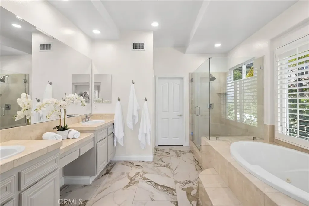 ABSOLUTELY STUNNING panoramic view estate in the Regency at East Lake Village! A completely re-imagined S&S estate residence commanding endless panoramic city light views. Meticulously updated and remodeled with contemporary designer finishes delivering elevated luxury at every turn. The statement lighting and show-stopping chandeliers deliver an opulent sanctuary that balances timeless elegance with a glamorous contemporary atmosphere. From the moment you walk in the door, the home will capture your emotions and steal your heart. Step through the double-door entry into a soaring two-story foyer with dramatic staircase, hardwood laid in herringbone, custom millwork, light filled windows and elevated ceilings setting the tone for a refined living environment. The kitchen is not just upgraded, it’s a showpiece. A floor-to-ceiling picture window frames a serene rock waterfall, while white raised-panel cabinetry, striking galaxy black stone counters, premium stainless appliances, an oversized island, and a massive walk-in pantry create a space built not to just impress but to perform. All of it opens seamlessly into an expansive family room with custom built-ins, paneled accent wall, a statement fireplace and uninterrupted vistas. The main level hosts the perfect sized guest suite with en-suit bathroom, separate powder room with designer appointments, and a fully equipped laundry room. Ascend up the storybook staircase to 4 additional bedrooms including a spectacular primary retreat featuring a private balcony with sweeping views, cozy fireplace flanked by custom cabinetry, dual vanities, jetted soaking tub, an oversized walk-in glass shower and an expansive walk-in curated wardrobe. A large secondary bedroom designed for a princess and middle bedroom are serviced by a large updated full bath. The 5th bedroom with en-suite bathroom is separated from the others and completes the upstairs. The outdoor living area is an entertainer’s paradise with covered alfresco lounge and dining, a built-in barbecue and island, manicured lawn, and the unforgettable views creating a private resort ambiance. Enjoy the ultimate East Lake lifestyle with access to resort-style amenities including multiple pools, a scenic lake with fishing and boating, walking trails, clubhouse, fitness center, and year-round community events and activities. This turnkey estate is the ultimate blend of refined elegance and modern luxury. Finally, you can stop searching and start living!