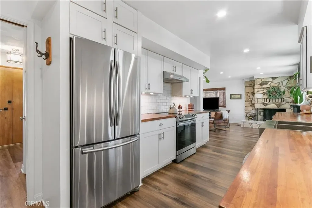 From the moment you walk inside, you’re welcomed by a light-filled interior and a warm, inviting feel that instantly feels like home. The upgraded kitchen is both stunning and functional, featuring crisp white cabinetry, rich butcher block countertops, modern finishes, and a seamless flow into the dining and living spaces—perfect for gathering, entertaining, and everyday moments.