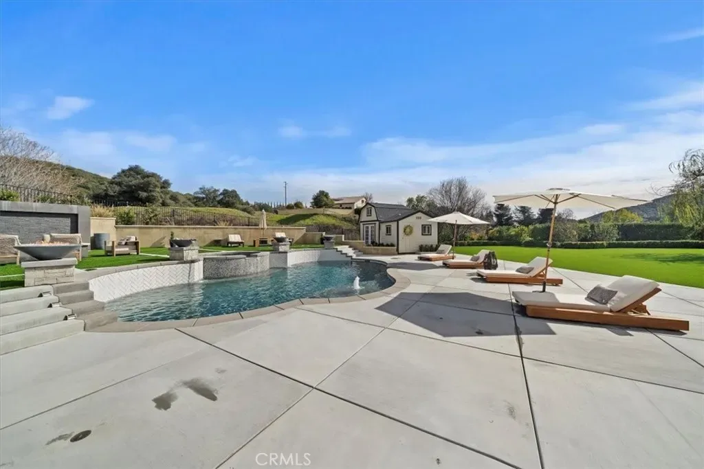 Welcome to your resort-like dream home, nestled in the highly sought-after Hidden Meadows Estates. Experience luxury outdoor living and refined indoor and outdoor comfort on an expansive fully landscaped lot with breathtaking mountain views. Imagine your own private resort-style backyard with newly refreshed pool and spa, lush greenery, ambient landscape lighting, expansive turf grass area, perfect for entertaining, play, or relaxation. Sit poolside on the large pool deck, unwind around the fire pit, or take in the calming sounds of the custom water wall feature. For sports enthusiast, the property boasts a private basketball court and a putting green complete with white sand bunkers. Take in the incredible mountain views from the stunning balcony/patio, thoughtfully designed for year-round comfort with electric bug blinds, overhead fans, and gas heating, perfect for both quiet evenings and hosting unforgettable gatherings. Additional outdoor features include RV parking with hookups behind a secure electric gate, as well as a private front courtyard enclosed by a custom steel gate for added charm and privacy. Inside, this 5-bedroom, 4-bathroom home has been completely remodeled and upgraded throughout, showcasing modern finishes and exceptional attention to detail. The flexible downstairs bedroom, currently used as an office, is ideal for guests or remote work. The home also features an indoor laundry room and a fully finished four-car garage with ample storage. Smart home automation enhances convenience and efficiency, while the paid solar system provides long-term energy savings. This exceptional property offers the perfect blend of luxury, functionality, and outdoor living, all in one of the area’s most desirable communities. Don’t miss this rare opportunity to make this Hidden Meadows dream home yours.