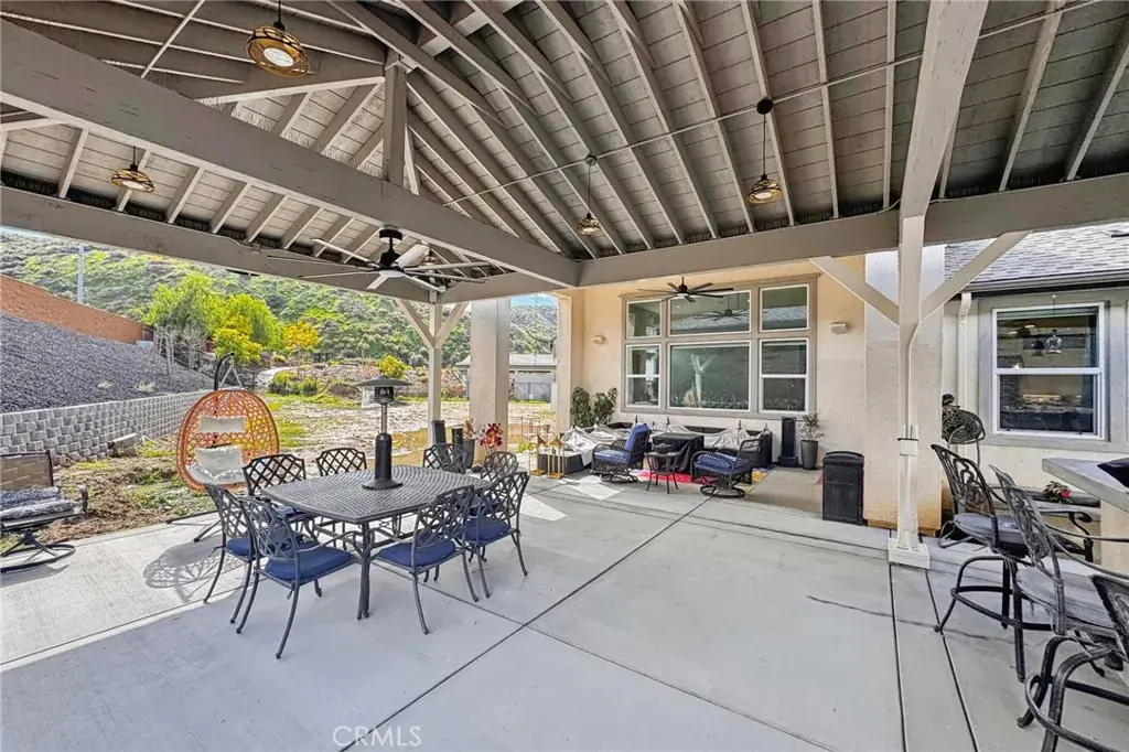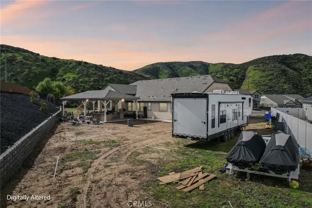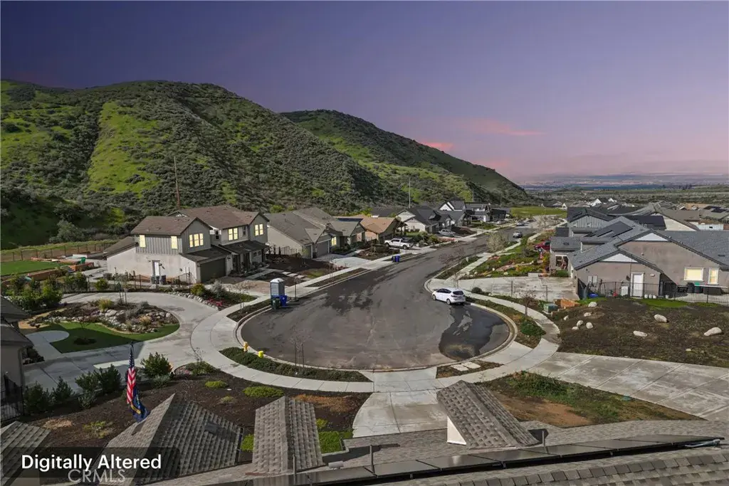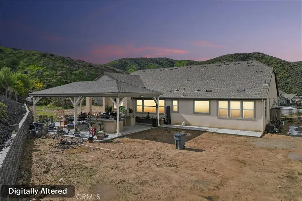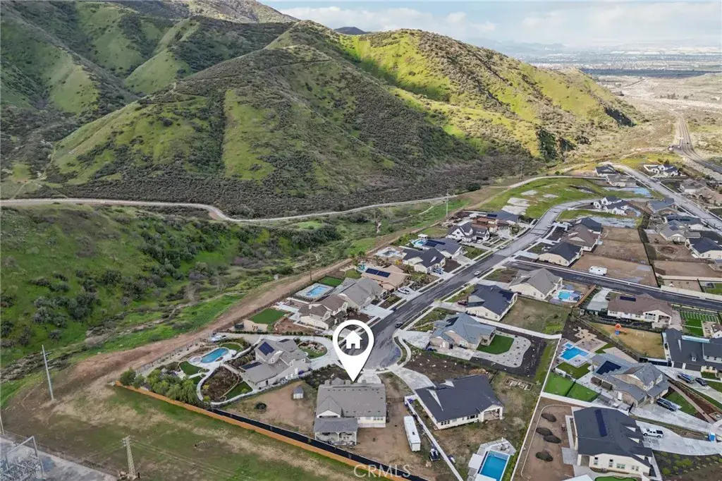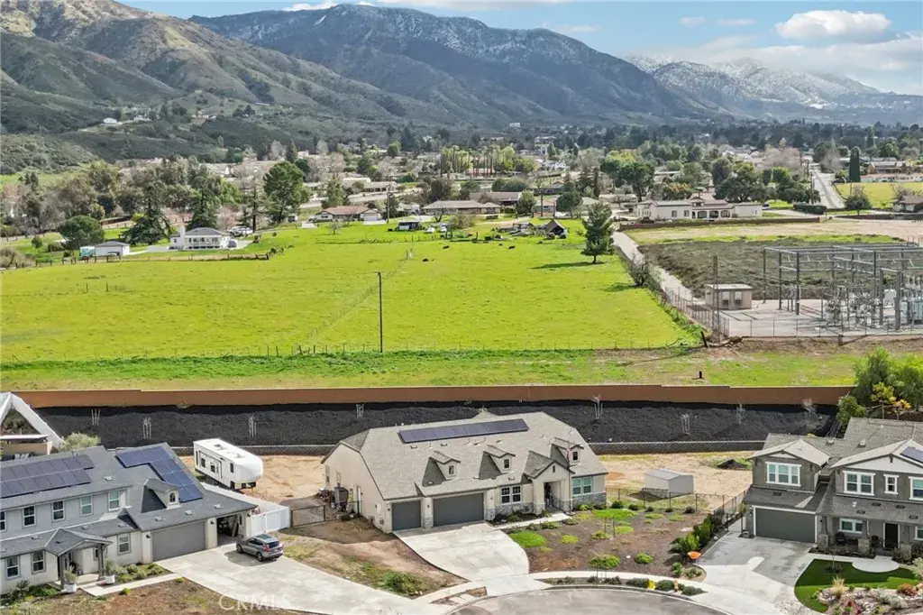 Welcome to 34676 Conadria Avenue, Yucaipa, CA 92399, located in the exclusive gated community of Mountain Gate by CrestWood Communities. Recently built in 2022 and truly better than new, this stunning single-story home offers 4 bedrooms, 3.5 bathrooms, and 2,814 square feet of beautifully upgraded living space, situated on a premium 32,119 square foot, end of a cul-de-sac lot with exceptional privacy and gorgeous mountain views! The interior is spacious with an open concept layout designed for modern living and effortless entertaining. Luxury vinyl plank flooring flows throughout the main living areas, complementing the light and bright interior. The huge great room includes a stacked stone accent wall and a built-in entertainment center. The gourmet kitchen features quartz countertops, a large island with breakfast bar seating and pendant lighting, stainless steel LG Signature appliances, white cabinetry, and a large walk-in pantry. The oversized primary suite is a private retreat, featuring generous space, a spa-inspired bathroom, and ample closet storage. There are 3 secondary bedrooms that are each thoughtfully positioned, offering comfort, privacy, and flexibility for guests, or multigenerational living! Enjoy the entertainer’s dream back with custom 40′ x 20′ covered patio creating an incredible outdoor living space, complete with a built-in outdoor bar – perfect for year round gatherings. The expansive lot offers endless possibilities, enhanced by a retaining wall, gated RV parking, the gutters in the back of the house and the patio cover are tied into the drains that lead to the street, and the gutters in the front of the house drain to ground cover. There is also an attached 3-car garage, and a leased solar panel system for energy efficiency! This home is in turn-key condition with modern finishes throughout. Enjoy secure gated living while being just minutes from shopping, dining, and freeway access. This is a rare opportunity to own a nearly new, highly upgraded home on an oversized private lot in one of Yucaipa’s most desirable communities!
