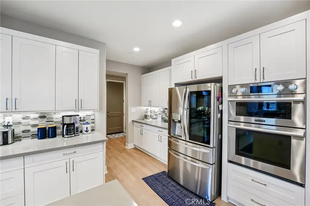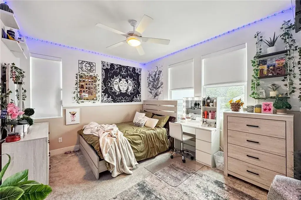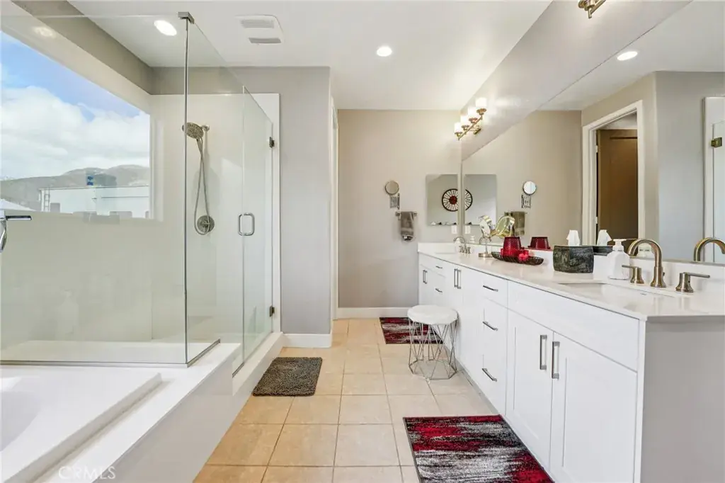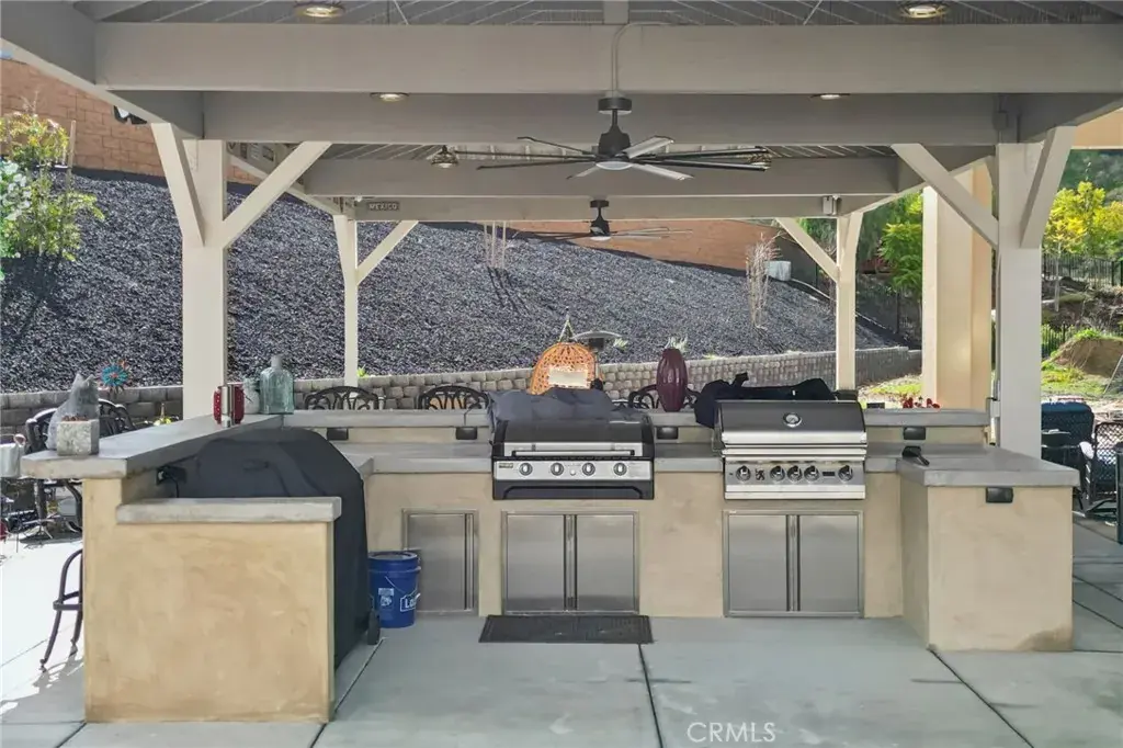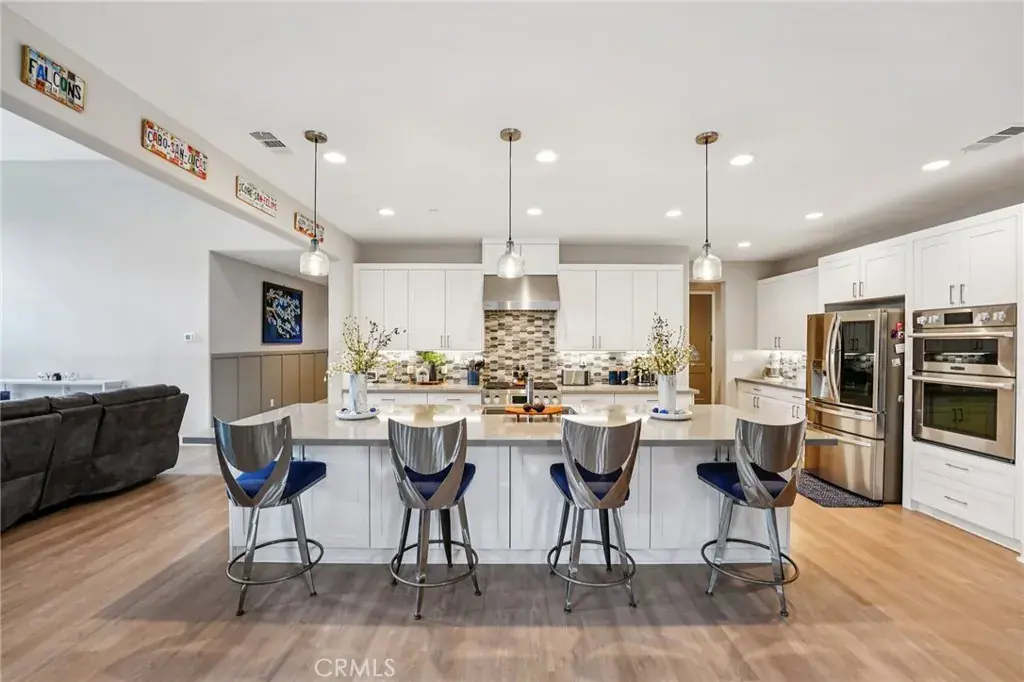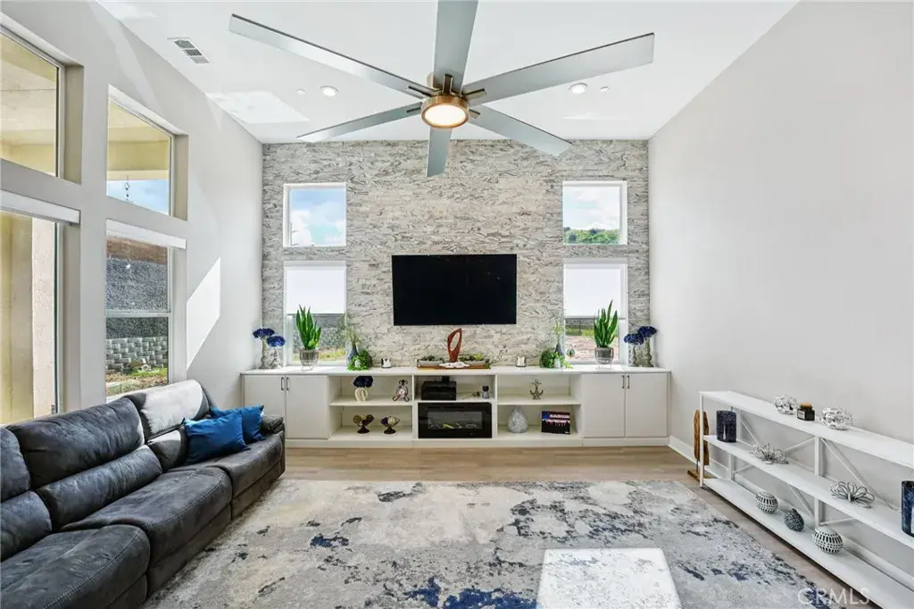 Welcome to 34676 Conadria Avenue, Yucaipa, CA 92399, located in the exclusive gated community of Mountain Gate by CrestWood Communities. Recently built in 2022 and truly better than new, this stunning single-story home offers 4 bedrooms, 3.5 bathrooms, and 2,814 square feet of beautifully upgraded living space, situated on a premium 32,119 square foot, end of a cul-de-sac lot with exceptional privacy and gorgeous mountain views! The interior is spacious with an open concept layout designed for modern living and effortless entertaining. Luxury vinyl plank flooring flows throughout the main living areas, complementing the light and bright interior. The huge great room includes a stacked stone accent wall and a built-in entertainment center. The gourmet kitchen features quartz countertops, a large island with breakfast bar seating and pendant lighting, stainless steel LG Signature appliances, white cabinetry, and a large walk-in pantry. The oversized primary suite is a private retreat, featuring generous space, a spa-inspired bathroom, and ample closet storage. There are 3 secondary bedrooms that are each thoughtfully positioned, offering comfort, privacy, and flexibility for guests, or multigenerational living! Enjoy the entertainer’s dream back with custom 40′ x 20′ covered patio creating an incredible outdoor living space, complete with a built-in outdoor bar – perfect for year round gatherings. The expansive lot offers endless possibilities, enhanced by a retaining wall, gated RV parking, the gutters in the back of the house and the patio cover are tied into the drains that lead to the street, and the gutters in the front of the house drain to ground cover. There is also an attached 3-car garage, and a leased solar panel system for energy efficiency! This home is in turn-key condition with modern finishes throughout. Enjoy secure gated living while being just minutes from shopping, dining, and freeway access. This is a rare opportunity to own a nearly new, highly upgraded home on an oversized private lot in one of Yucaipa’s most desirable communities!