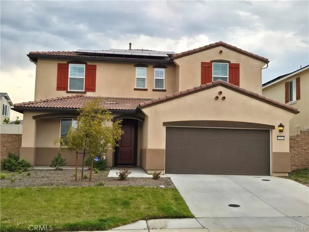 Paid solar! Beautiful Yucaipa home built in 2023. This home is located a short walk to Yucaipa Regional Park. Some of the wonderful features this home offers are: mail level bedroom, 3/4 bath, beautiful open concept main level living, large granite kitchen island, upgraded appliances, wood shutters throughout the home. Upstairs features a large loft area (open to downstairs) tow nice size secondary bedrooms, full bath, master suite is spacious, electric preplace with multicolor functions, master bath features separate shower and tub, huge walk-in closet. Also, the home has a 3-car tandem garage, tankless water heater and a whole house water softener system. A beautiful home in a great family neighborhood.