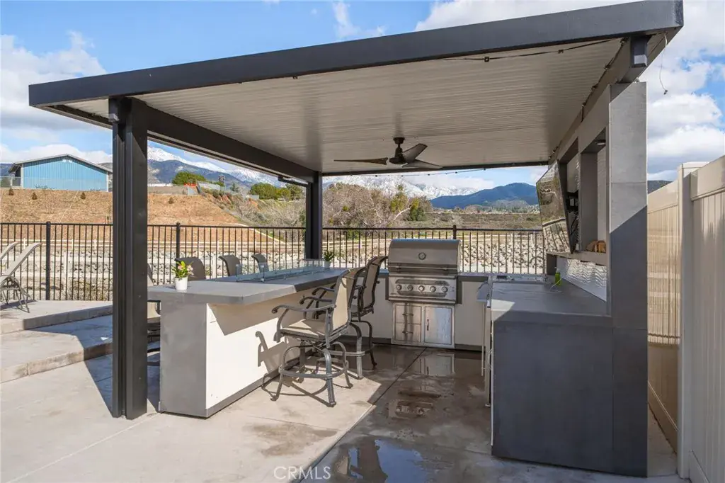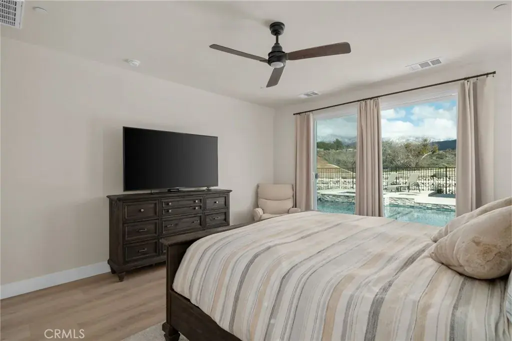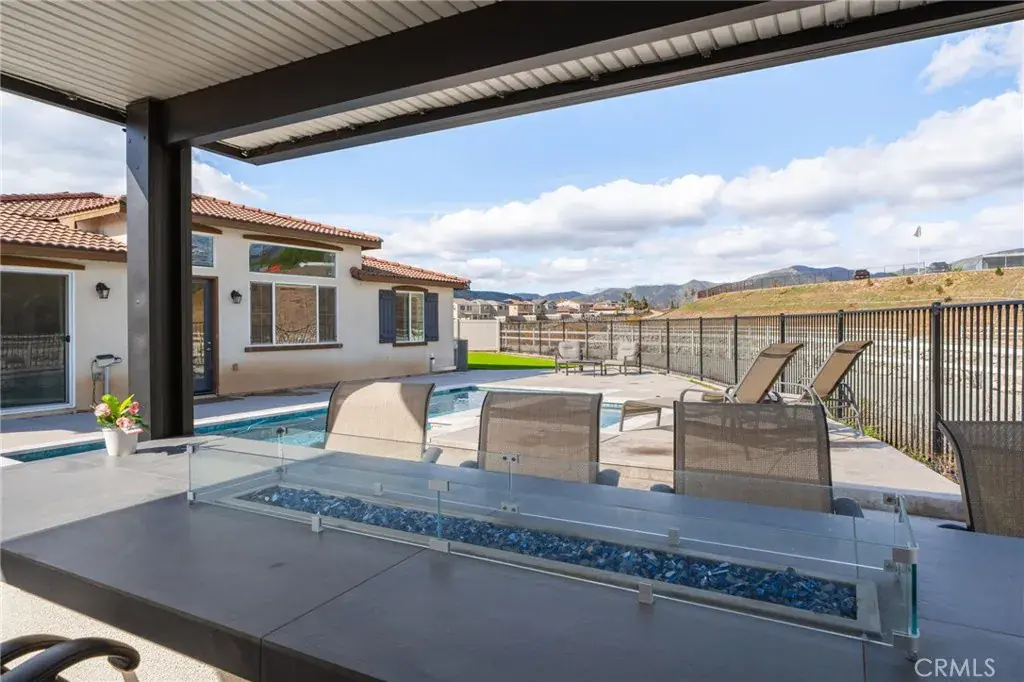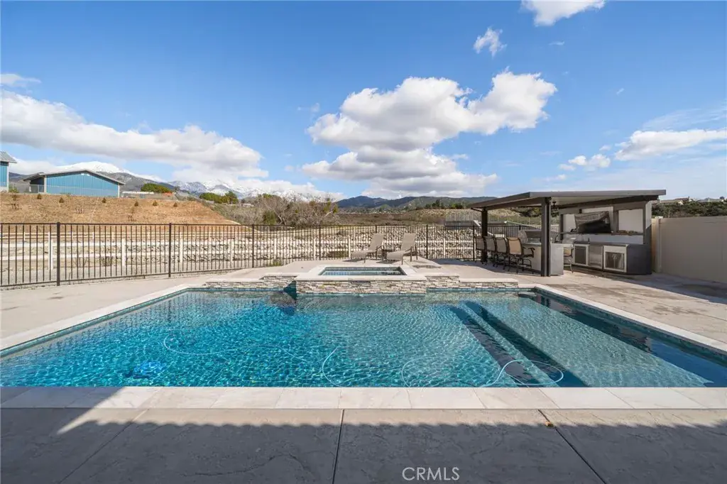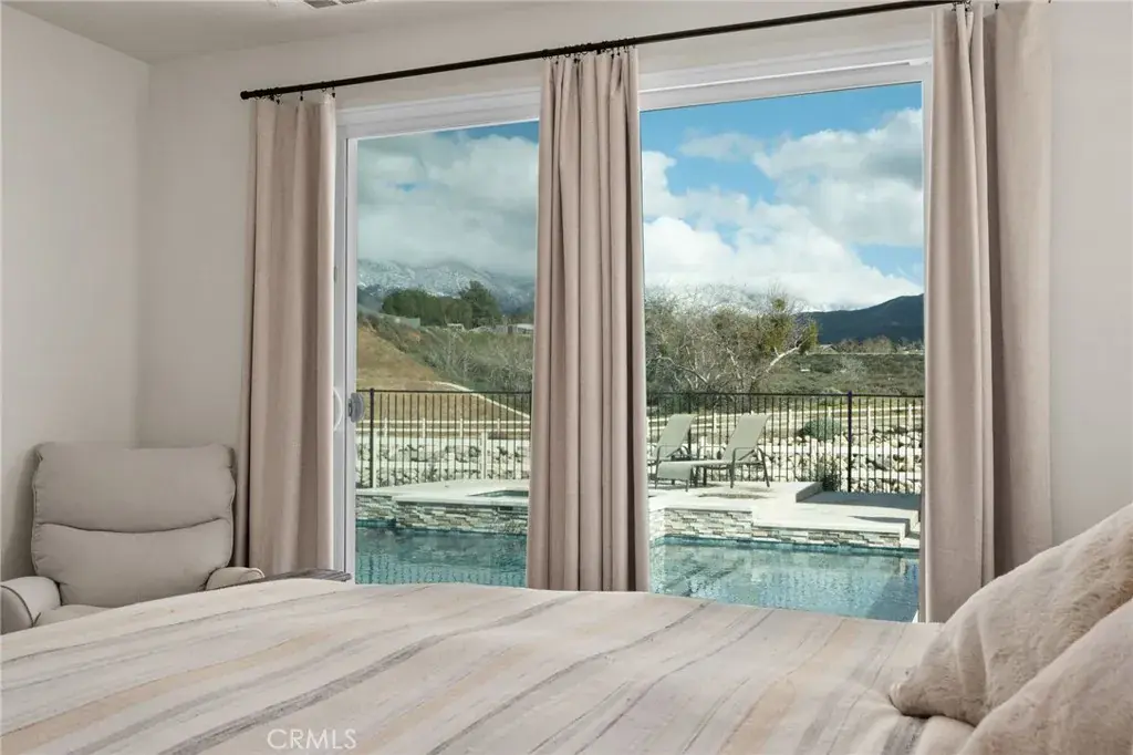 Imagine the luxurious model home-NOW UPGRADE it! Upgrade the floors, the kitchen, the window treatments AND the entire backyard! A STUNNING fully landscpaed backyard with POOL, SPA, and BUILT-IN BBQ (Can we say PARTY PAD!?!) And it’s all tucked away on a peaceful cul-de-sac in the scenic hills of Yucaipa with BREATHTAKING VIEWS! And this LAYOUT!? Perfect for MULTI-GEN with a bedroom and bath off the entry providing privacy and convenience. This almost-new sone level residence blends modern luxury with breathtaking natural beauty. From the moment you step inside, you are welcomed by a grand open floorplan and panoramic mountain views that create a stunning first impression throughout the home! At the heart of the home lies a chefs kitchen featuring a massive center island, brand-new cabinetry, elegant countertops, and state-of-the-art appliances. Just beyond, the dining area provides the perfect setting for hosting dinners and gatherings, seamlessly connecting to the main living spaces for effortless entertaining. The living room is warm and dramatic, showcasing a cozy fireplace, soaring ceilings, and expansive windows that frame the picturesque backyard and mountain vistas. Natural light fills the space, bringing the beauty of the outdoors inside. The executive suite is a private retreat with direct backyard access and sweeping views. The ensuite bathroom features a deep soaking tub, walk-in shower, dual vanities, and a spacious walk-in closet. A split floor plan offers three additional bedrooms and two bathrooms providing flexibility for family, guests, a home office, gym, or playroom. A well-designed laundry room adds convenience, while owned solar panels enhance energy efficiency. Step outside into a private oasis where resort-style living awaits on an oversized 10,000 sq ft lot. A sparkling pool and spa sit at the center of the backyard, surrounded by a pristine patio ideal for relaxing. The built-in barbecue and gazebo create the perfect setting for gatherings, grilling, or dining under the stars. A HUGE side yard offers a turf lawn offers a low-maintenance space for pets and play, all set against a breathtaking mountain backdrop. Enjoy this peaceful neighborhood with no HOA, conveniently close to Yucaipa Regional Park and nearby schools including Park View Middle School and Ridgeview Elementary. This turnkey luxury home offers the perfect blend of elegance and comfort. Dont miss the opportunity to make it yours just in time for summer by the pool.