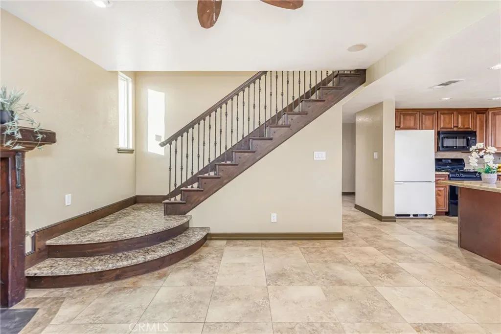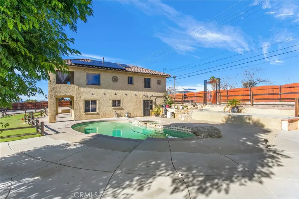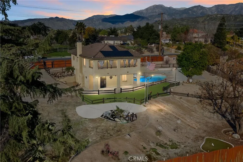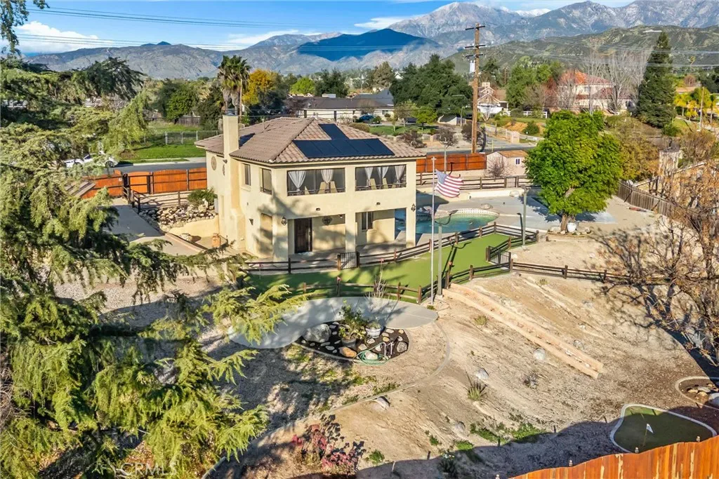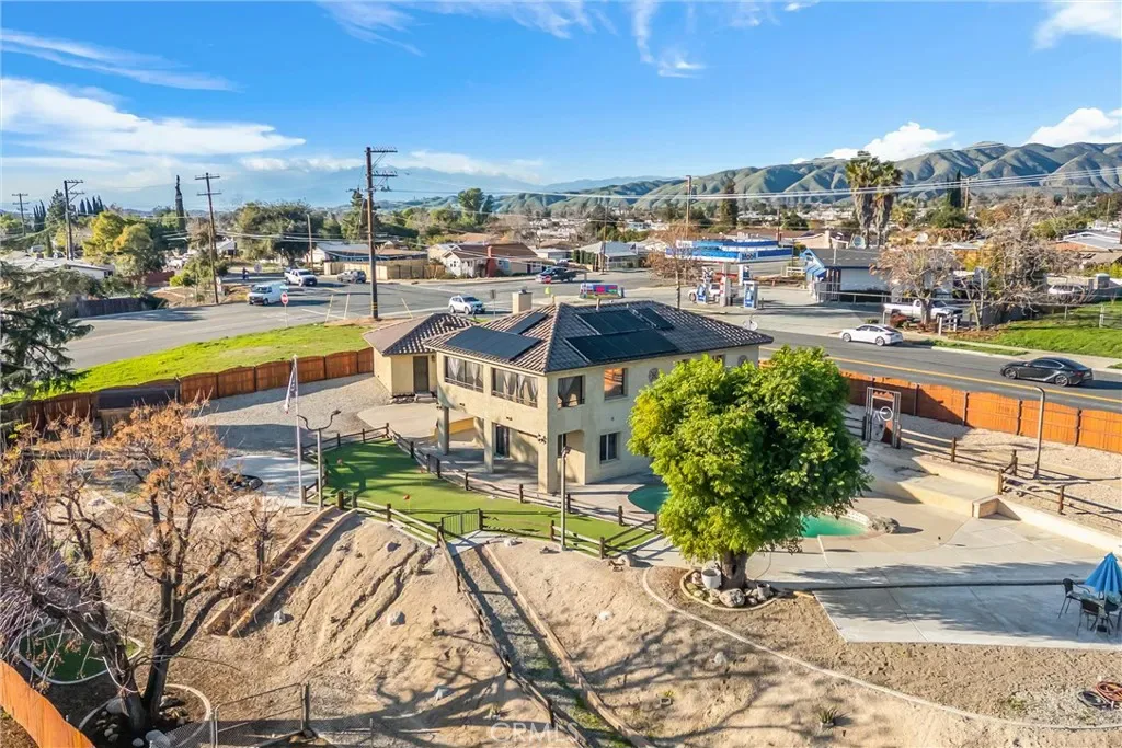 Resort-style living meets everyday comfort in this unique Yucaipa property set on an expansive 17,820 sq ft lot. This 3-bedroom, 3-bath home offers 1,944 sq ft of thoughtfully designed living space with water shares and solar ( loan) for energy efficiency and long-term savings. The interior was completely rebuilt in 2010 and includes sound-resistant walls and insulation, while the pool, HVAC system, Electrical and windows were also redone for added efficiency. Behind a fully fenced yard with remote gate access, the property features an entertainer’s backyard complete with a sparkling pool and spa, 5-hole putting green, dog run, and abundant space for RV parking, boat, work trucks, or recreational toys. Inside, the open-concept layout showcases custom finishes throughout, including a living room fireplace, custom kitchen cabinetry, granite countertops and center island, pantry, travertine flooring, and a dining area. The main level includes a 3/4 bathroom with direct pool and backyard access, a convenient laundry room, and a flexible utility or home office space. Upstairs, two bedrooms share a well-appointed bathroom with a granite vanity, while the primary suite offers a private fireplace, walk-in closet, and spa-inspired bathroom with his and her sinks, soaking tub, and separate shower, along with a screened-in private balcony to enjoy the views while staying cool in the summer months. A detached two-car garage and two additional storage sheds provide ample space for tools, hobbies, and storage. Custom finishes, thoughtful upgrades, and resort-style outdoor living make this home a rare opportunity. Where every day feels like a getaway and your short game just keeps getting better!