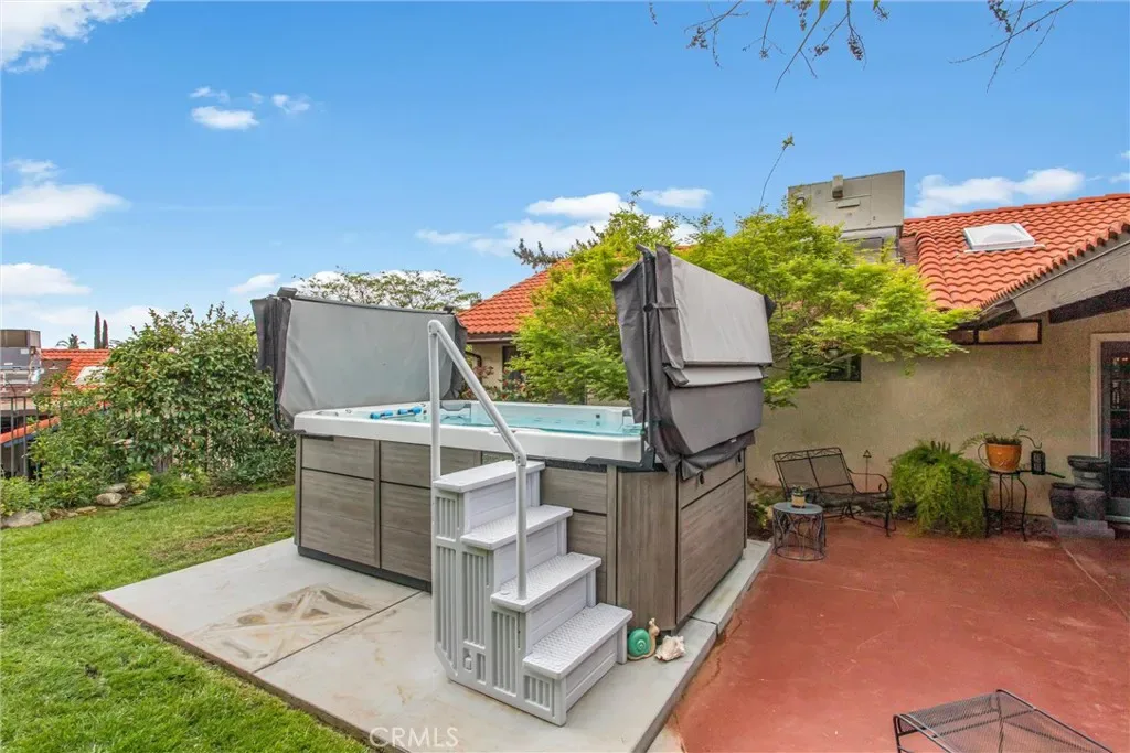 Situated on a prime corner lot, the home’s magnetic curb appeal is defined by classic stucco, timeless brickwork, and inviting entry steps. The private backyard features a covered patio, a grassy area, and a “spool” (spa-pool hybrid) perfect for morning laps or evening relaxation. With the added bonus of dedicated RV parking, this property offers the rare combination of professional-grade construction, designer style, and comfort.