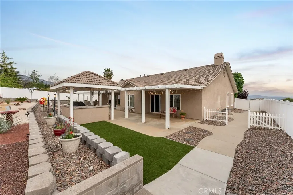 Experience upscale living in this beautifully maintained custom built single-story home! Located in one of Yucaipa’s most sought-after communities, just off Wildwood Canyon and minutes from Oak Glen. Offering a spacious and functional layout, the home features formal living and dining areas along with an open-concept family room with a wood burning fireplace, ideal for both everyday living and entertaining. Upgraded flooring runs throughout, including wood-like tile in the main areas and newly installed LVP flooring in the bathroom. The kitchen is thoughtfully designed with granite countertops, custom cabinetry, a large island, walk-in pantry, and double ovens. The primary suite offers a spacious retreat with dual sinks, soaking tub, walk-in closet, and ample storage. Additional bedrooms are well-sized, including a flexible office space with French doors and a convenient Jack-and-Jill setup. Step outside to a private, low-maintenance backyard with tiered hardscape, mountain views, covered patios, and a built-in BBQ area—perfect for entertaining. Additional highlights include PAID-OFF SOLAR, RV parking with dump station, a finished garage, and an insulated shed. Conveniently located near local wineries, and dining, this home offers a rare blend of privacy and seclusion while still being close to everyday amenities. It’s ideal for those who appreciate nature, scenic mountain views, and a more peaceful lifestyle. Schedule a tour today to experience everything this home has to offer!