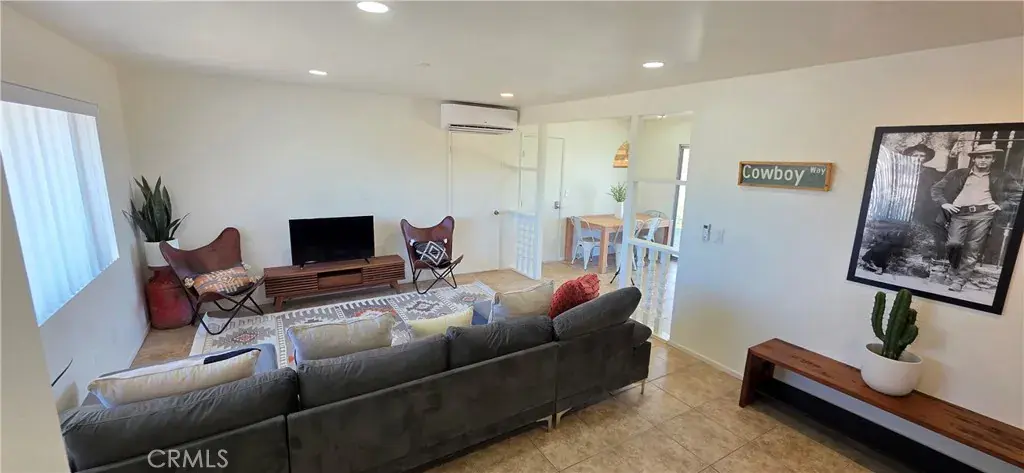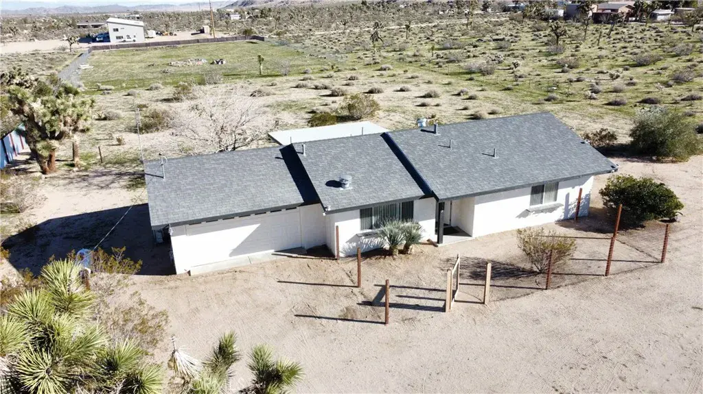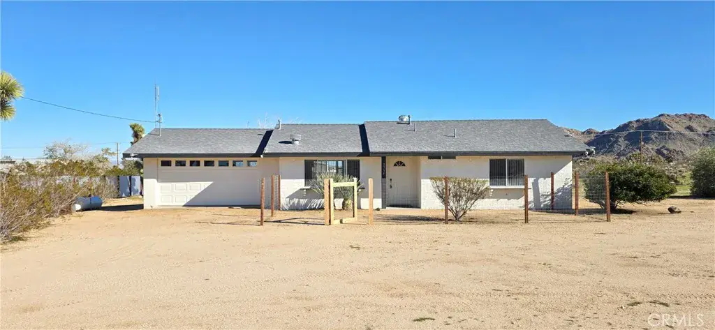 Discover the ultimate turnkey desert retreat! This stunningly remodeled 2-bedroom, 2-bathroom home sits on 1.25 fully fenced acres, offering unparalleled privacy and breathtaking mountain views. No detail was spared in this professional renovation, featuring new flooring, designer paint, double-pane windows, and a newer roof. The open kitchen shines with brand-new appliances, including a refrigerator, stove, dishwasher, and microwave. For maximum comfort, the home features four high-efficiency mini-split systems for zoned A/C and heating. The legal 2-car garage has been meticulously finished with polished floors and completed walls/ceilings; currently used as a spacious 3rd bedroom/Airbnb suite, it offers incredible versatility. Step outside to a large covered patio, perfect for soaking in the desert sunsets. Located in a neighborhood of larger estates, you are just 7 minutes from shopping and dining. This home is being sold COMPLETELY FURNISHED with professional decor—it is truly move-in ready. Just bring your toothbrush and start living the desert dream!