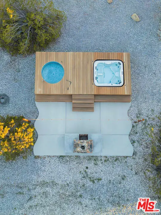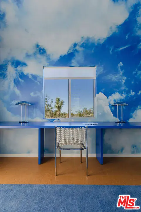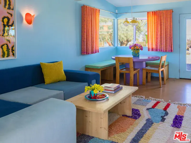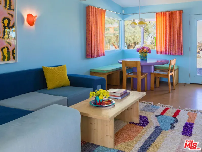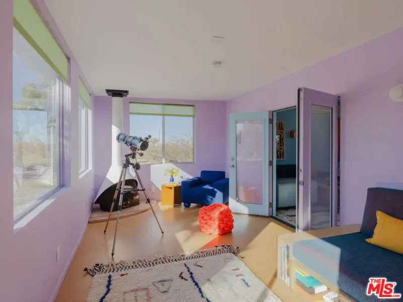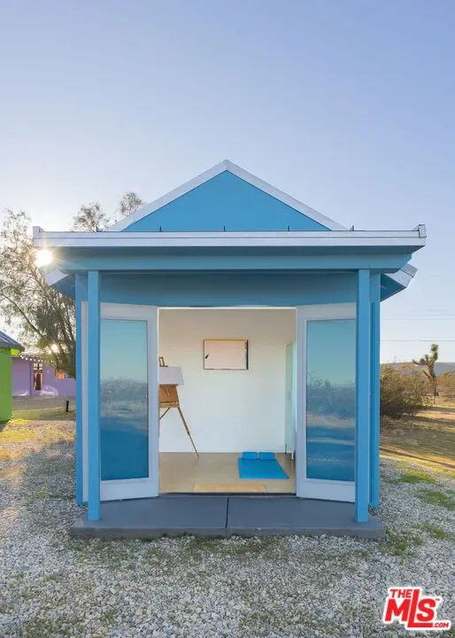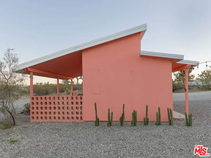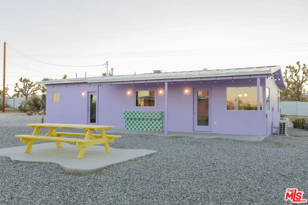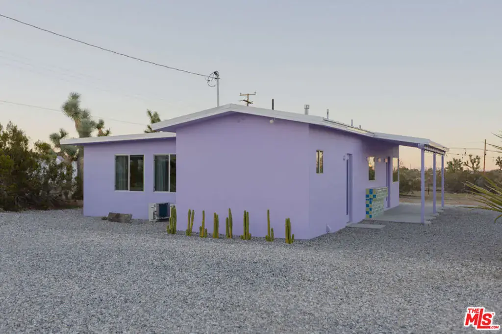 Color-drenched designer compound featured in Elle Decor, Dwell, and Design Milk, Lavender Ranch is a fully reimagined 1957 desert retreat where sunset inspiration and design converge. Los Angeles interior and furniture designer Another Human meticulously reenvisioned these 4 structures, including a 1BD/1BA lavender-hued main house with a bonus room (optional 2nd BD), newly built Studio/1BA permitted ADU “The Bunkhouse” with kitchenette and private patio, and two studio urban shedseach in its own distinct colorall rebuilt from the studs with new plumbing, electrical, insulation, windows, doors, stucco, and standing-seam metal roofs. Interiors showcase custom cabinetry, cork flooring, all dimmable restored vintage and designer lighting, and a restored vintage gas-burning Malm fireplace in the sunroom of main house. The main house kitchen blends form and function with Bertazzoni, Bosch, and Summit appliances, and Cambria quartz counters. A charming sunsplashed dining nook is the perfect spot for sipping morning coffee. The primary bath features a Peter Shire toilet seat and custom pulls by Chen Chen & Kai Williams. The newly converted 2025 ADU features vaulted ceilings, porcelain Daltile, marble vanity, plus independent new septic system. One studio serves as an office wrapped in a cloud mural designed by Another Human; the other is currently an art studio but the possibilities are endlessyoga, podcast, work from home! Outdoors, native Joshua Trees envelop the property, plus enjoy San Pedro cactus, Ipe wood decking, a cowboy tub, new Jacuzzi hot tub, and original outdoor hearth to shape a sculptural desert retreat. Enjoy picnic table dining under the stars! Additional systems improvements include: new fiber internet, new minisplits, updated foundation/footings, new Rheem water heater, and new GE washer/dryer. Can be sold furnished for an additional fee, including custom pieces designed by Another Human. Lavender Ranch stands as a landmark of California design and one of the high desert’s most distinct design properties. Located in Yucca Valley, near Joshua Tree National Park, Pioneertown’s Pappy & Harriet’s, Mojave Gold, and the area’s growing collection of celebrated eateries and design-forward shops, this 1.82-acre retreat captures the creative pulse of the high desert and is perfect for an escape from city, or a high-performing short-term rental. Welcome to Lavender Ranch! Measurements (buyer to verify) are approximately: main house 1036 sq ft + 207 sq ft ADU “The Bunkhouse” + green studio 120 sq. ft. + art studio 100 sq. ft.