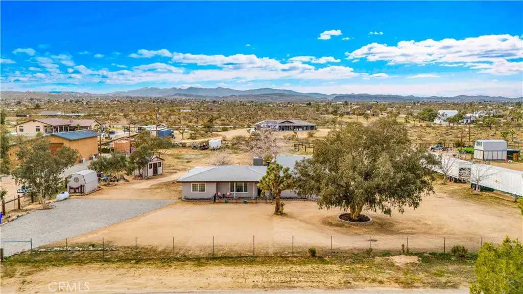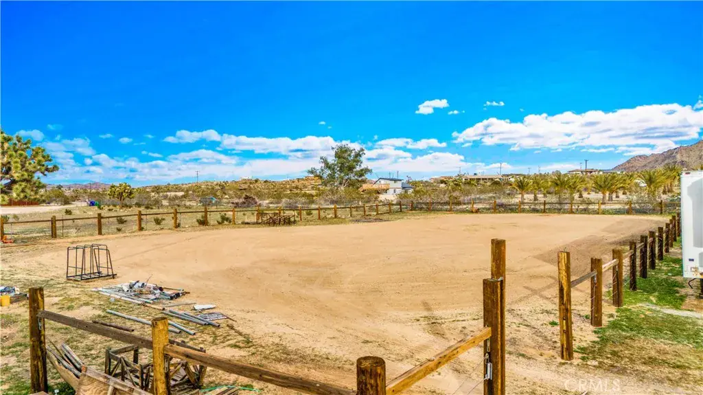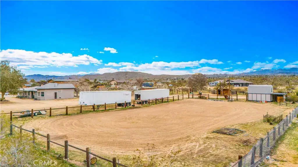 Welcome to your high-desert dream retreat in rural Yucca Valley. Set on over 2 fully usable acres, this beautifully remodeled 5-bedroom home offers the perfect blend of space, comfort, and country living—ideal for a hobby farm, equestrian setup, or private desert escape. The property features multiple outbuildings, including a 4-stall horse barn and riding arena and training ring, providing exceptional versatility for animals, equipment, or creative pursuits. Inside, the home has been thoughtfully updated with fresh interior and exterior paint and brand-new carpet throughout. The remodeled kitchen is a standout, boasting beautiful cabinetry, a brand new fridge, double ovens, and a 6-burner stove—perfect for entertaining or everyday living. Additional upgrades include solar panels, a newer A/C unit, and modern finishes that make this home move-in ready. Bonus attic storage of approx 400 sq ft with pull-down stairs access. Enjoy wide-open skies, peaceful surroundings, and room to grow—just minutes from town, yet worlds away. This is desert living at its best. Furnishings optional.