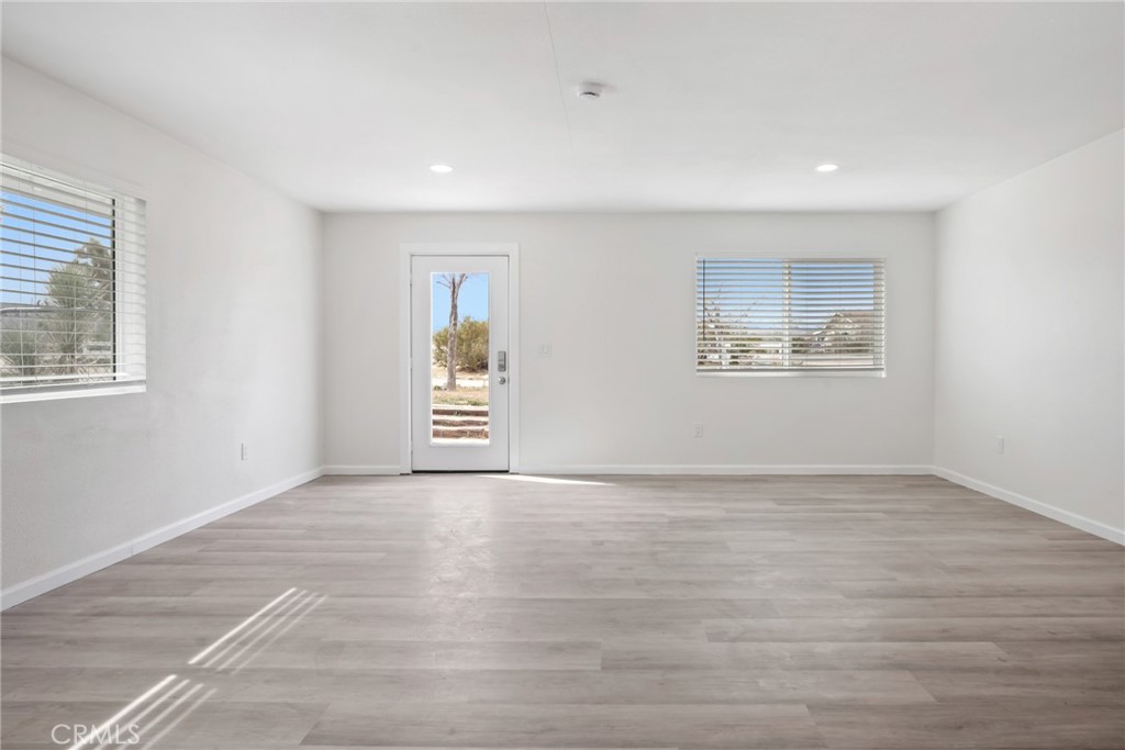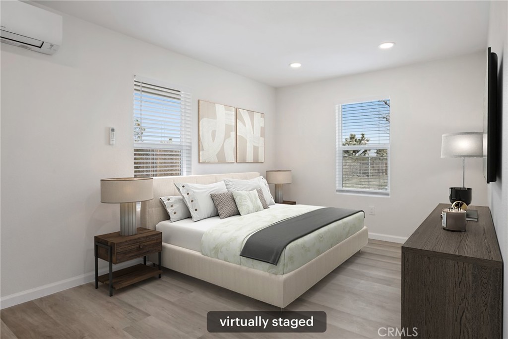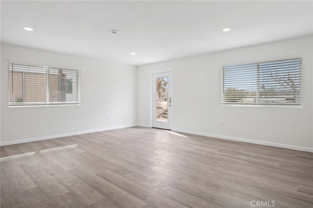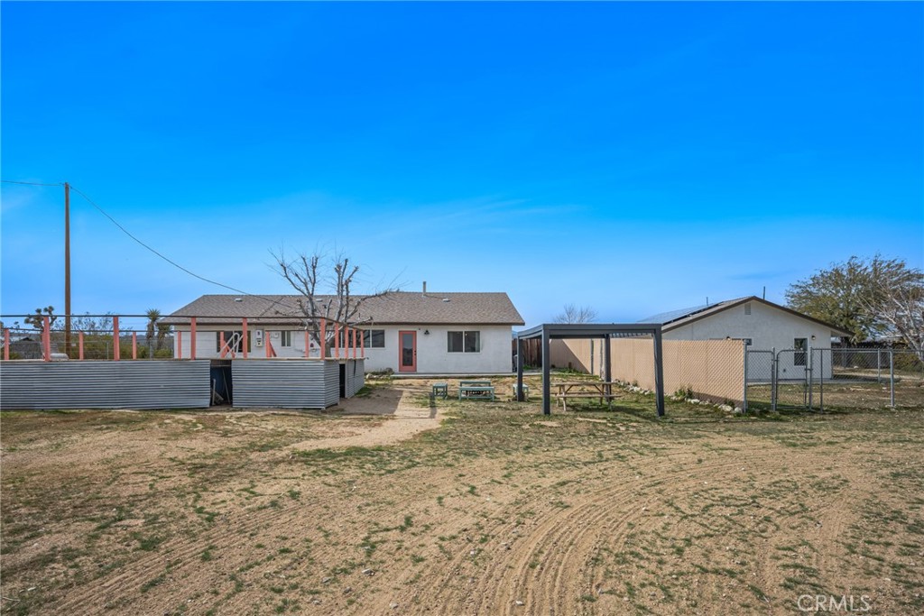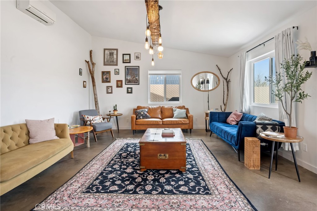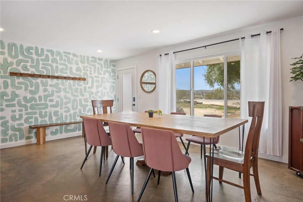 Rare opportunity to own two fully renovated homes on one expansive 1.08-acre lot, showcasing panoramic views of the Joshua Tree mountain range. This exceptional property is ideal for owner occupancy or investment, with a successfully proven short-term rental history as an Airbnb “Guest Favorite,” boasting a 4.9-star average rating and over 115 reviews. The main residence spans 2,005 sq ft and offers 4 bedrooms and 2 bathrooms, thoughtfully updated with modern finishes throughout. The newly remodeled bathrooms showcase beautiful tilework, stylish vanities, and contemporary hardware. The open-concept kitchen flows seamlessly into two distinct living areas, creating an ideal space for entertaining or relaxing. Highlights include quartz countertops, a pantry, updated recessed lighting, and newer electric appliances. The fully renovated ADU offers approximately 960 sq ft, featuring 2 bedrooms and 1 bathroom—perfect for extended family, guests, or rental income. Both units are equipped with efficient mini-split AC/heating systems for year-round comfort. Step out back to enjoy a 10-person above-ground pool, expansive deck, and spacious lot ideal for gatherings or other projects. Pull into the large circular driveway providing parking for up to 10 vehicles, with space for an RV or oversized vehicle. Additional features include solar panels for energy efficiency and a location that’s hard to beat—just 15 minutes to Joshua Tree National Park and 15 minutes to Pioneertown.