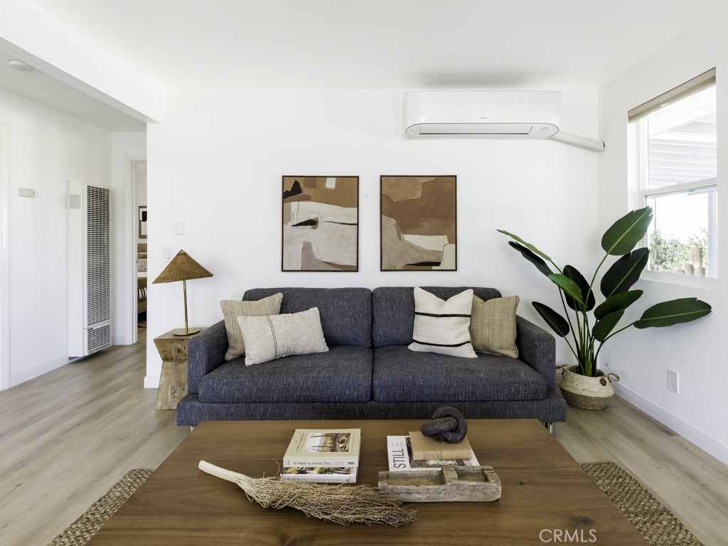 BOULDERS! PRIVACY! Fabulous 2-bedroom, 1-bathroom home is a hidden gem on a spacious 1.39 acre lot, offering ample room for both relaxation and entertainment. Set in the breathtaking desert landscape, this property showcases a unique blend of character and tranquility. Built in 1959, this 974-square-foot home exudes a sense of history and warmth, with a two-car garage providing convenient parking options. The home has been upgraded with mini-split systems for heating and cooling along with waterproof laminate flooring. The expansive lot is huge – but there is an opportunity to purchase an additional 1.35-acre parcel ensuring plenty of space for outdoor activities and future developments. Step outside to discover a meticulously landscaped yard adorned with native desert flora and stunning natural boulders, creating a harmonious blend of natural beauty and human craftsmanship. This property is not just a house; it’s a true sanctuary where you can soak in the peaceful surroundings and embrace the essence of desert living.