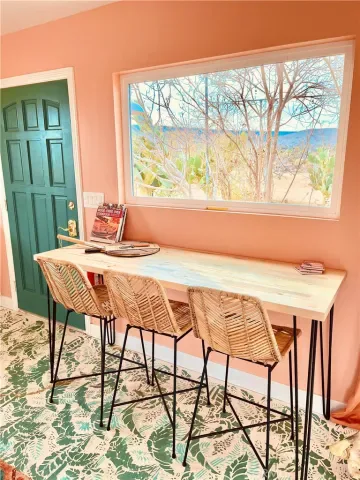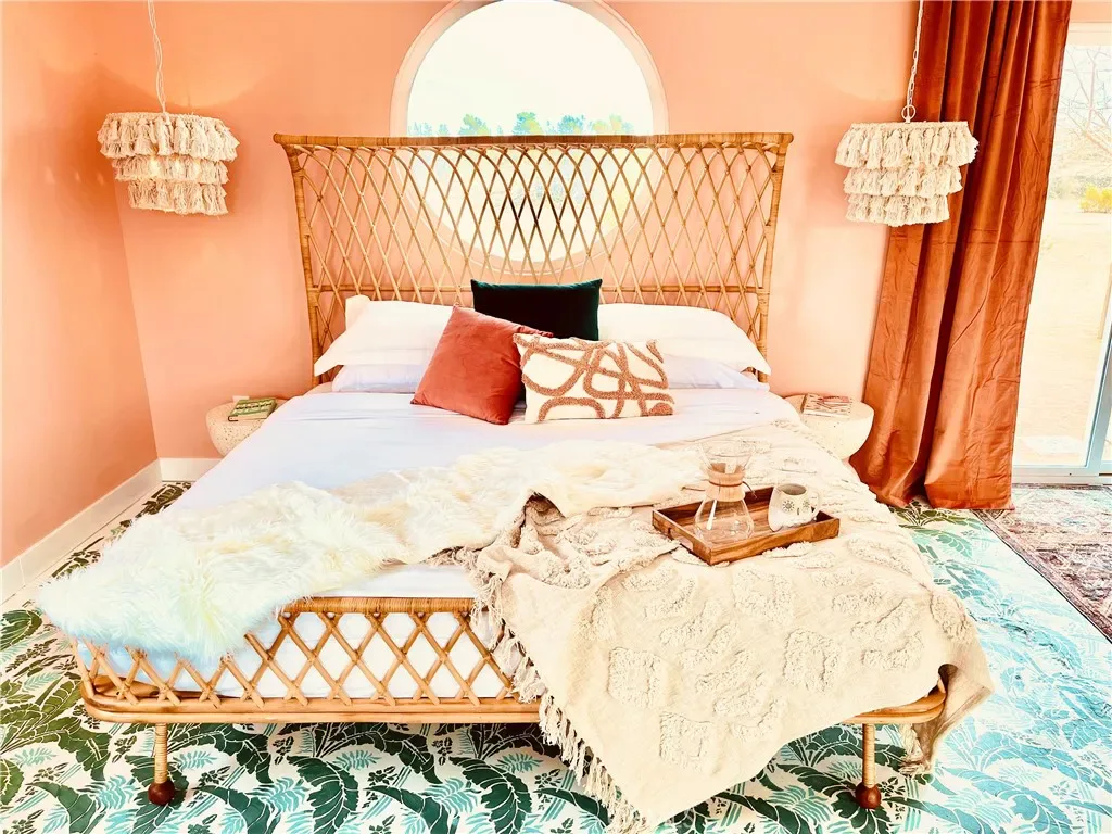 The colorful jewel is a guest favorite with hand painted floors, an oversized patio with hanging beds, a luxury cement fire pit with epic sweeping views to the east. Enjoy candy colored sunsets or hot tub under the stars! This property has an upgraded electric panel and sub panel on the detached patio for possible expansion as well as an EV charger. All work here was fully permitted! Property can be sold furnished with Anthropology, World Market and Pottery Barn lights, furniture and beds. With rustic hand painted floors, a custom plaster double shower, glass panels and a beach front shower with beautiful colors; this is a one of a kind property will be a hit with your bohemian color lover! Its originality helps it stand out from the crowd and has historically brought in consistent revenue year round. And yes, it has all the amenities you’d expect for a turnkey short term rental: hammocks, outdoor shower, cowboy pool, security cameras, hand painted corn hole boards, butcher-block counters and an oversized fridge for entertaining.