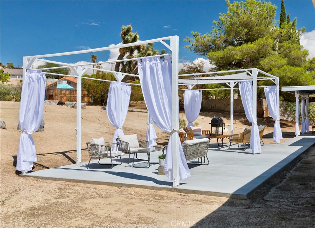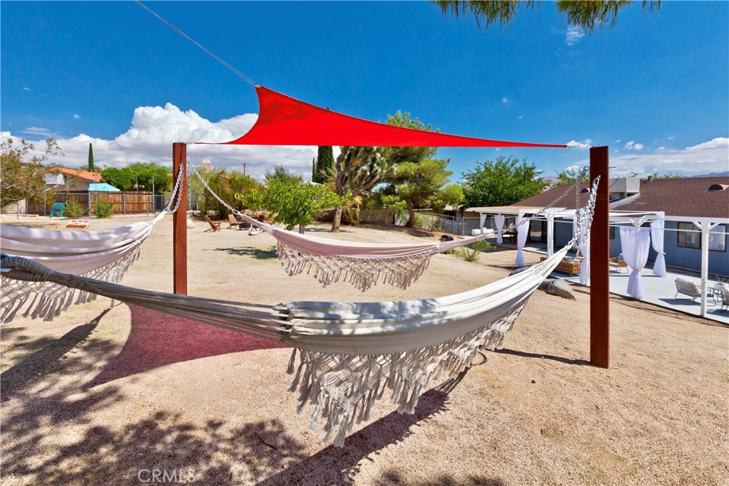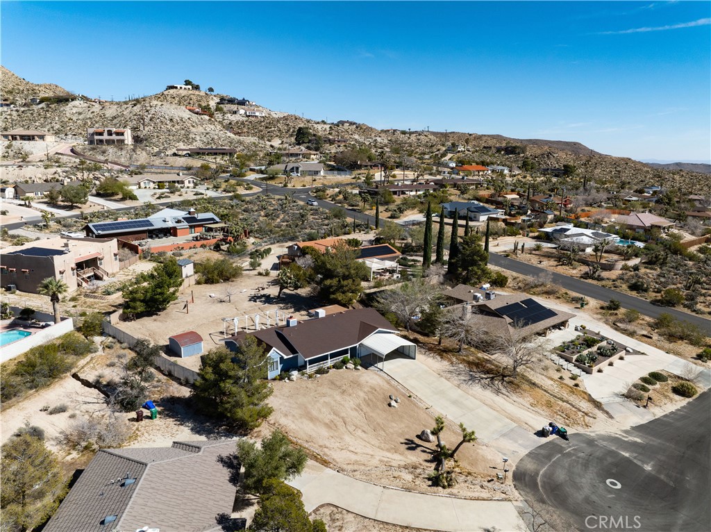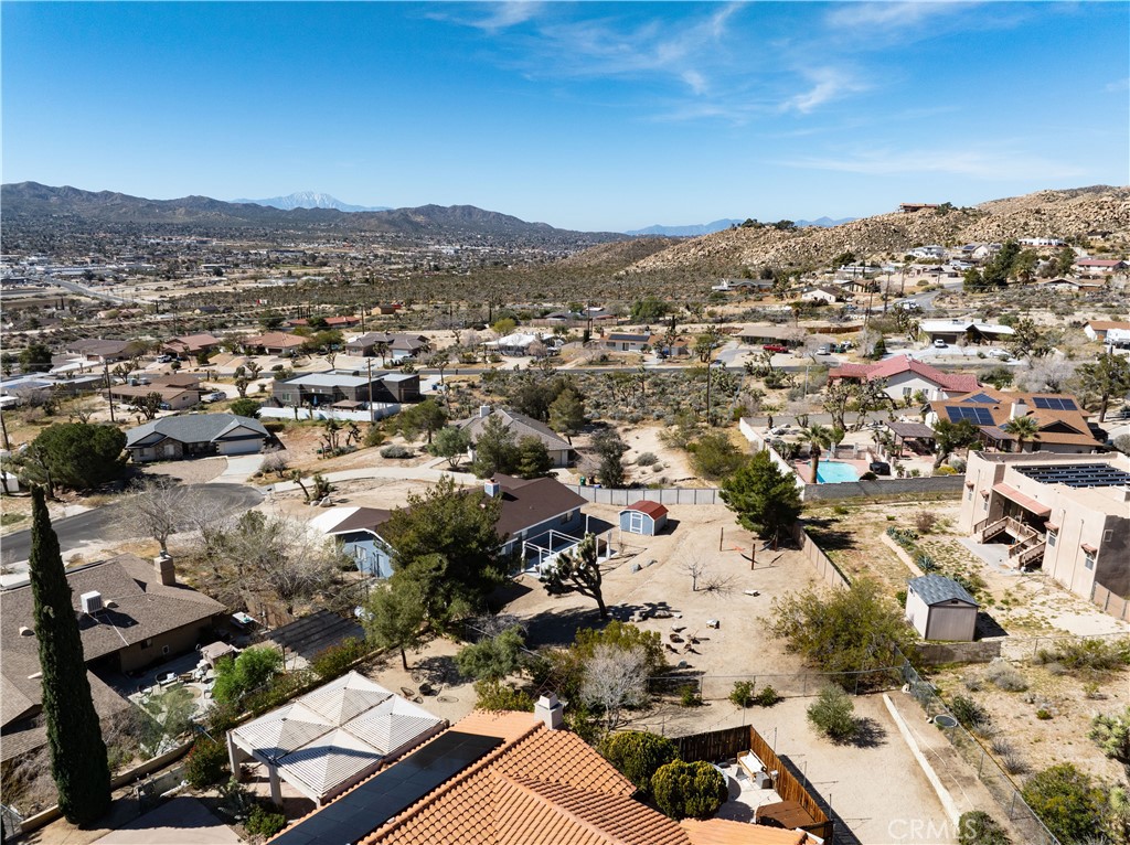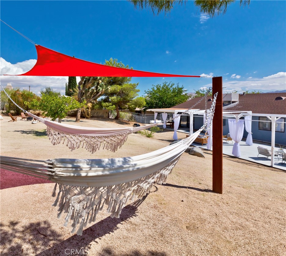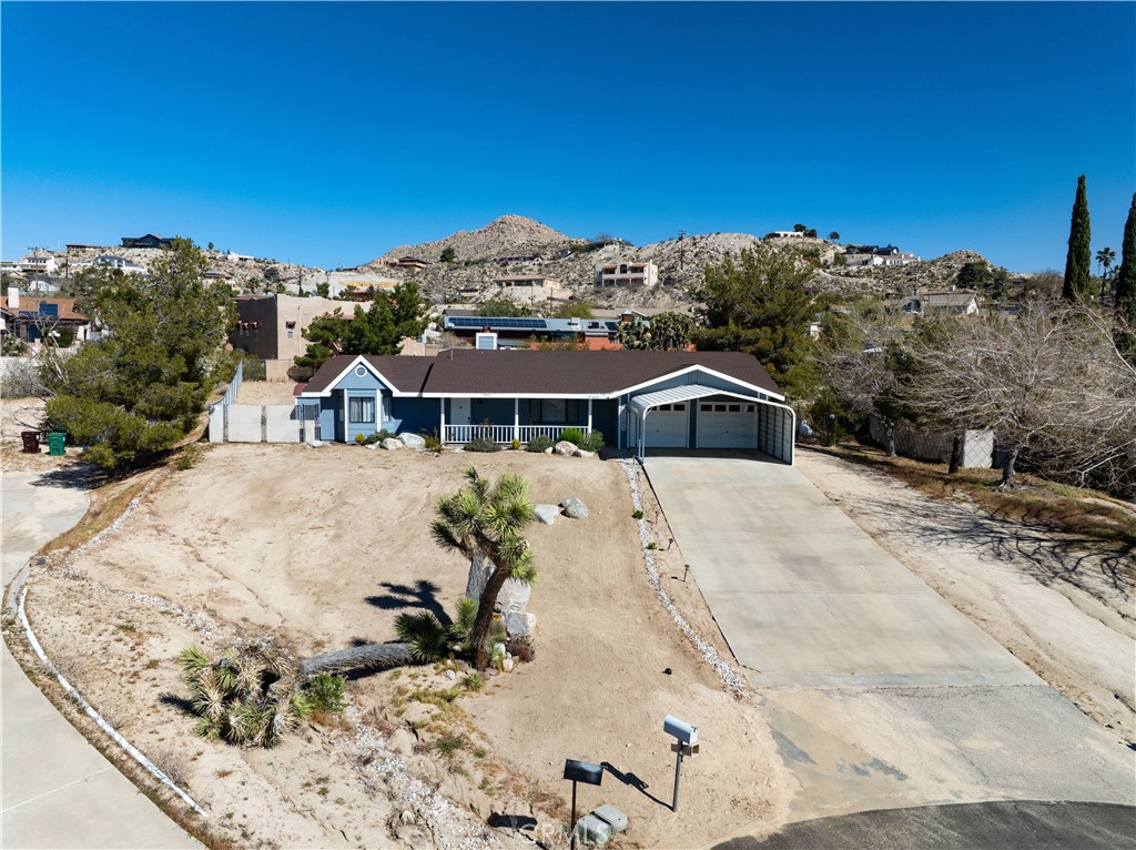 Price Reduced! Gorgeous 3 Bedroom, 2 Bathroom Home with Views in One of the Most Coveted Areas of the Hi-Desert. Located on a cul-de-sac in the highly sought-after Western Hills Estates area of Yucca Valley and renovated with beautiful finishes, this wonderful home is sure to please. As you drive through the neighborhood, you’ll realize why this area is so popular, passing by well-cared-for homes surrounded by stunning views of boulders and mountains in the background. Pulling into the ½-acre lot, you’ll notice a chic blue façade with white trim, a double garage door, and mature Joshua trees. A covered patio welcomes you as you stop to admire the phenomenal views of the cityscapes along with the majestic mountains. Stepping through the front door, you’ll find a character-driven floor plan featuring a stunning hand-painted mural, stylish wood laminate flooring, a tasteful color scheme, decorative shelving accents, and a beautiful fireplace that ties it all together. Designed with entertaining in mind, the upgraded and fully equipped kitchen is spacious, inviting, and stylish. It comes equipped with quartz countertops, tasteful kitchen cabinets, and stainless steel oven and dishwasher! Just off the kitchen is the large dining room, which could easily be utilized as a den. Each guest bedroom has plenty of space, and the guest bath features wood tile flooring, a beautiful vanity, a full bathtub/shower, and a stylish mirror! Entering the large primary bedroom, you’ll find a walk-in closet, a bay window, and a private bathroom featuring wood tile flooring, a chic vanity, a stylish mirror, and a full bathtub/shower! Can it get any better? Yes! The backyard has been transformed into a private sanctuary outfitted with privacy fencing, a covered patio, a NEW 20×30 cabana, and a NEW jacuzzi, making this space the perfect spot to host gatherings or enjoy all to yourself! Additional features include an upgraded electrical panel to 200A, a new 4-ton electric HVAC system, dual-pane windows, and more! Call today before this one is gone!