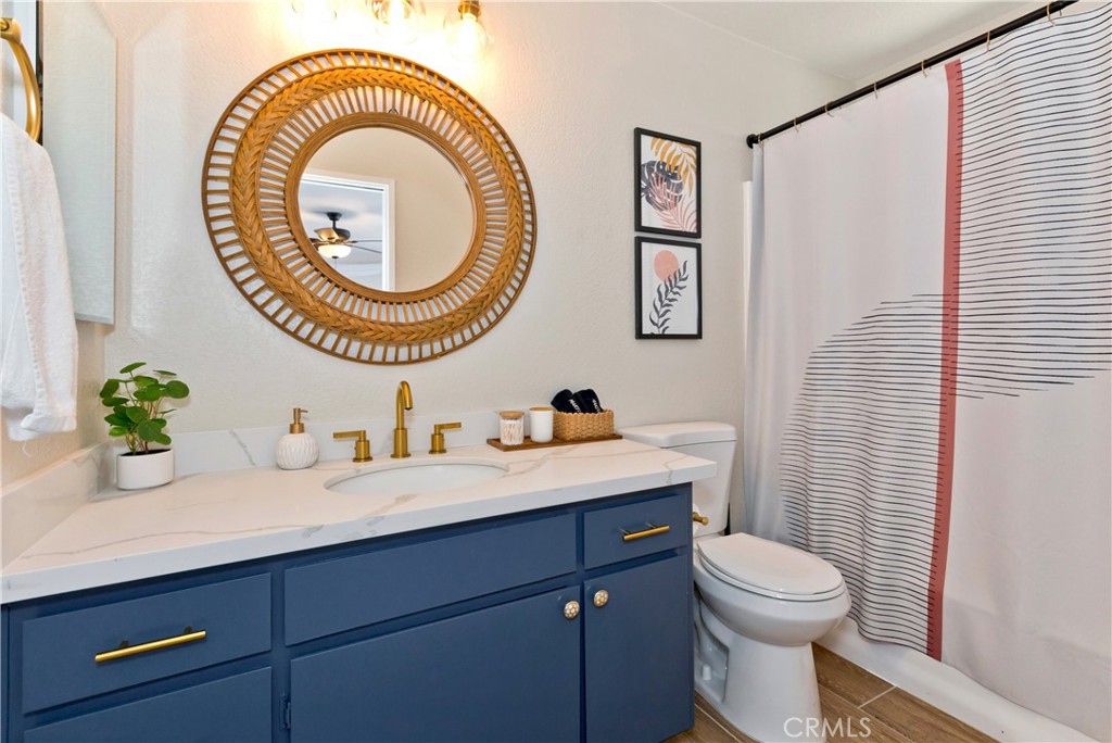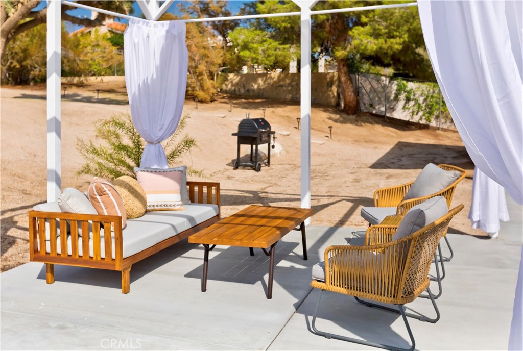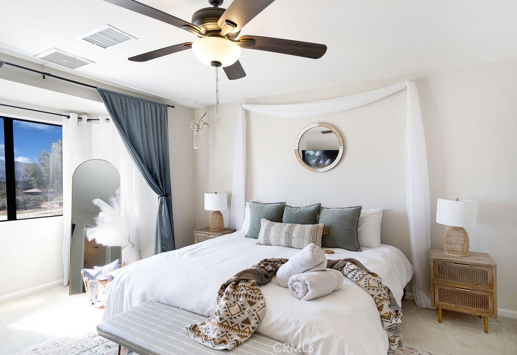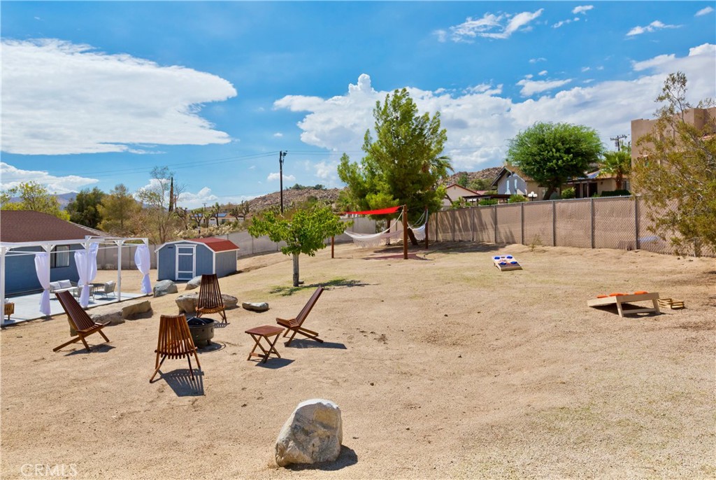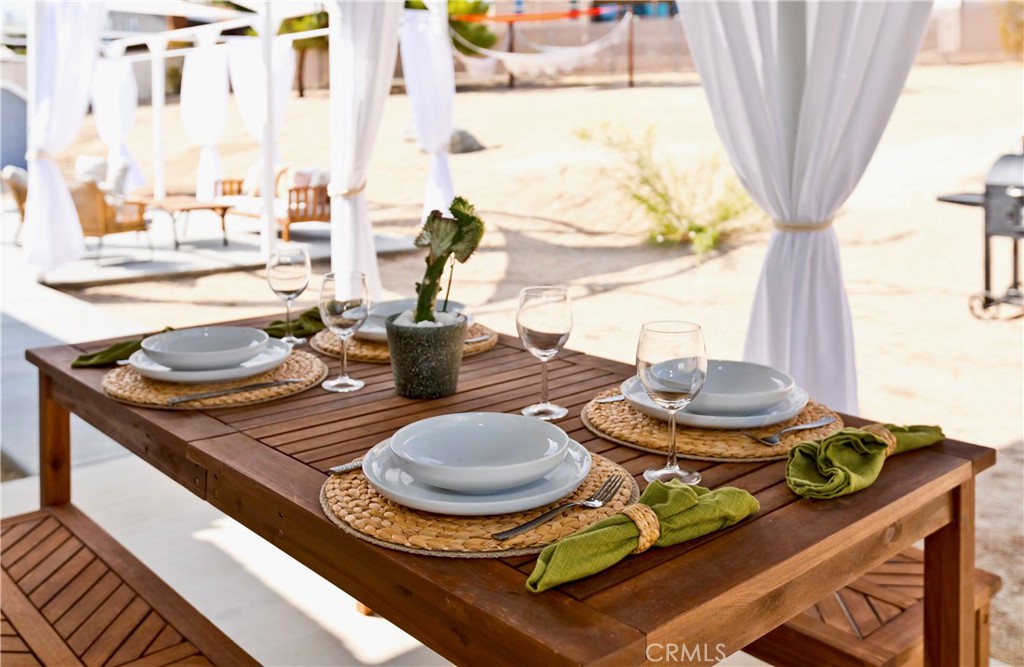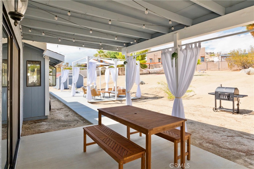 Price Reduced! Gorgeous 3 Bedroom, 2 Bathroom Home with Views in One of the Most Coveted Areas of the Hi-Desert. Located on a cul-de-sac in the highly sought-after Western Hills Estates area of Yucca Valley and renovated with beautiful finishes, this wonderful home is sure to please. As you drive through the neighborhood, you’ll realize why this area is so popular, passing by well-cared-for homes surrounded by stunning views of boulders and mountains in the background. Pulling into the ½-acre lot, you’ll notice a chic blue façade with white trim, a double garage door, and mature Joshua trees. A covered patio welcomes you as you stop to admire the phenomenal views of the cityscapes along with the majestic mountains. Stepping through the front door, you’ll find a character-driven floor plan featuring a stunning hand-painted mural, stylish wood laminate flooring, a tasteful color scheme, decorative shelving accents, and a beautiful fireplace that ties it all together. Designed with entertaining in mind, the upgraded and fully equipped kitchen is spacious, inviting, and stylish. It comes equipped with quartz countertops, tasteful kitchen cabinets, and stainless steel oven and dishwasher! Just off the kitchen is the large dining room, which could easily be utilized as a den. Each guest bedroom has plenty of space, and the guest bath features wood tile flooring, a beautiful vanity, a full bathtub/shower, and a stylish mirror! Entering the large primary bedroom, you’ll find a walk-in closet, a bay window, and a private bathroom featuring wood tile flooring, a chic vanity, a stylish mirror, and a full bathtub/shower! Can it get any better? Yes! The backyard has been transformed into a private sanctuary outfitted with privacy fencing, a covered patio, a NEW 20×30 cabana, and a NEW jacuzzi, making this space the perfect spot to host gatherings or enjoy all to yourself! Additional features include an upgraded electrical panel to 200A, a new 4-ton electric HVAC system, dual-pane windows, and more! Call today before this one is gone!