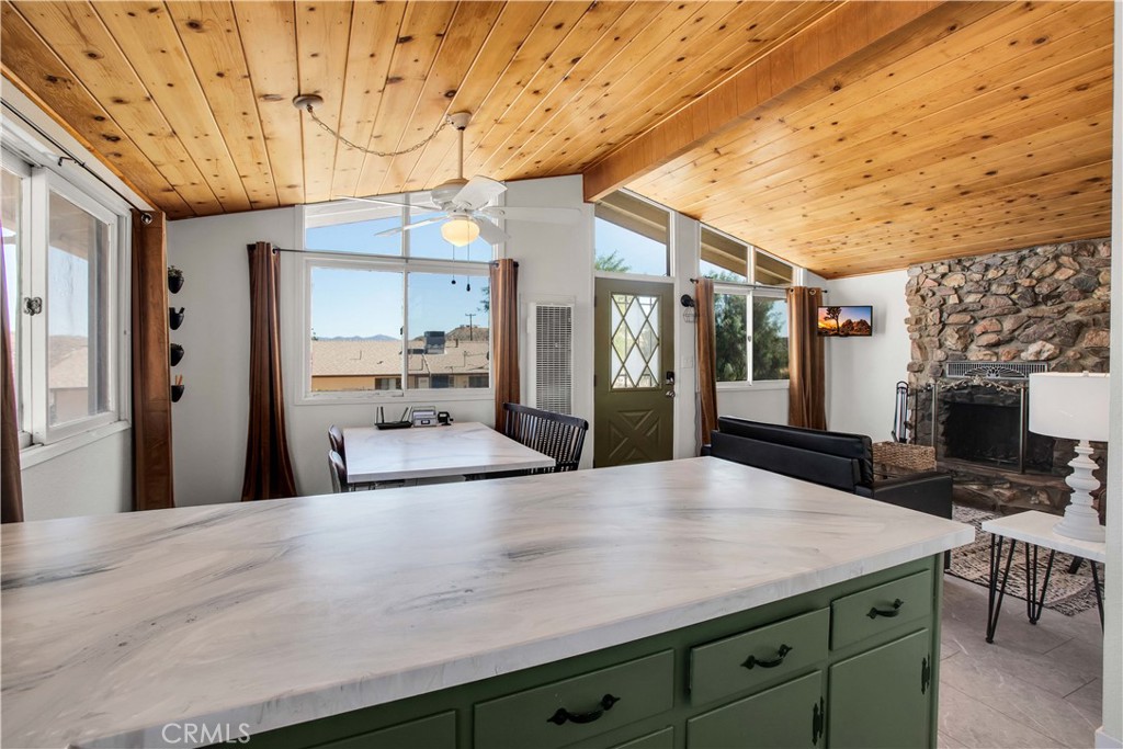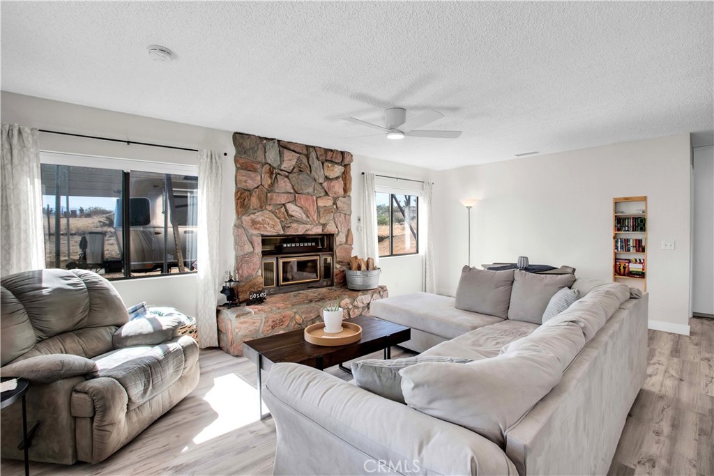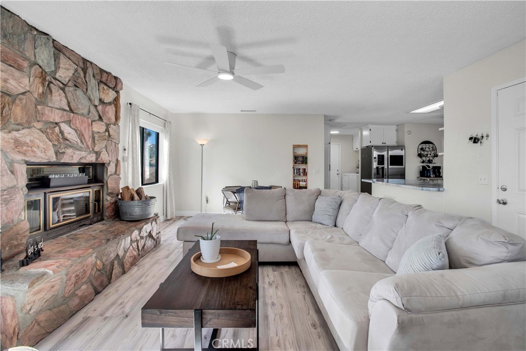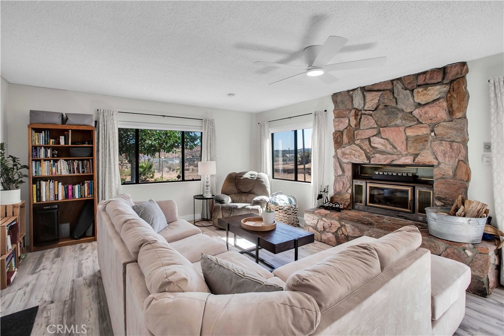 Unique opportunity to own two homes on one 2.3-acre hilltop lot, offering expansive views, a detached garage, and even a tall RV carport. With multiple living spaces and income potential, this property is ideal for multi-generational living or living in one home while renting the other. The front home is a 2-bedroom, 1-bath residence approximately 1,072 sq ft. The front yard is fenced and features a large pergola and covered front patio, perfectly positioned to take in the incredible surrounding views. Inside, the home offers a light and open floor plan with a spacious living room highlighted by a rock fireplace that flows into the dining area and kitchen. The kitchen is generously sized with abundant storage and counter space and features a beautiful view from the kitchen sink window. The bedrooms are located on opposite sides of the home, providing privacy. One bedroom is generously sized, while the primary bedroom is very large, featuring a walk-in closet and a sliding glass door that leads directly to the front patio. The remodeled bathroom is conveniently positioned for guests while also offering direct access from the primary bedroom and includes both a tub and a beautifully updated walk-in shower. An indoor laundry room with additional storage adds everyday convenience. The detached garage provides plenty of room for storage and includes a small room currently set up as an office, offering extra functional space. The second home, located behind the main house, is an adorable 1-bedroom, 1-bath residence approximately 528 sq ft and is currently operating as a permitted short-term rental. This charming home is full of character with vaulted tongue-and-groove ceilings, a beautiful rock fireplace, and large banks of windows that fill the space with natural light. The layout includes a proper dining area with the kitchen open to both the dining and living room, and the kitchen has seen updates as well. The bedroom offers ample closet storage, and the bathroom features a shower-tub combo. Additional features include a very tall RV carport capable of accommodating most RVs and currently generating additional income through RV storage rental. With two homes, income potential, extensive views, and 2.3 acres of space, this property offers a rare opportunity where much of the heavy lifting has already been done, making it ready for its next owner to enjoy.