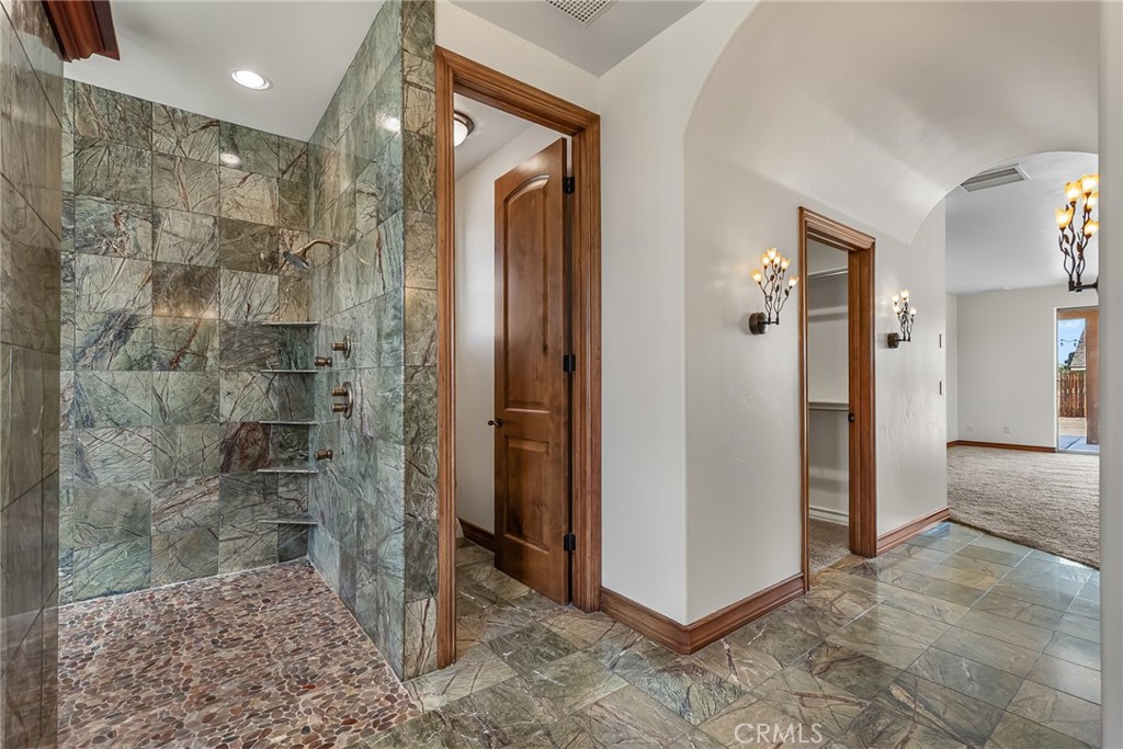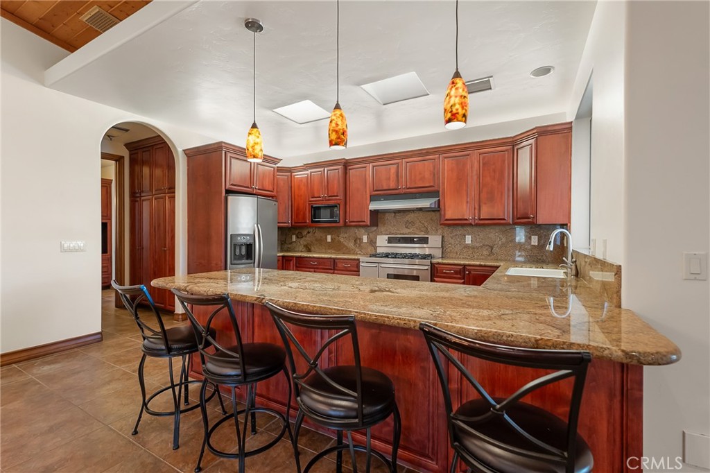 This is one of the most beautiful homes in the Upper Sky Harbor area. It was built by a well-known builder for himself and his family, so he used only the finest quality products. The home has nine-foot ceilings and eight-foot solid wood doors in every entry. All the cabinetry was crafted to his exact specifications. Most of the kitchen cabinets have soft-close and roll-out shelves. Beautiful granite counters are also found here and in all the bathrooms. In the master bath, you will find an extravagant walk-in two-headed shower with shelving and a large bench. There is also a fantastic spa tub to soak in on those stressful days. The open floor plan makes it so inviting for family and friends. There is an office area off the vast living room, and he built it so you could have a fourth bedroom or a private library. You have a split floor plan with the master suite on one side and the other bedrooms on the other. It is set up for a mother-in-law’s quarters in one of the bedrooms with its separate entrance and easy access to the kitchen, so as not to disturb the rest of the household. The living room has a beautiful tiled gas fireplace, and surround sound throughout the home and the outside. Speaking of the outside! You have RV parking, water & dump. There is one of the largest outside kitchens and counter spaces I have seen in a while! The backyard is very private, and plenty of room to add a pool. The covered patio is huge and deep to enjoy our desert summer nights. Even the three-car garage is perfect. Come and see!!! You will not be disappointed.