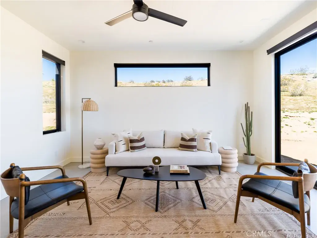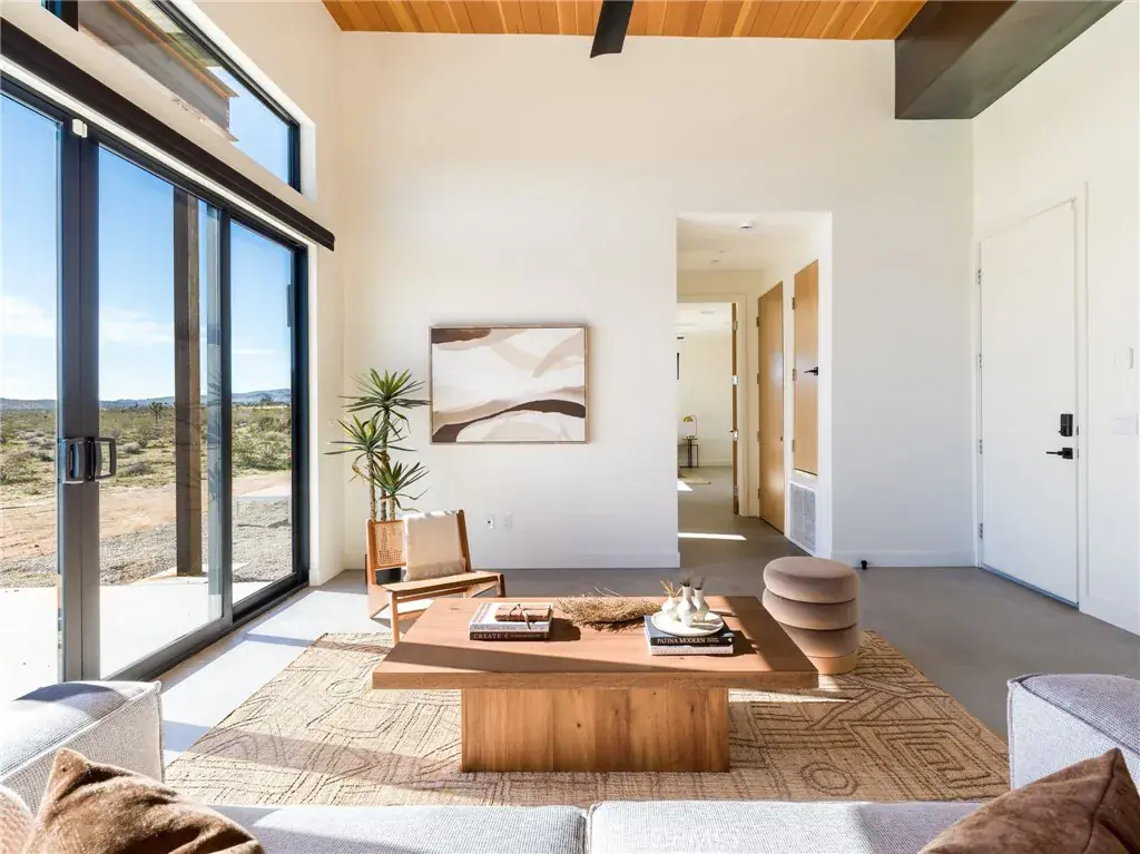 Short-term rentals are allowed (buyer to verify local regulations), offering flexibility for personal use or income potential. Built new in 2024, completed in 2026, and set on over 18 acres, this property offers space, privacy, infrastructure, and contemporary design within reach of Yucca Valley amenities and Joshua Tree National Park. *Seller owns additional contiguous 630 acres of land that is available for purchase under separate agreement.*