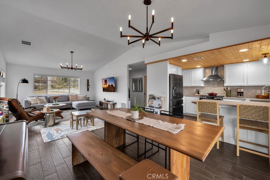 Located in Yucca Valley’s Western Hills neighborhood, this 3 bedroom, 2 bath home offers 1,522 square feet of thoughtfully designed living space on a 16,250 square foot lot. Built in 2003, the home features high ceilings, recessed lighting, tile wood-look flooring throughout, and an easy single-level layout connecting the living, dining, and kitchen areas.