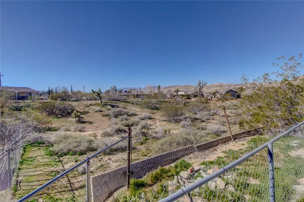 An attached two-car garage provides convenient parking and additional storage. The property’s location offers easy access to local shops, dining, schools, and outdoor recreation, including Joshua Tree National Park and nearby desert trails. Enjoy expansive mountain views, including views of snow-capped Mount San Gorgonio on clear days, along with stunning desert sunsets that create a peaceful backdrop to daily living.