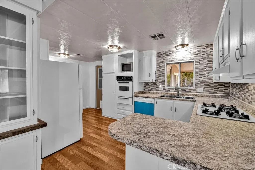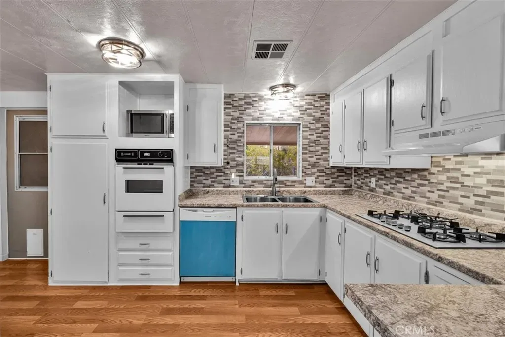 Beautifully updated 3 bedroom, 2 bath home in the desirable Aztec Mobile Home Park, a 55+ community, offering two months FREE RENT for new residences. This move-in ready residence has been thoughtfully refreshed throughout, offering a bright and inviting interior with modern upgrades and comfortable living spaces. The home features updated kitchen finishes including new countertops, sink, faucet, and appliances, along with refreshed bathrooms showcasing new counters, sinks, fixtures, and updated shower surrounds. Additional improvements include newer plank flooring, updated lighting throughout, replaced outlets and switches, and upgraded water lines, providing both style and peace of mind. Fresh interior and exterior paint complete the clean, updated look. Outdoor spaces are designed for easy maintenance with low-water landscaping, and a spacious storage shed adds extra convenience. A versatile bonus room offers flexibility for use as a home office, den, or hobby space. Located within a well-maintained community in a desirable lot at the end of the street, the space rent is $646 per month, This is a cash-only purchase opportunity, offering a straightforward path to ownership in a welcoming senior community. Don’t miss the chance to enjoy comfortable, low-maintenance living in Aztec Mobile Home Park.