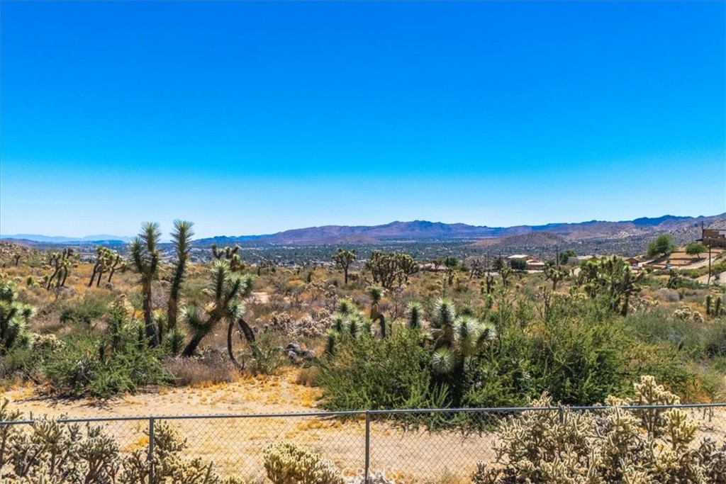 Beautiful views high in the hills in the very desirable country club neighborhood is this modern style gem of a home on a large over a half acre lot. Featuring 3 bedrooms, 2 baths and a bonus room for an office, den, studio or other. The great layout boasts a split bedroom design with a large primary bedroom with a beautiful ensuite bathroom. The primary bathroom has dual vanity sinks and a large walk in closet. The living area is also spacious and has a great view from the near wall length windows and sliding glass doors. Pull up to the exhibition kitchen counter which makes for a great entertainers spot for those who love to cook. Plenty of cabinetry in the kitchen and a lot of counter space. There are really nice tile floors in the entry, kitchen, dining area and bathrooms and the bedrooms are carpeted. The laundry area is also well equipped with plenty of counter space and storage and the 3 car garage provides ample space for your vehicles, tools or toys. It is obvious that the previous owner’s pride of ownership provides for a well maintained and cared for home. You will find that the homes location is a great attribute. Being high up in the hills with no neighbors behind the home to obstruct the stretching views across the valley you can see for miles. The fully fenced back yard is a relaxing retreat with nice patios a gentle slope and private views. From this location it is not a far drive to the shops, restaurants and venues of Yucca Valley, chic Pioneertown and downtown Joshua Tree as well as only just over 20 minutes to the main entrance of the Joshua Tree National Park itself. Also just under a half hour drive to the Palm Springs area with it’s great restaurants, shops, many wonderful theaters and Acrisure Arena, home to the Firebirds and some incredible concerts and shows. Entertainers delight! Come take a look and you will want to make this one your new home.