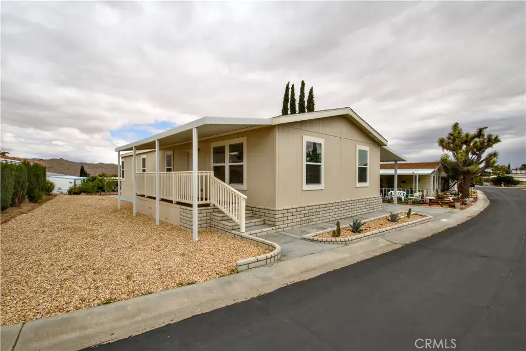 Nestled in the peaceful Gates of Spain mobile home park, this spacious unit features brand new appliances, double pane windows, three bedrooms, two bathrooms, washer/dryer hookups, boasts a bright, spacious layout with a like-new feel throughout. This unit is perfect for someone interested in settling into a quiet, tranquil 55+ community. Weather you are looking forward to relaxing on your porch surrounded by blue skies, taking a quick drive to the local shops, or going for a hike, this home not only has it all, it is centrally located in the heart of Yucca Valley offering easy access to everything you need for comfortable daily living. | Seller is offering a concession of $675 space rent for the first year, $775 space rent for the second year, market rate the third year. | Seller financing available!