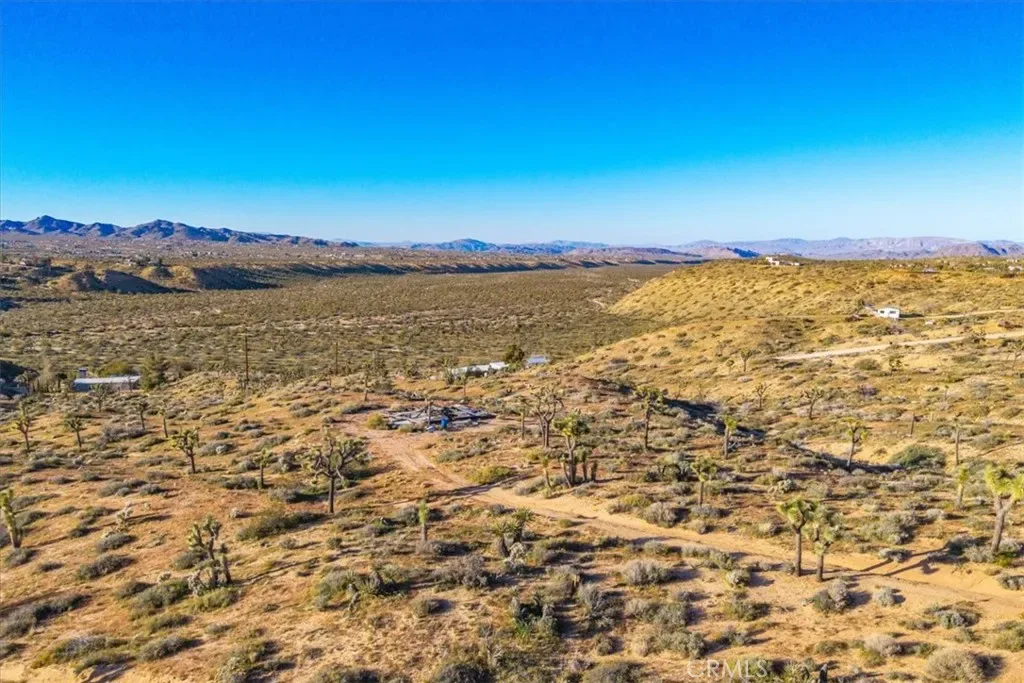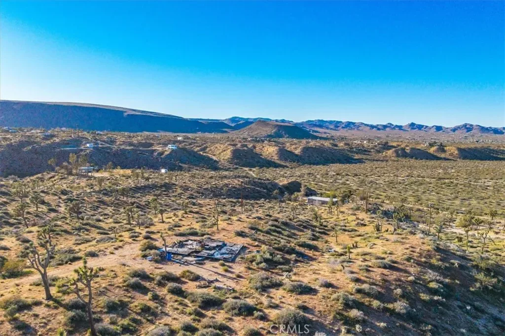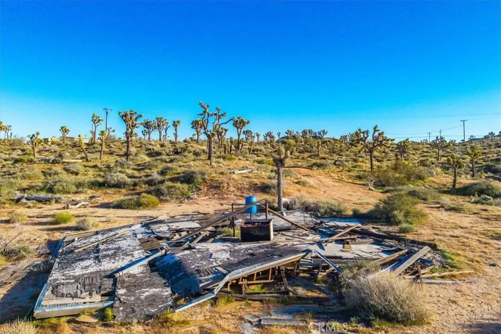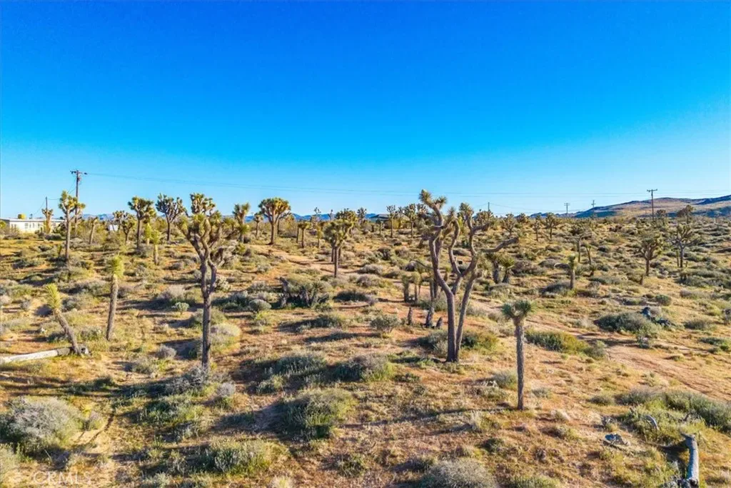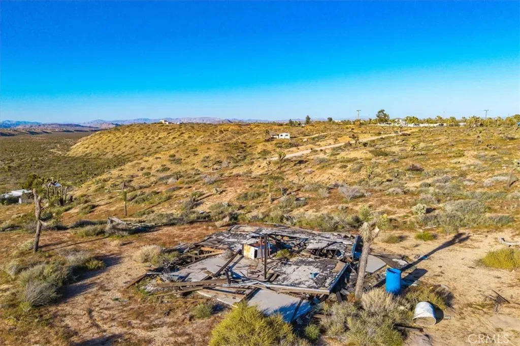 A concrete pad remains from the approximately 500 square foot cabin that once stood on the property, offering a potential starting point for future possibilities. Power is located next to the property and Hi-Desert Water District has indicated water availability (buyer to verify all utilities and building requirements).