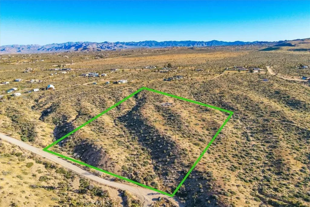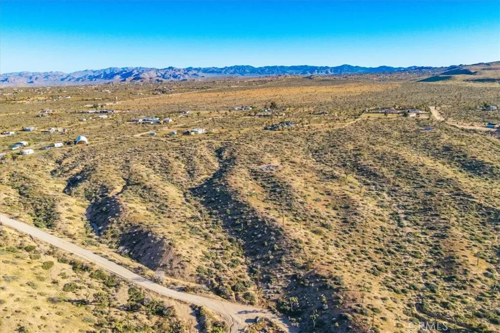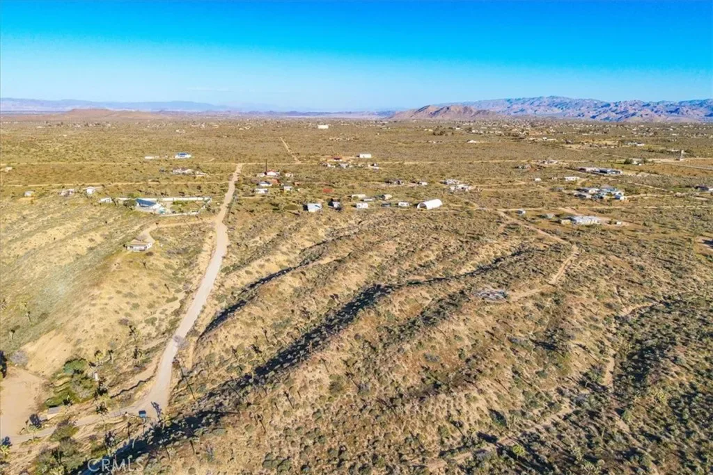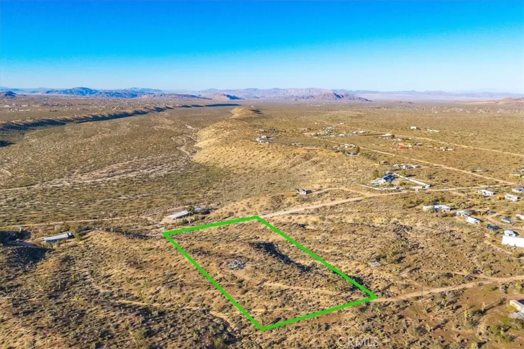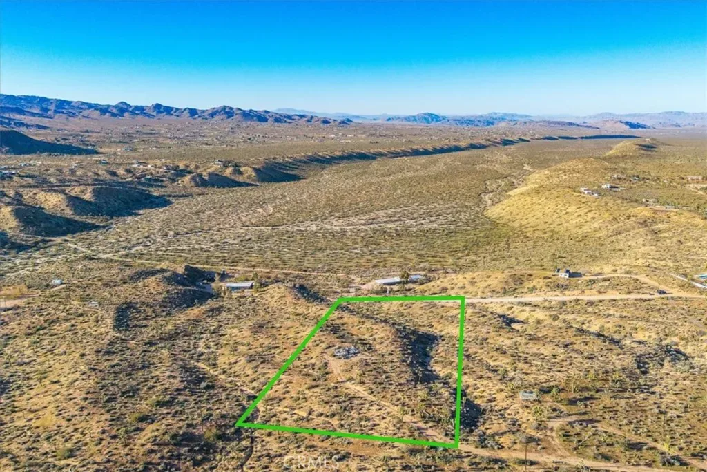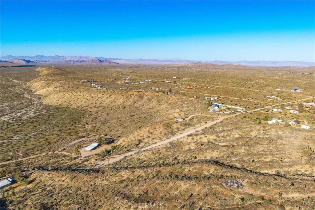 A concrete pad remains from the approximately 500 square foot cabin that once stood on the property, offering a potential starting point for future possibilities. Power is located next to the property and Hi-Desert Water District has indicated water availability (buyer to verify all utilities and building requirements).