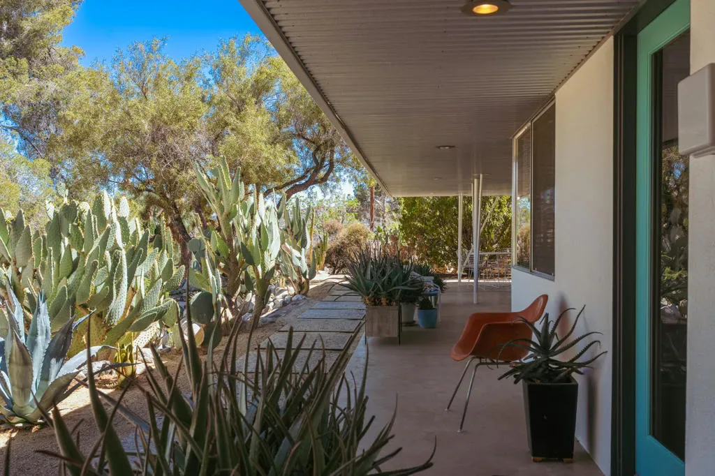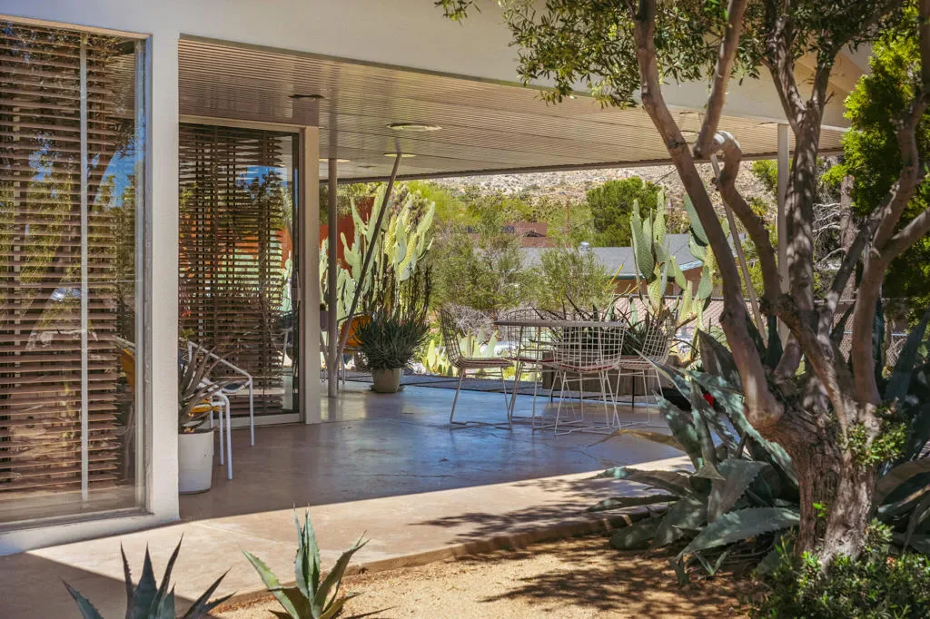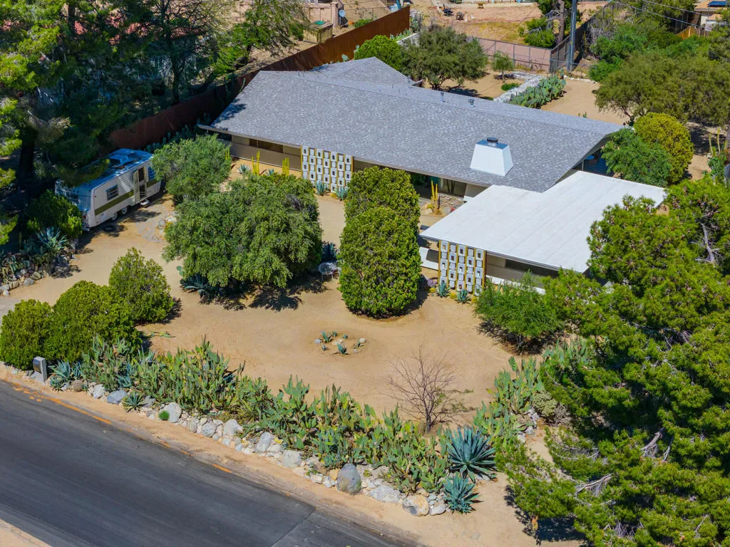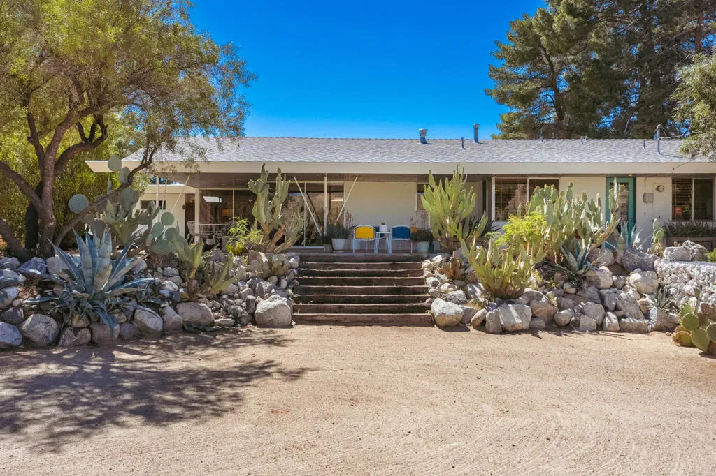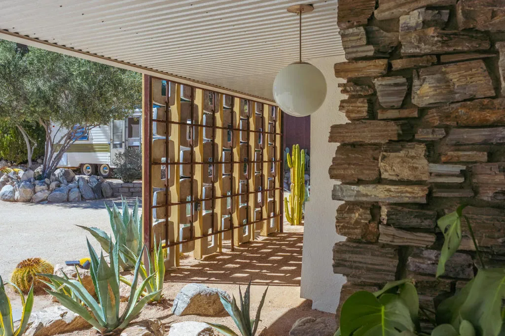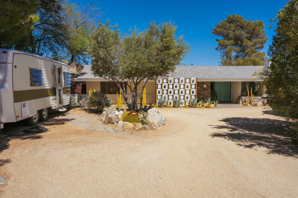 Set within Yucca Valley’s coveted Country Club enclave, this 1961 ranch is a private, design-led retreat, meticulously restored over 22 years by a master craftsman. The quality of execution is exceptional, with custom kitchen cabinetry, polished concrete floors throughout, multiple pocket doors, and a striking stone fireplace that brings warmth and sculptural presence to the living space.The home feels intentional, refined, and deeply livable throughout. An oversized patio with a 5+ foot metal-clad overhang extends the living experience outward, creating an effortless connection to the surrounding desert. Thoughtful improvements continue throughout, including an office, dedicated laundry with Etchwood cabinetry, a pegboard buffet in the breakfast area, beautifully finished baths, and curated landscaping designed for privacy, beauty, and calm.Originally the fourth home built in the neighborhood by noted high desert architect Arthur Edward Gerpheide, the property carries meaningful architectural provenance. Outside, two custom hand-poured concrete replicas of the original wood screens add another layer of craftsmanship and character, while mature desert plantings deepen the sense of seclusion. A fully restored vintage 1972 Kencraft travel trailer brings personality and flexible potential.Meticulously maintained and exceptionally executed, this is a rare offering where craftsmanship, history, and quiet design integrity come together in a truly special desert setting.