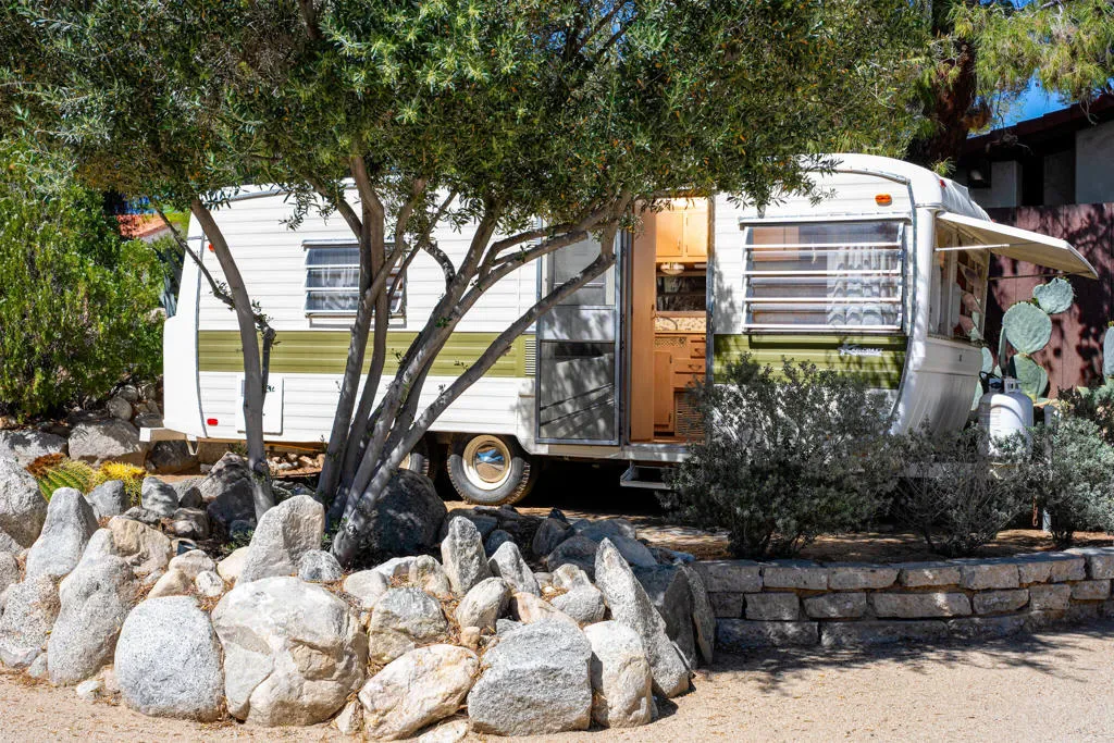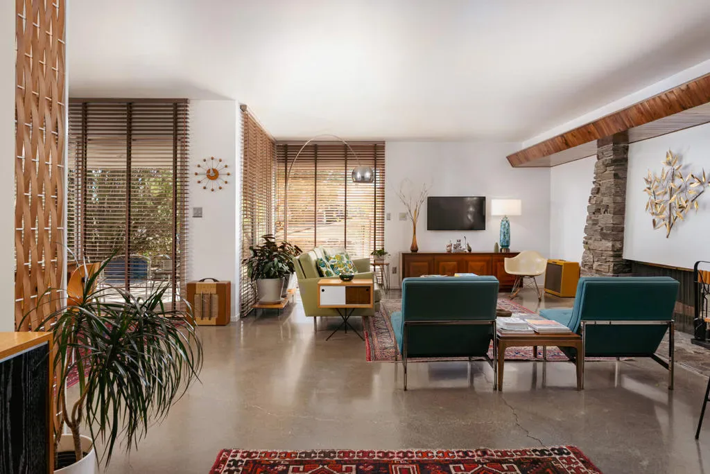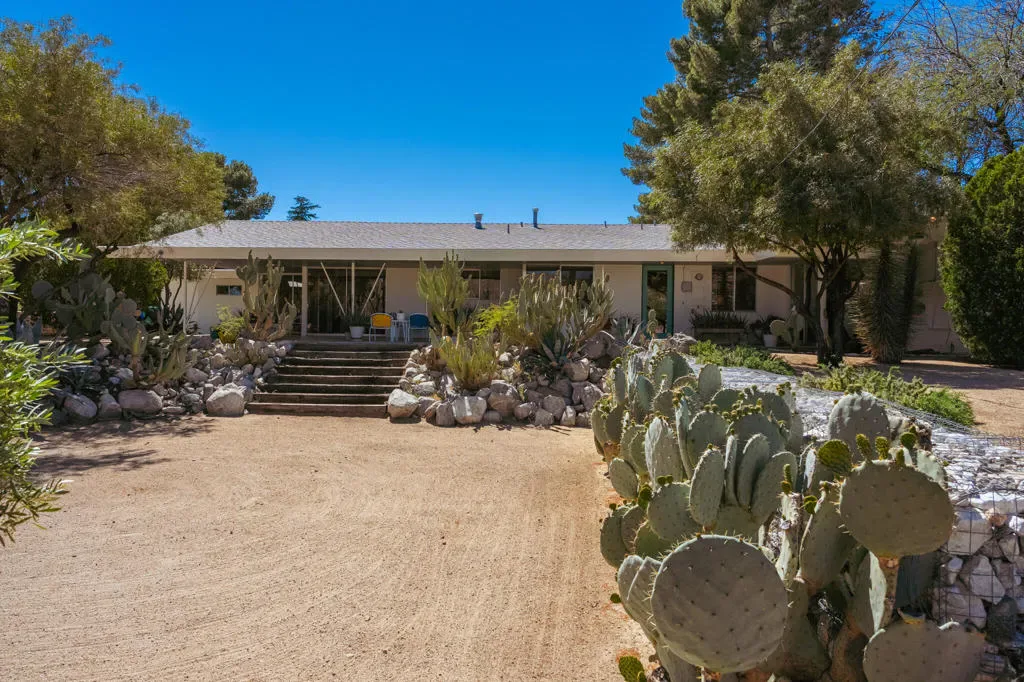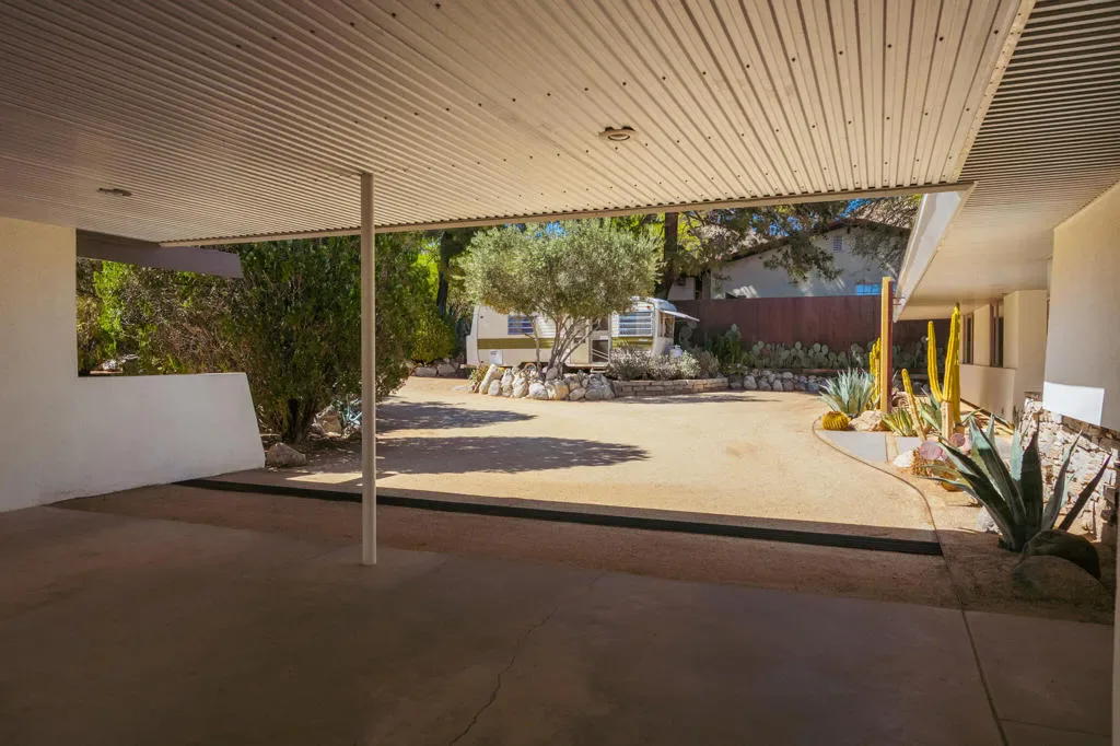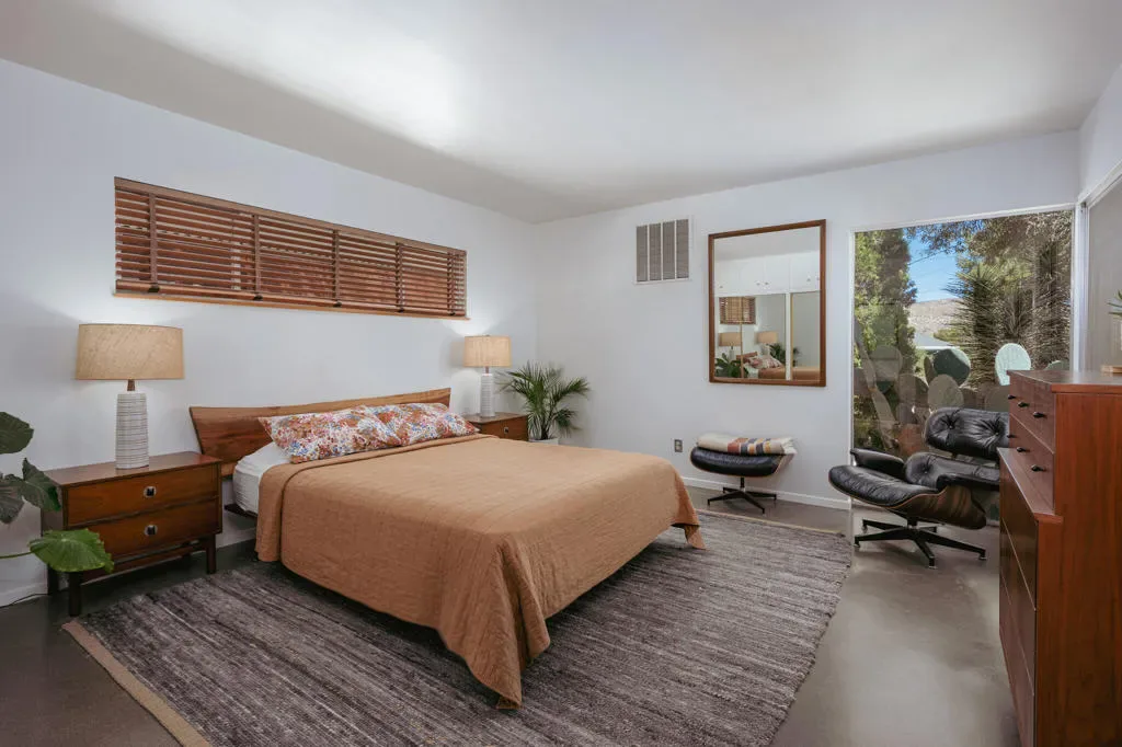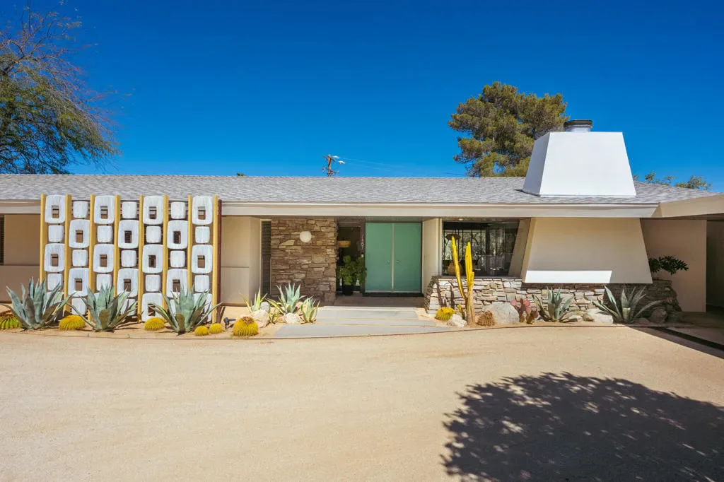 Set within Yucca Valley’s coveted Country Club enclave, this 1961 ranch is a private, design-led retreat, meticulously restored over 22 years by a master craftsman. The quality of execution is exceptional, with custom kitchen cabinetry, polished concrete floors throughout, multiple pocket doors, and a striking stone fireplace that brings warmth and sculptural presence to the living space.The home feels intentional, refined, and deeply livable throughout. An oversized patio with a 5+ foot metal-clad overhang extends the living experience outward, creating an effortless connection to the surrounding desert. Thoughtful improvements continue throughout, including an office, dedicated laundry with Etchwood cabinetry, a pegboard buffet in the breakfast area, beautifully finished baths, and curated landscaping designed for privacy, beauty, and calm.Originally the fourth home built in the neighborhood by noted high desert architect Arthur Edward Gerpheide, the property carries meaningful architectural provenance. Outside, two custom hand-poured concrete replicas of the original wood screens add another layer of craftsmanship and character, while mature desert plantings deepen the sense of seclusion. A fully restored vintage 1972 Kencraft travel trailer brings personality and flexible potential.Meticulously maintained and exceptionally executed, this is a rare offering where craftsmanship, history, and quiet design integrity come together in a truly special desert setting.