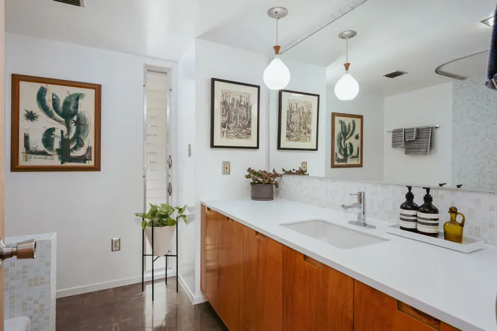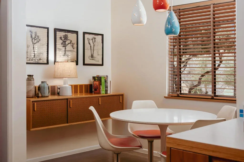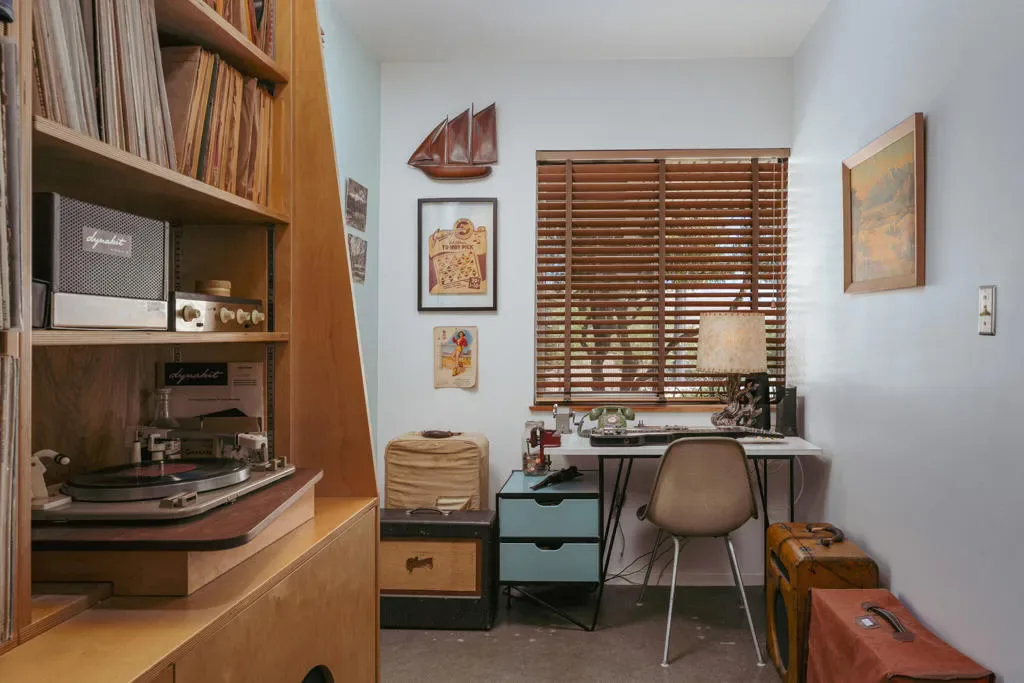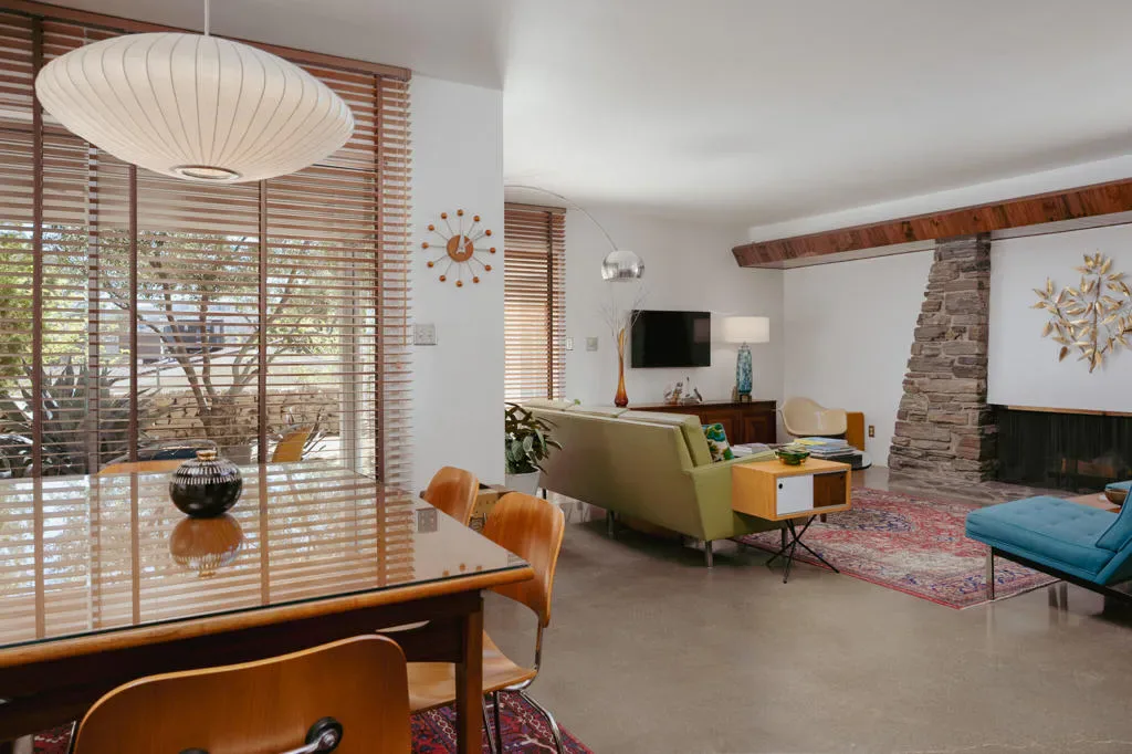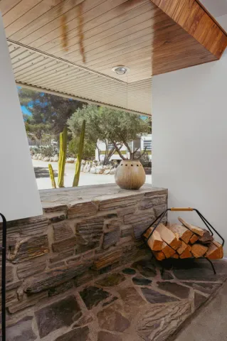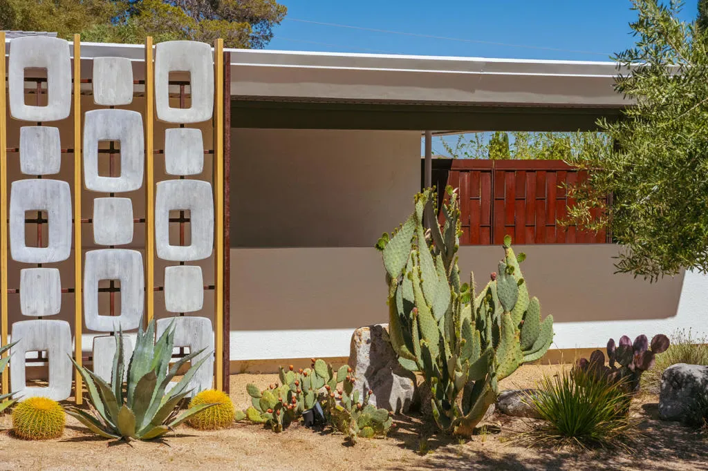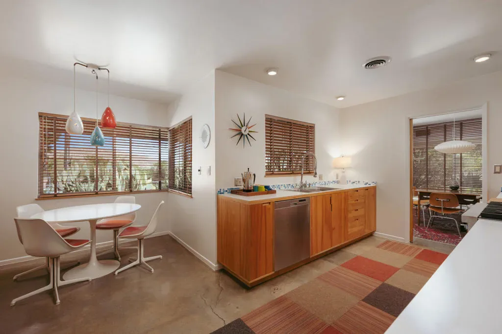 Set within Yucca Valley’s coveted Country Club enclave, this 1961 ranch is a private, design-led retreat, meticulously restored over 22 years by a master craftsman. The quality of execution is exceptional, with custom kitchen cabinetry, polished concrete floors throughout, multiple pocket doors, and a striking stone fireplace that brings warmth and sculptural presence to the living space.The home feels intentional, refined, and deeply livable throughout. An oversized patio with a 5+ foot metal-clad overhang extends the living experience outward, creating an effortless connection to the surrounding desert. Thoughtful improvements continue throughout, including an office, dedicated laundry with Etchwood cabinetry, a pegboard buffet in the breakfast area, beautifully finished baths, and curated landscaping designed for privacy, beauty, and calm.Originally the fourth home built in the neighborhood by noted high desert architect Arthur Edward Gerpheide, the property carries meaningful architectural provenance. Outside, two custom hand-poured concrete replicas of the original wood screens add another layer of craftsmanship and character, while mature desert plantings deepen the sense of seclusion. A fully restored vintage 1972 Kencraft travel trailer brings personality and flexible potential.Meticulously maintained and exceptionally executed, this is a rare offering where craftsmanship, history, and quiet design integrity come together in a truly special desert setting.