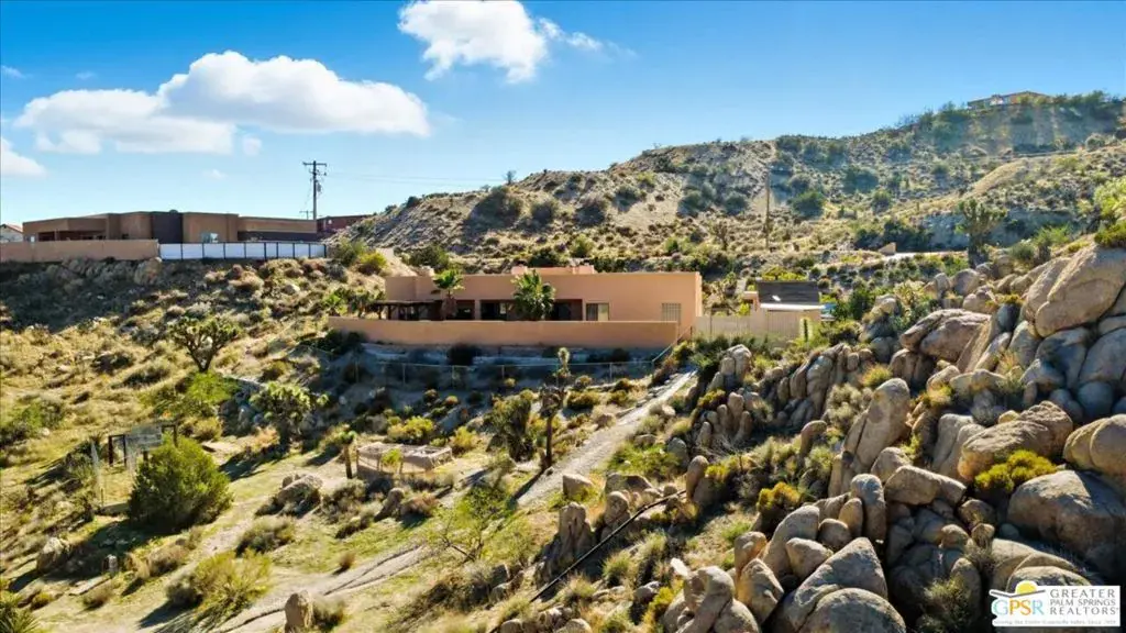 Stunning Santa Fe-Style Home in Western Hills Estates. This custom-built 3-bedroom, 2-bath home sits on over an acre of land, surrounded by the iconic boulders of Western Hills Estates. Located just two minutes from downtown Yucca Valley and close to all the High Desert’s attractions, this property offers both convenience and serenity. Inside, you’ll find 10′ high ceilings and an open-concept layout that seamlessly connects the kitchen and living room, creating a bright, airy space. The master suite features a cozy fireplace and en-suite bath, adding a touch of warmth and romance. Step outside to a backyard perfect for entertaining, complete with a built-in BBQ and outdoor fireplace, ideal for starry nights with friends or quiet evenings under the desert sky. The spacious side yard, with its dramatic boulders, offers endless possibilities for leisure spaces or a future pool. Don’t miss this unique desert retreat schedule your tour today!