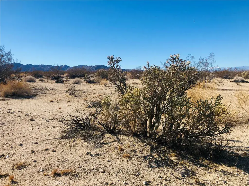 Secluded 5 acres with fantastic views across miles of desert to rocky hills and snow-capped mountains in the distance. Cholla and other cacti scattered throughout. No utilities or direct access by road. Property does not have an assigned address – for listing purposes only. GPS: (34.1448754, -116.1382362) APN: 0613-232-20-0000. Owner May Carry.