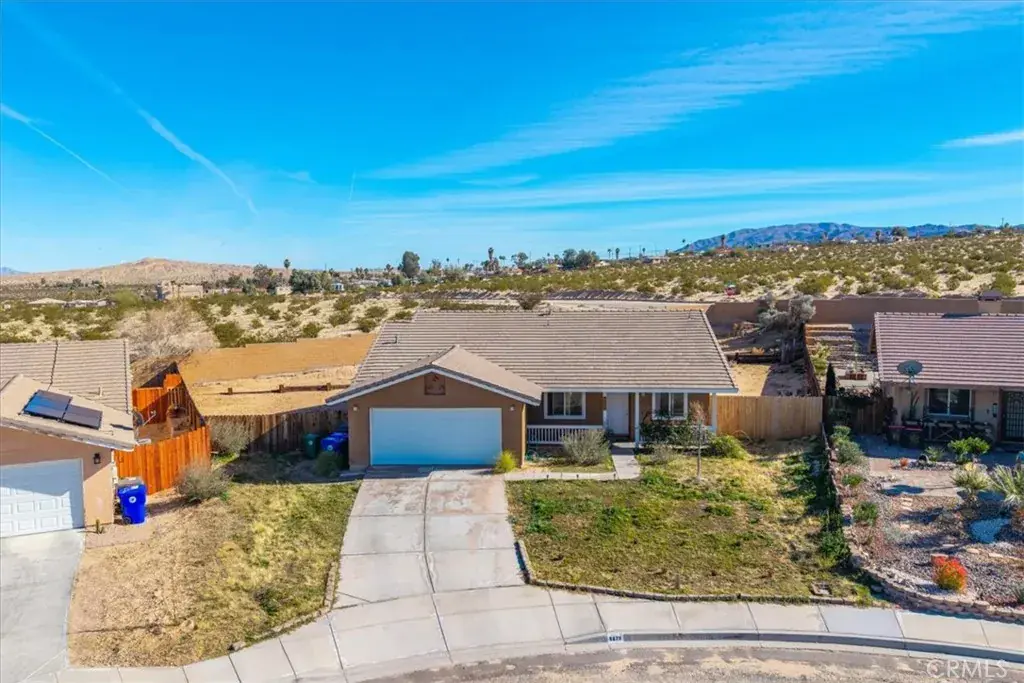 Welcome to Turtlerock! This single-story home offers 3 bedrooms, 2 bathrooms, and a bonus office space with beautiful built ins that can be used as a fourth bedroom. Situated on a corner lot, this gives you a huge backyard space, big enough for a pool, park your RV and even covered patio space for outdoor entertaining! There’s a cozy fireplace and more built in shelves in the large living room off the kitchen which gives the space a feeling of the open flow concept. There’s also a separate dining area for entertaining guests. Laundry is located inside your home instead of the garage space, and speaking of garages, there is an oversized attached 2 car garage, accessible from inside the home. All bedrooms are spacious and the primary has its own en-suite bath with soaking tub, separate shower, and walk in closet! Located in the Turtlerock development of Twentynine Palms, it has a very low HOA that includes a professionally managed septic system, and general maintenance of the common areas including the landscaping of the outer perimeter, it is also well know for their covered front porches and a functional floor plan that gives you plenty of living space. Recent updates include interior paint, partial roof replacement, and an updated A/C duct system. Newer light and plumbing fixtures give it a more updated feel as well. And it’s all located within minutes to the front entrance to the 29 Palms Marine Corp Base, Joshua Tree National Park, and the up and coming downtown 29 Palms area for shopping and restaurants. Whether this will be your first home, or an investment property, it will be hard to pass up this amazing home!