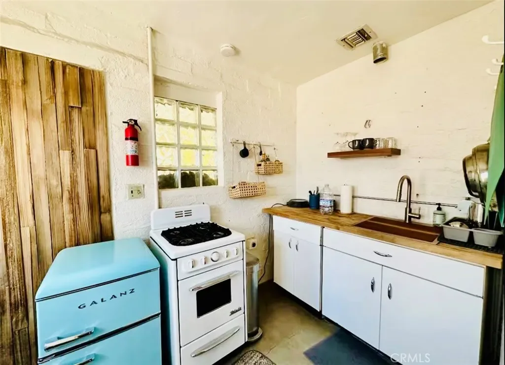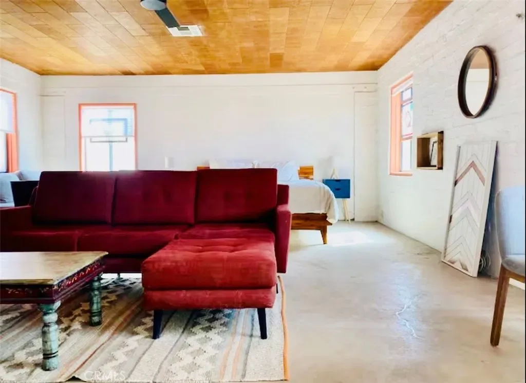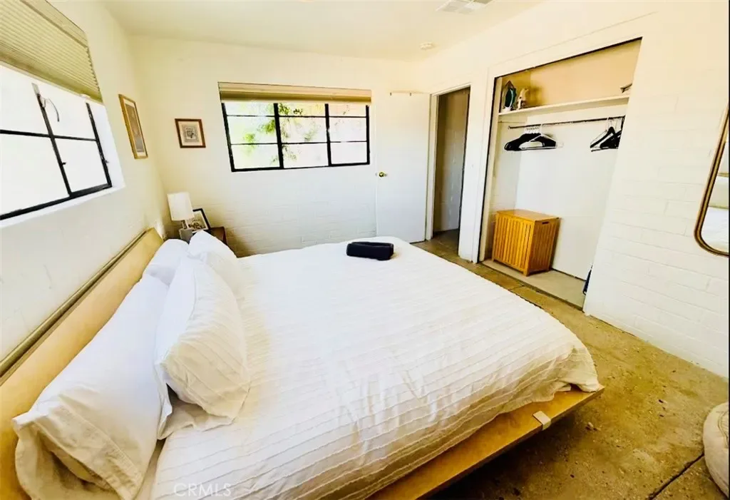 Desert-cool mid-century home on an approx. 1-acre corner lot, reworked for flexible multi-unit living and solid income potential while keeping its original character. The main home is currently set up as two spaces: one side offers a 3 bedroom, 1 bathroom layout with generous living and dining areas, and the other side is a 1 bedroom, 1 bathroom unit that works well for guests, long-term tenants, or a private workspace. The detached garage includes an added bathroom and functions as a studio-style third space, ideal for visitors, creative use, or potential rental. In total, the property lives as 5 bedrooms and 3 bathrooms; square footage is permitted per prior records. Solid masonry construction, simple clean lines, and a blend of original details with practical updates make this property feel both authentic and livable for today’s buyer, with plenty of room outside for parking, entertaining, and future ideas on the approx. 1-acre lot, close to the USMC base, downtown Twentynine Palms, and Joshua Tree National Park—buyer to verify.