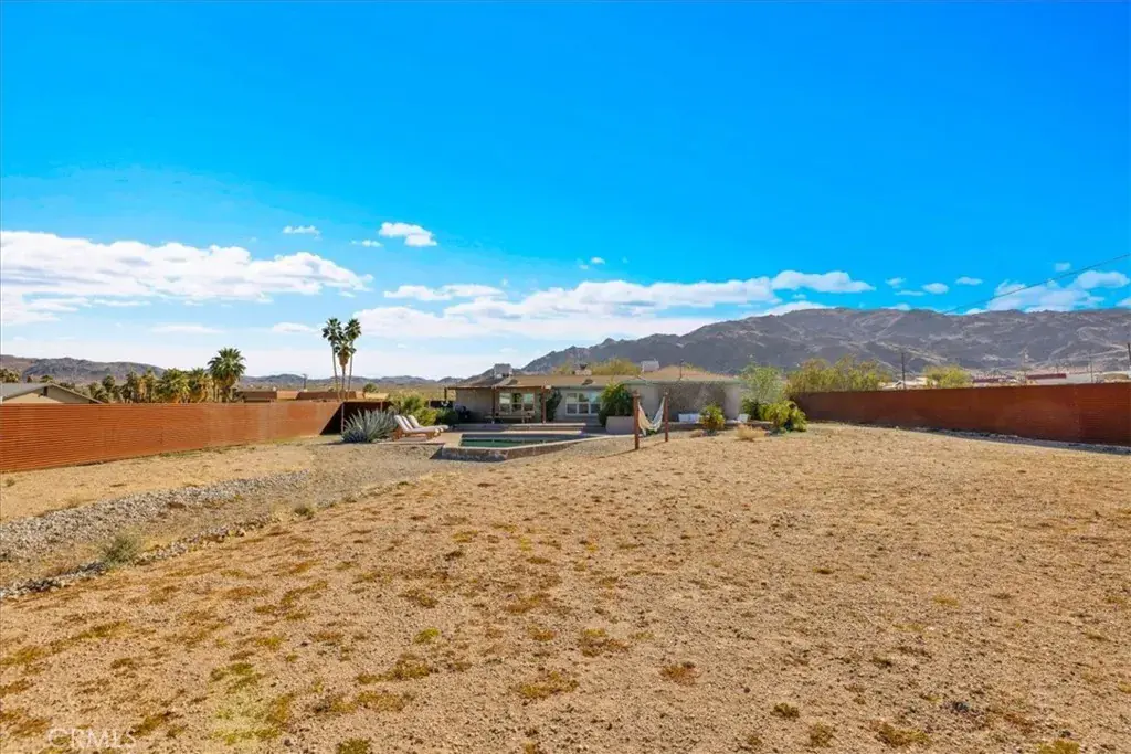 Welcome to this inviting 3-bedroom, 2-bathroom home offering 1,664 sq ft of comfortable living space, perfectly set on a spacious 20,000 sq ft lot designed for relaxation and entertaining. A newly installed in-ground pool and hot tub allows you to create your own private desert oasis, ideal for soaking up the sun or enjoying evenings under the stars. The thoughtfully designed outdoor seating and entertainment areas make hosting family and friends effortless, while the generous lot provides room to garden, play, or expand. Located just minutes from Joshua Tree National Park, this home offers easy access to hiking, sightseeing, and endless outdoor adventure. You’ll also love being close to Downtown 29 Palms’ Freedom Plaza, where you can enjoy community events, a growing farmers market, local restaurants, and popular bars—bringing the best of small-town charm and vibrant city life together. Whether you’re looking for a full-time residence, vacation getaway, or investment opportunity, this desert gem offers the space, lifestyle, and location you’ve been searching for.