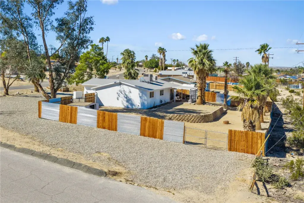 Whether you’re searching for a peaceful desert retreat, vacation rental opportunity, or the perfect primary residence, experience the best of Twentynine Palms living at 73904 Playa Vista Drive—a beautifully remodeled, move-in ready desert oasis. This fully turnkey 3-bedroom, 2-bathroom home spans 1,258 sq. ft. and has been thoughtfully upgraded with quality finishes throughout, including new laminate flooring, recessed lighting, modern fixtures, expanded living room slider, updated toilets, custom mirrors and lighting as well as a brand new garage door. The open-concept kitchen is a showstopper, featuring luxury quartz countertops, a stunning waterfall island, oversized sink, and sleek contemporary finishes—perfect for cooking, gathering, and entertaining. Both bathrooms have been completely renovated with stylish tile work and high-end finishes, while the seamless flow between the kitchen, living area, and patio creates effortless indoor-outdoor living. Step outside to your private desert escape. Set on nearly half an acre, this property features expansive desert views, a galvanized steel and wood privacy fence, desert-inspired landscaping, a custom paver wall, and beautiful mature palm trees. The spacious backyard offers endless potential for relaxation and fun—ideal for stargazing, lounging in a hammock, outdoor dining, or cozy evenings around a fire pit. Modern convenience meets efficiency with central air and heat powered by Google Nest, ensuring year-round comfort. Located just minutes from downtown Twentynine Palms, Tortoise Rock Casino, local dining, shopping, and the world-famous Joshua Tree National Park, this home delivers the ultimate blend of style, serenity, and desert adventure. Stylish. Peaceful. Turnkey. This is desert living at its finest.