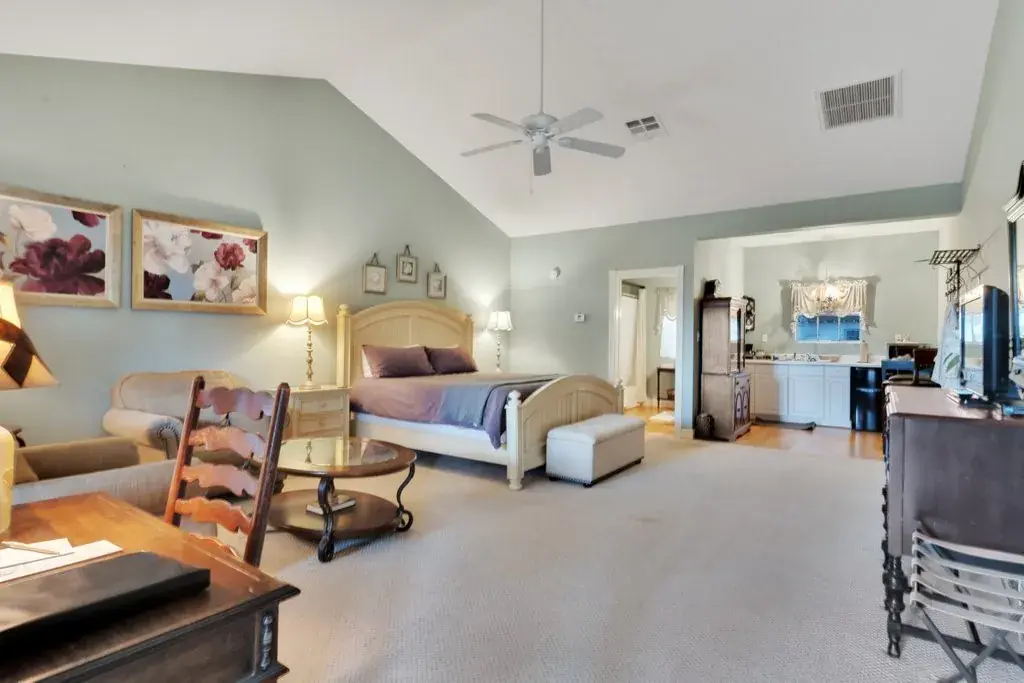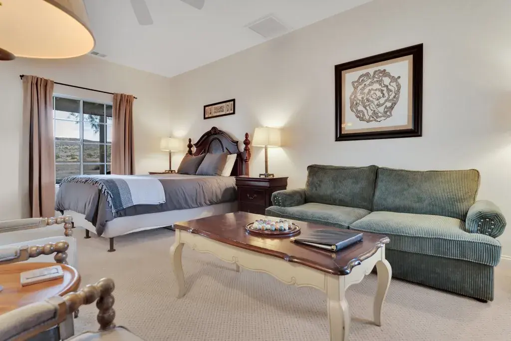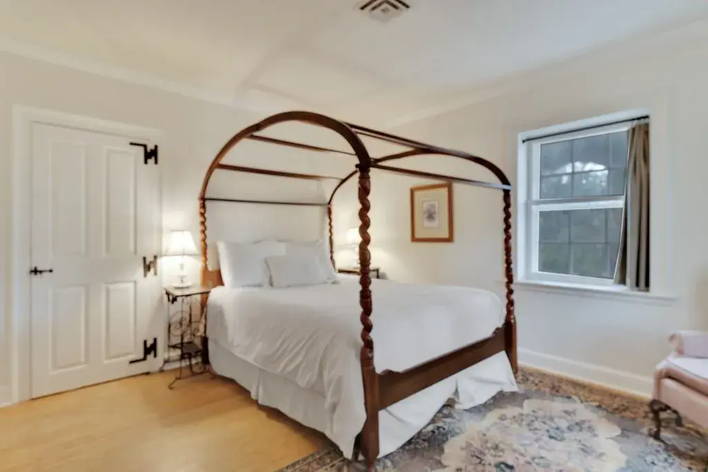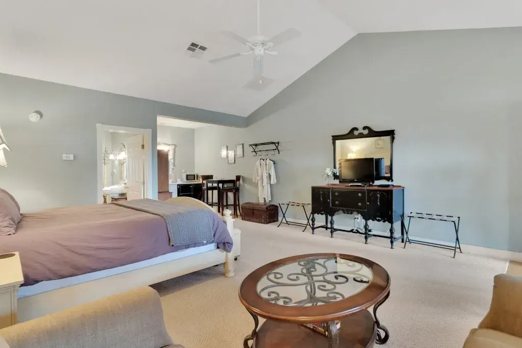 The estate features a stately colonial-style homestead with luxury suites, grand fireplaces, and original wood flooring, along with ten private guest cottages—each thoughtfully appointed with kitchenettes, patios, and distinct historic character. Guests enjoy resort-style amenities including a pool, hot tub, spa services, library, and daily breakfast.
