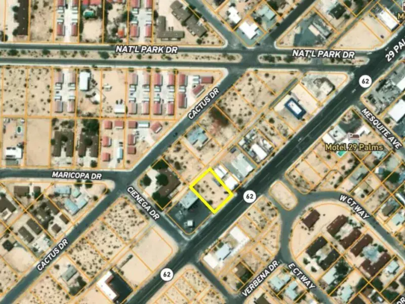 Premier 13,000 sf Commercial lot located just off National Park Dr in Twentynine Palms, CA. Within a few minutes from the Joshua Tree National Park entrance gate. Great highway frontage + plenty of space for parking with an alley in rear. Just a few hundred feet from National Park Drive which goes to the Joshua Tree National Park. Plenty of space for a variety of retail or hospitality uses. Possibilities for restaurant, bar, motel, retail shops, art studio, or more. 29 Palms is a booming city with new restaurants, bars, hotels and cafes. About 3 million tourists visit the park annually. Not far from the new Freedom Mall and Tortoise Rock casino. About 10,000 service men and women at the nearby 29 Palms Marine Base. Great opportunity for an investor and or business owner. Vistas of the Bullion Mtns and the Little San Bernardino Mtns. Enjoy the mild winters. Buyers must contact the city for all questions on building. Buyers must contact the utilities agencies for questions on utilities. APN: 0617-231-24-0000 Address is not a real address & is for marketing purposes only. GPS: 34.13537, -116.04934 Don’t Wait! – Call Now!